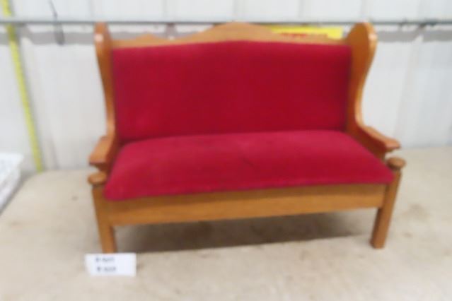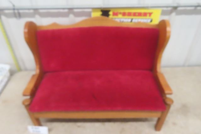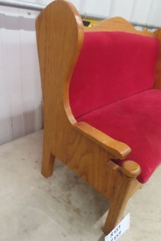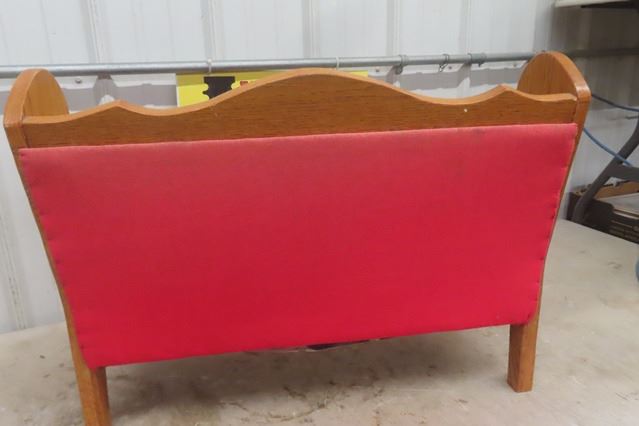 Very Cute Oak Upholstered Child's? Couch 12  x 21  x 28