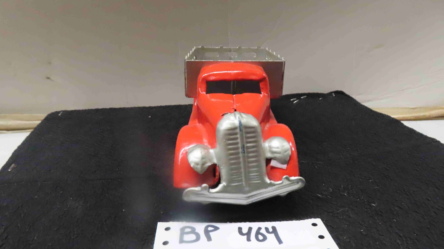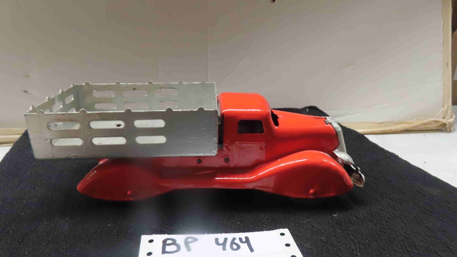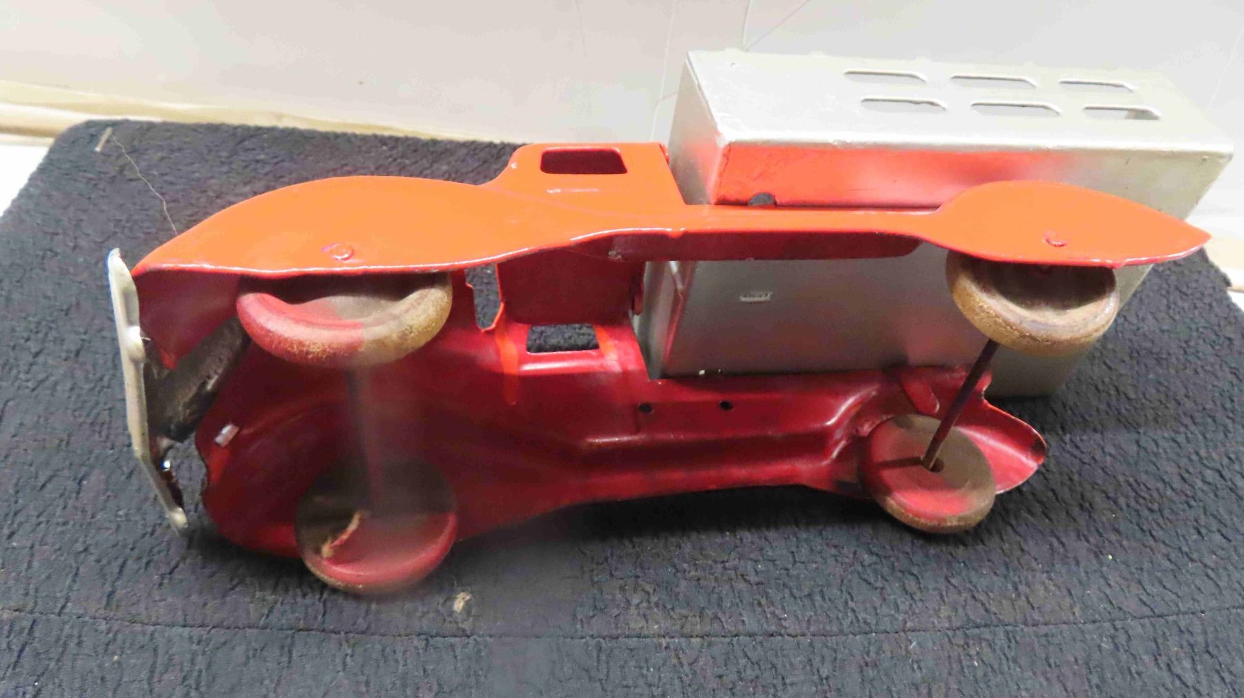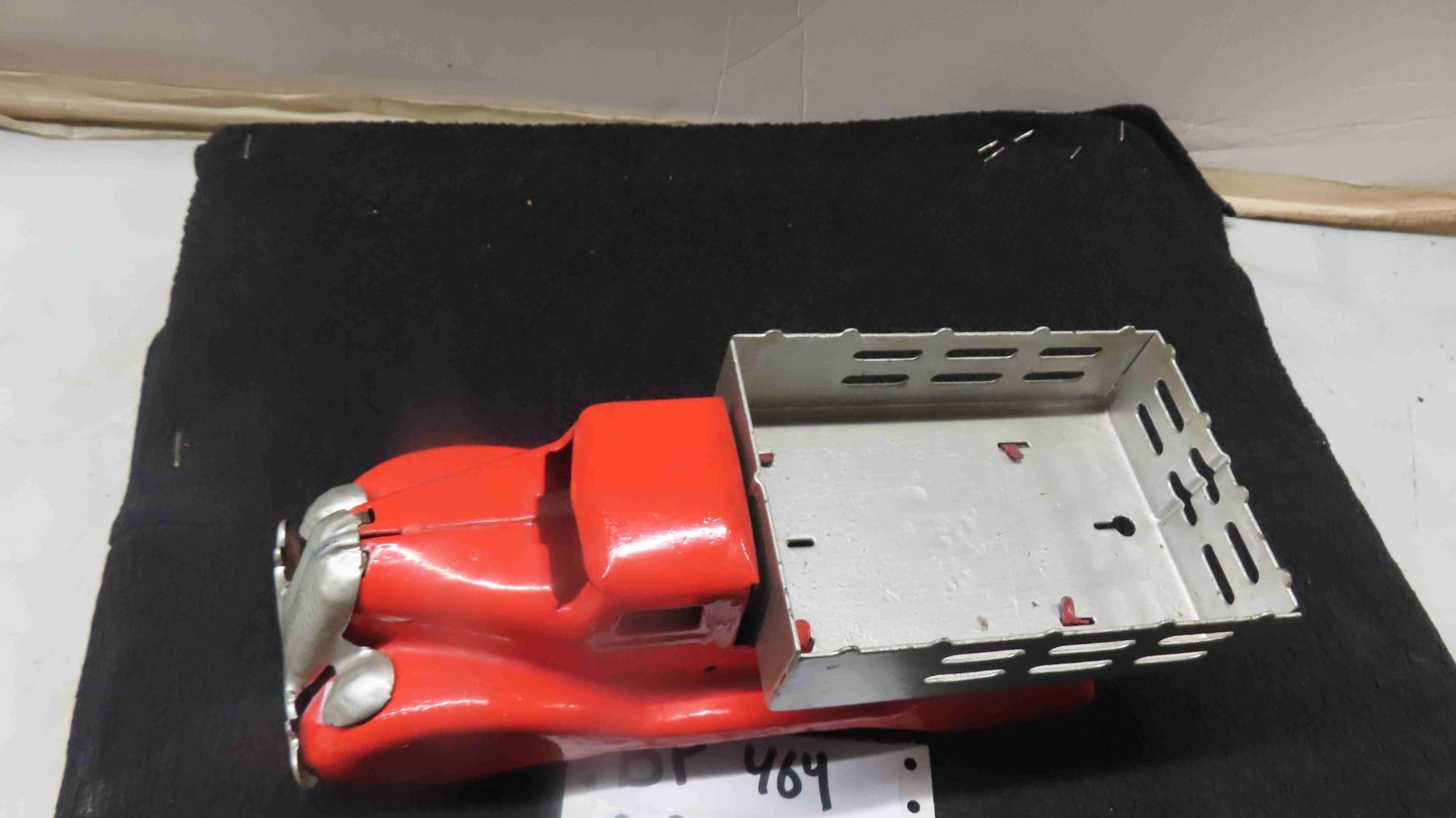 Very Early Vintage Pressed Tin Truck + Box with Wood Wheels - Repainted, 10" Long