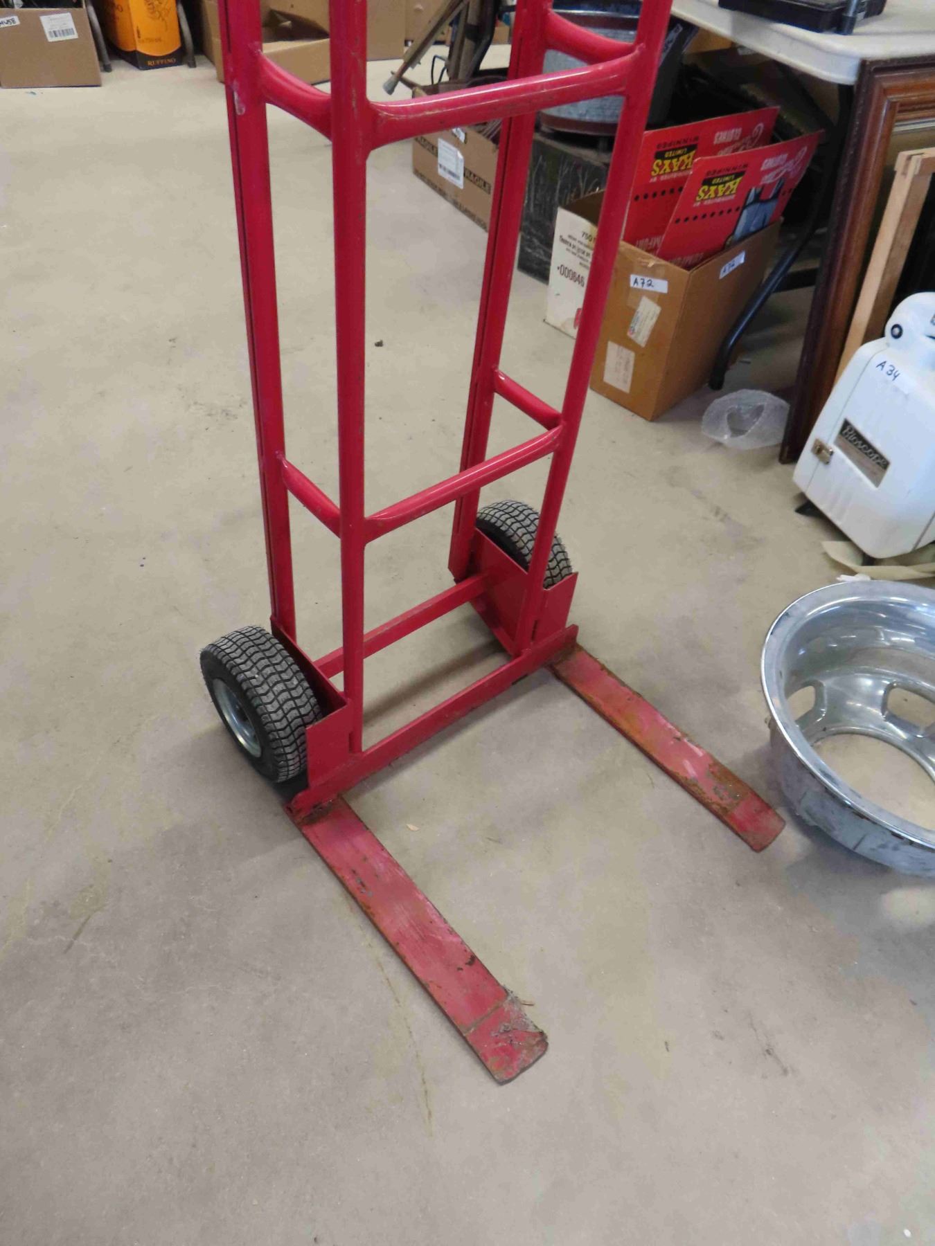 Very Large 2 Wheel Hand Truck Dolly 87" Tall for Bread or Potato Chips- Forks, NO Platform, Plastic Truck Hubcap