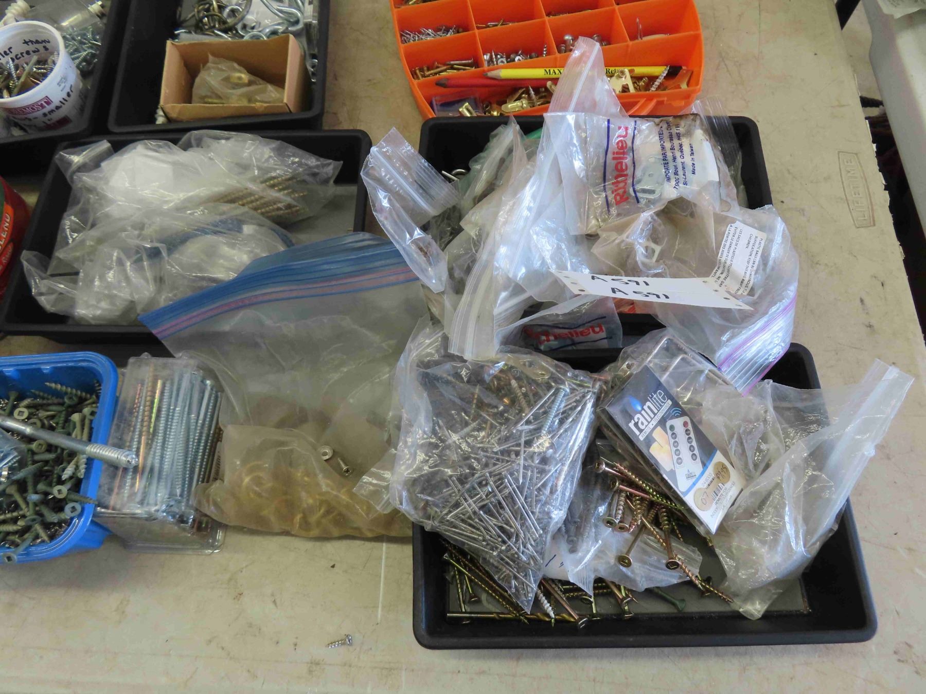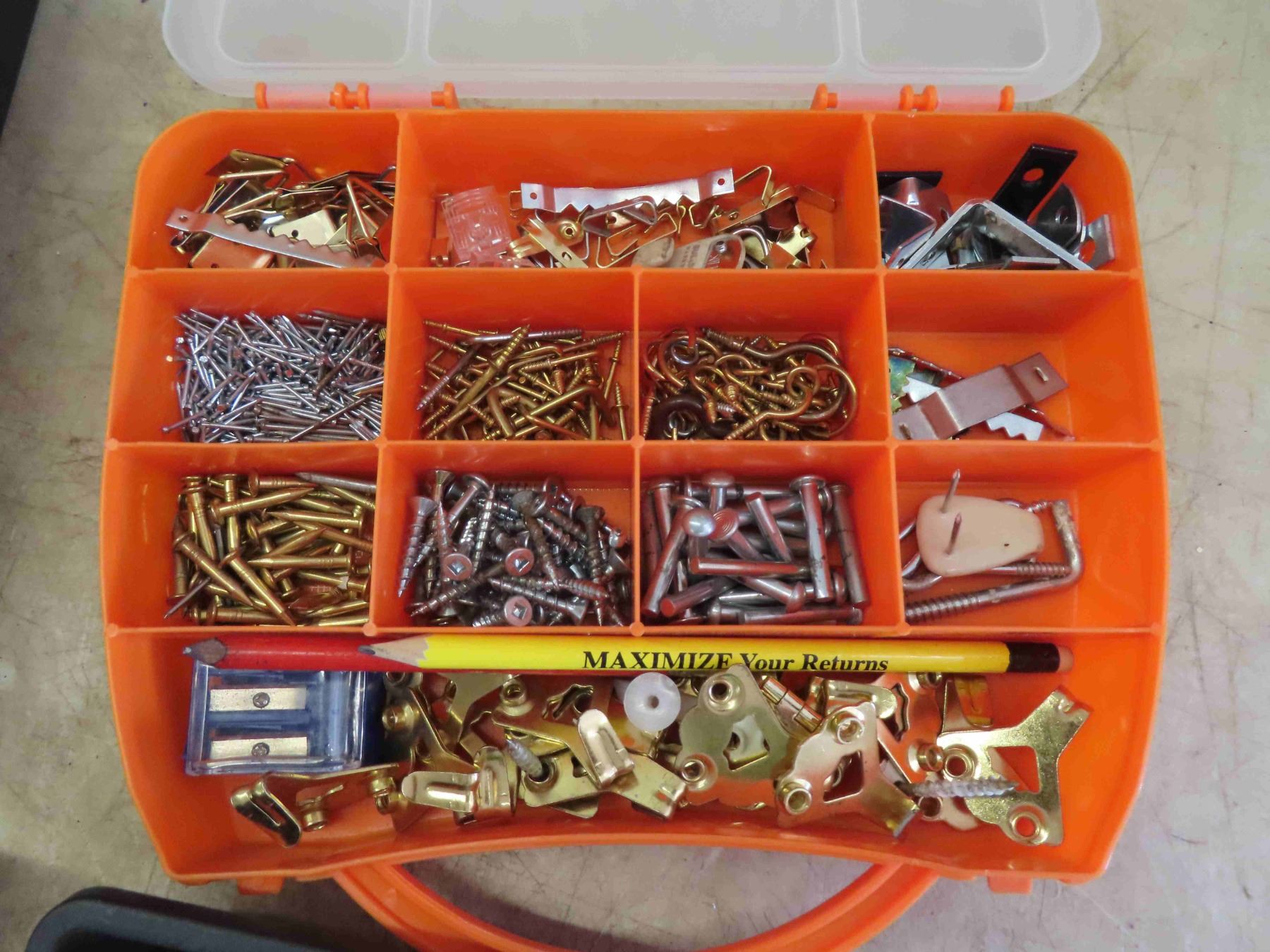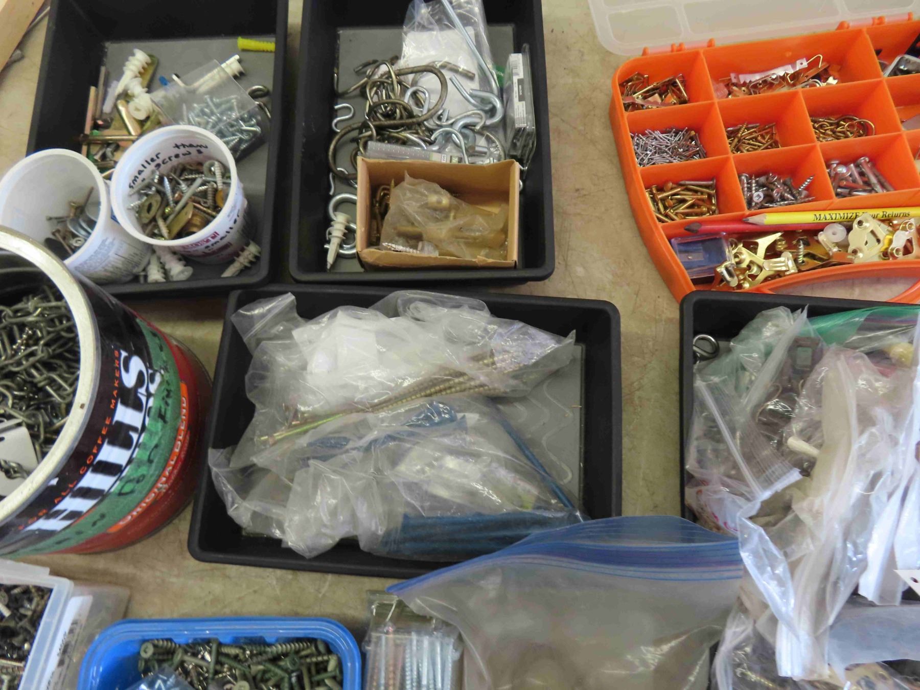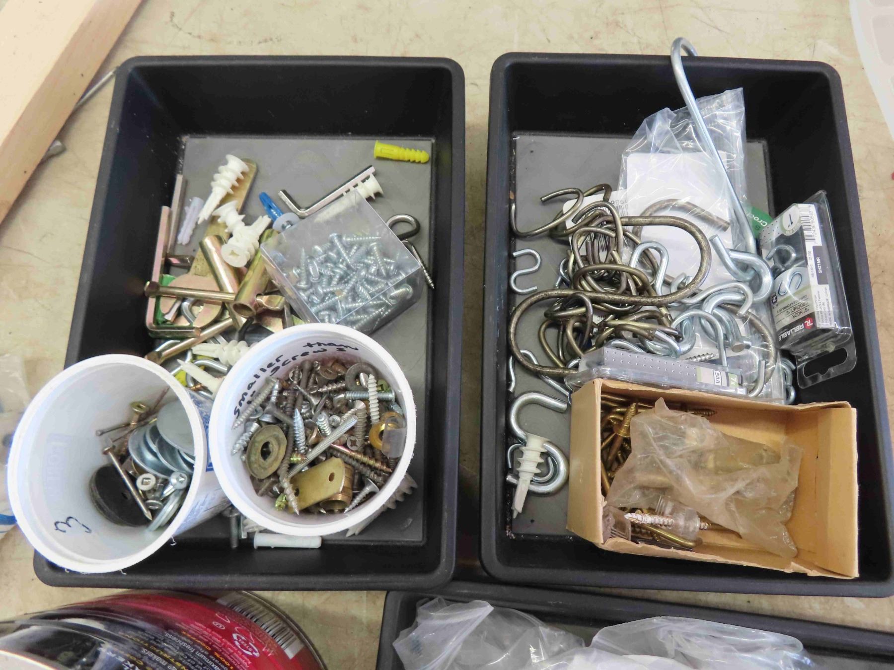 Very Large Assortment of Screws, Hooks, Small Chain, and Other Hardware