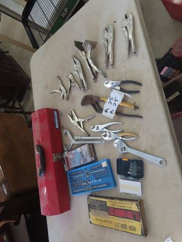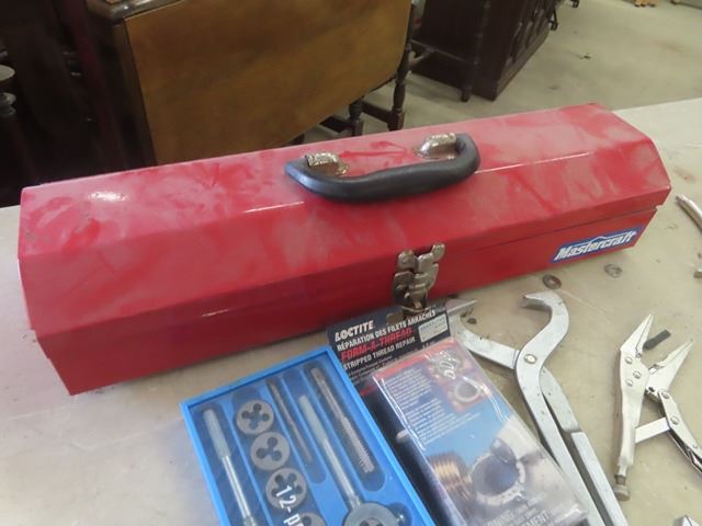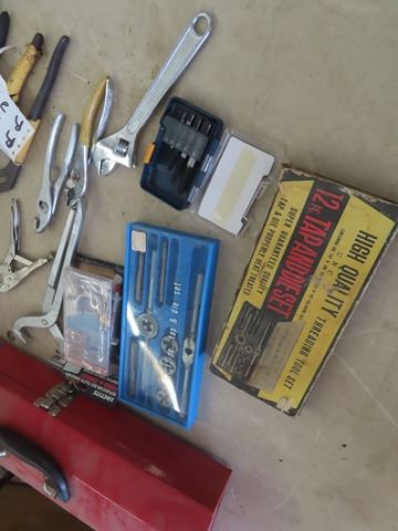 Vice Grips, Pliers, Tap + Die Set, Easy Out, Crescent Wrenches, Metal Tool Box
