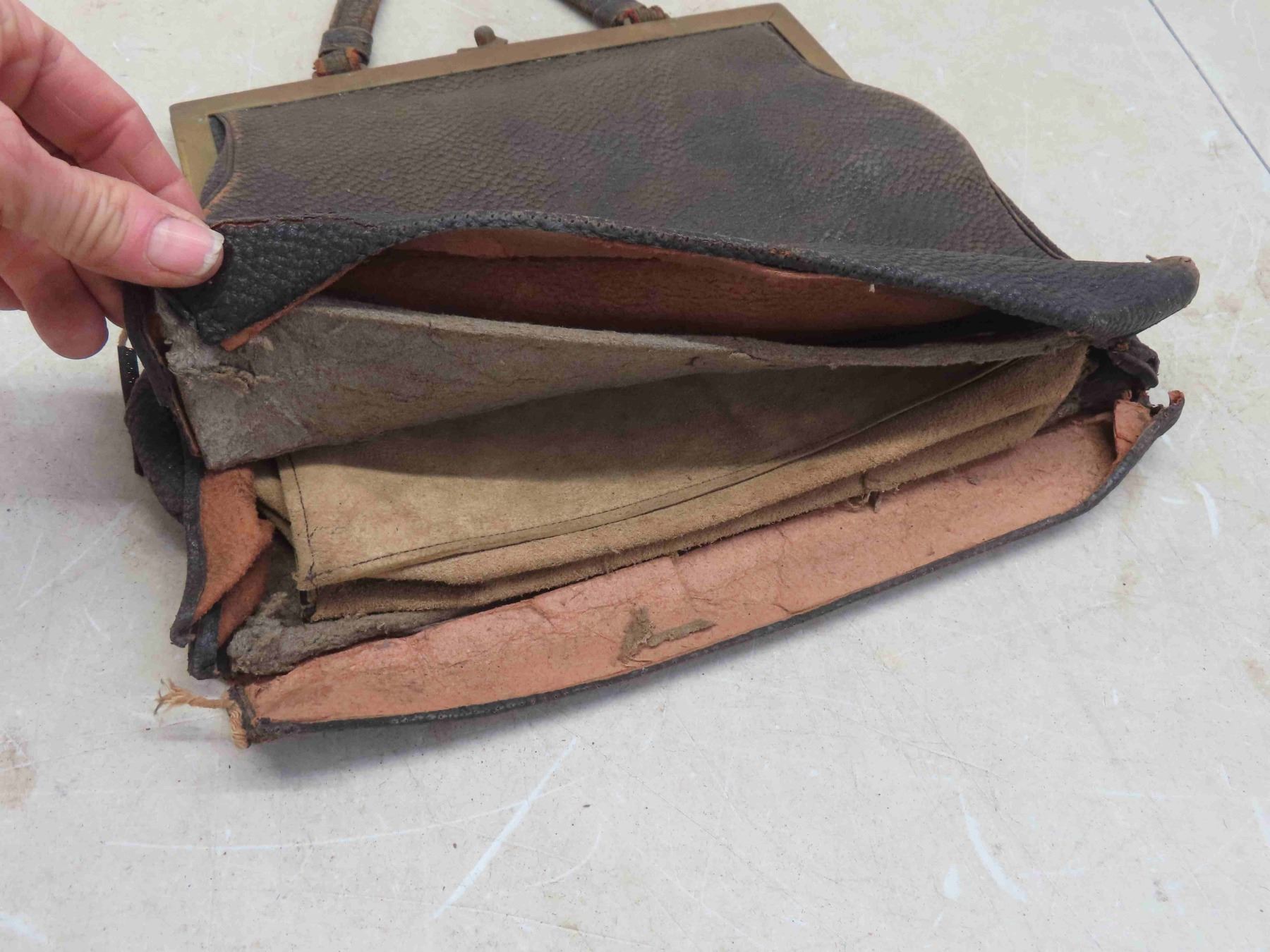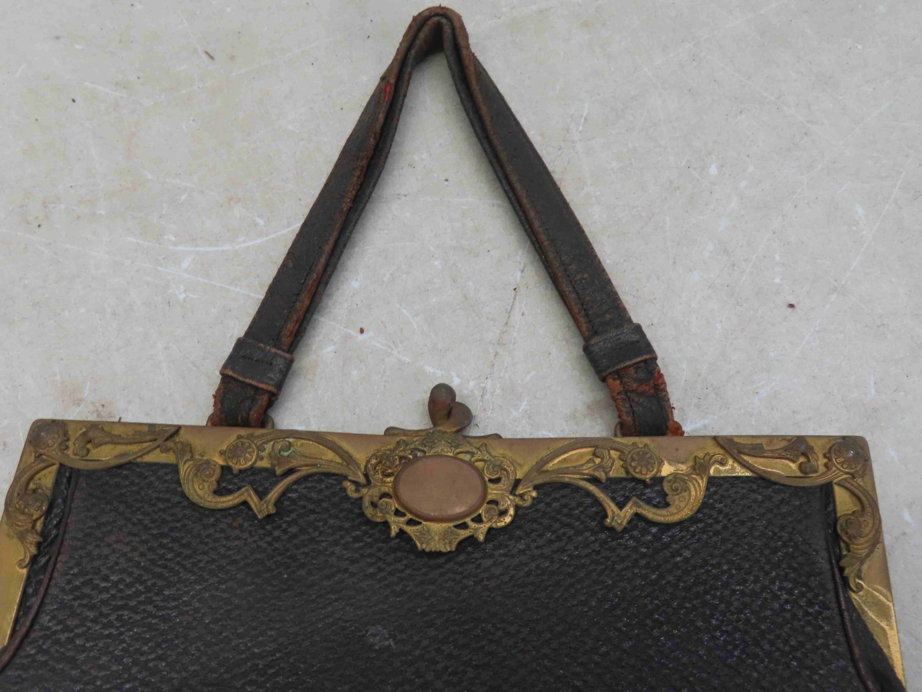 Victorian 1890s Ladies Leather Ornate Should Strap Purse