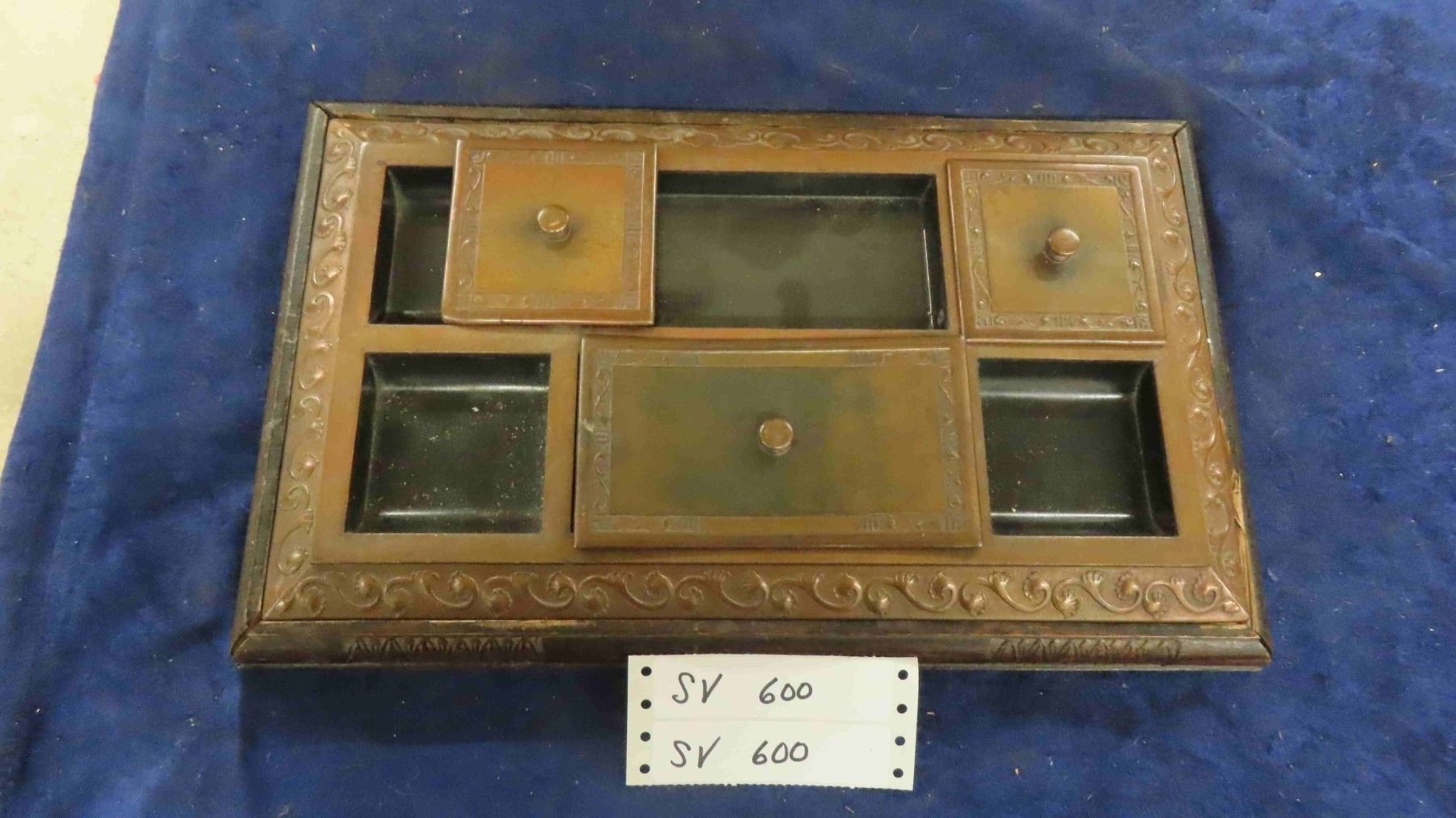 Victorian Desk Top Organizer - Brass + Wood 9.5" x 15.5"