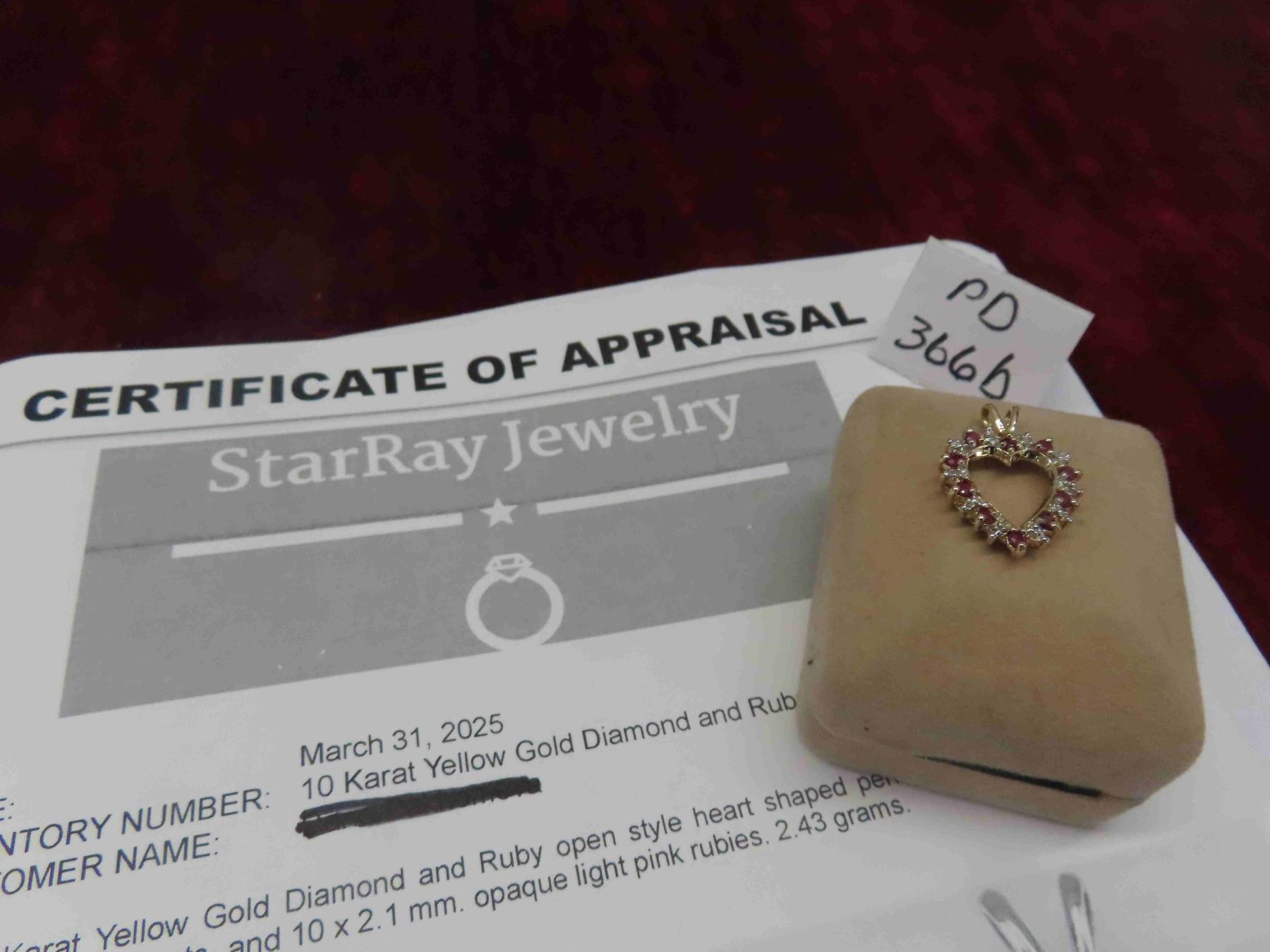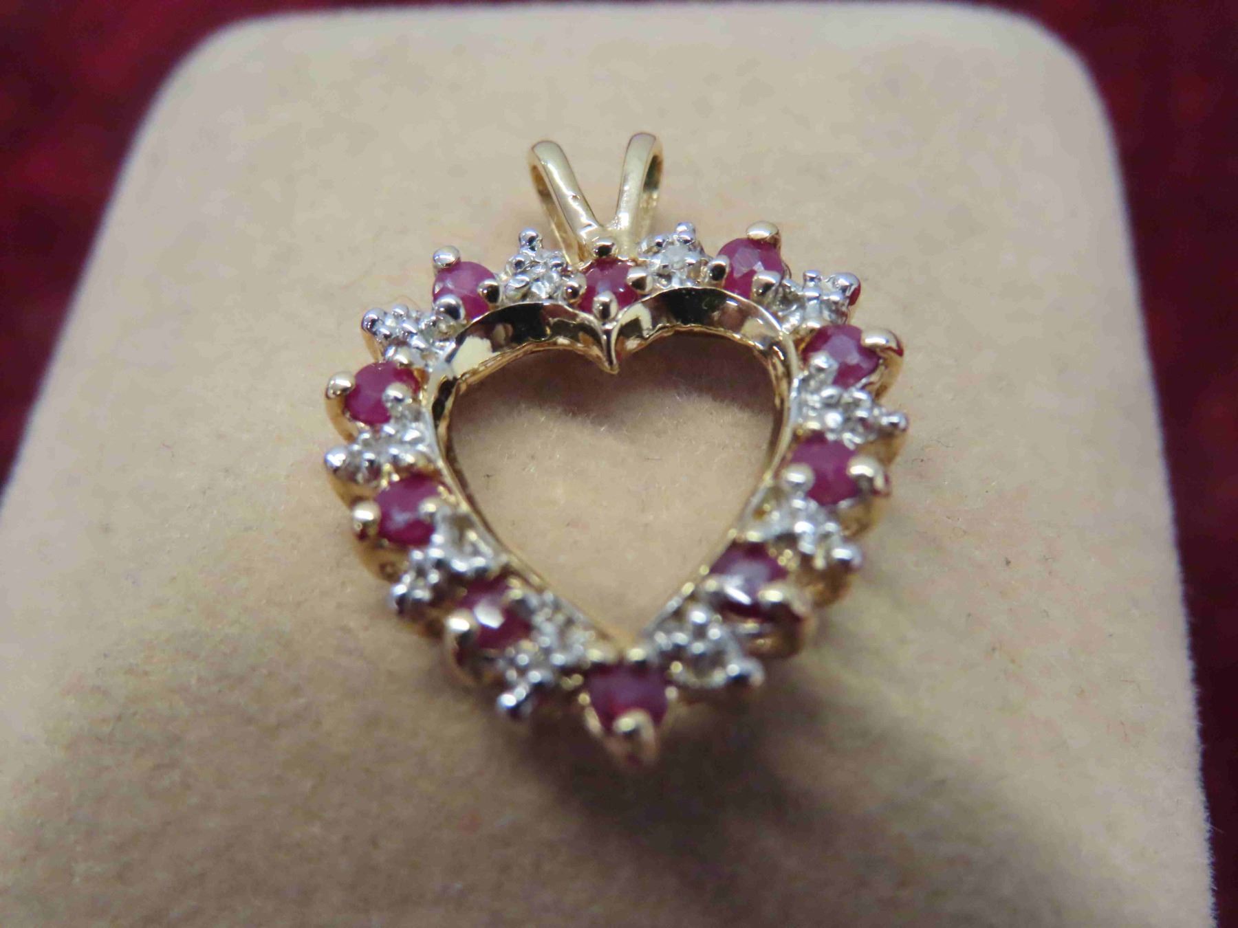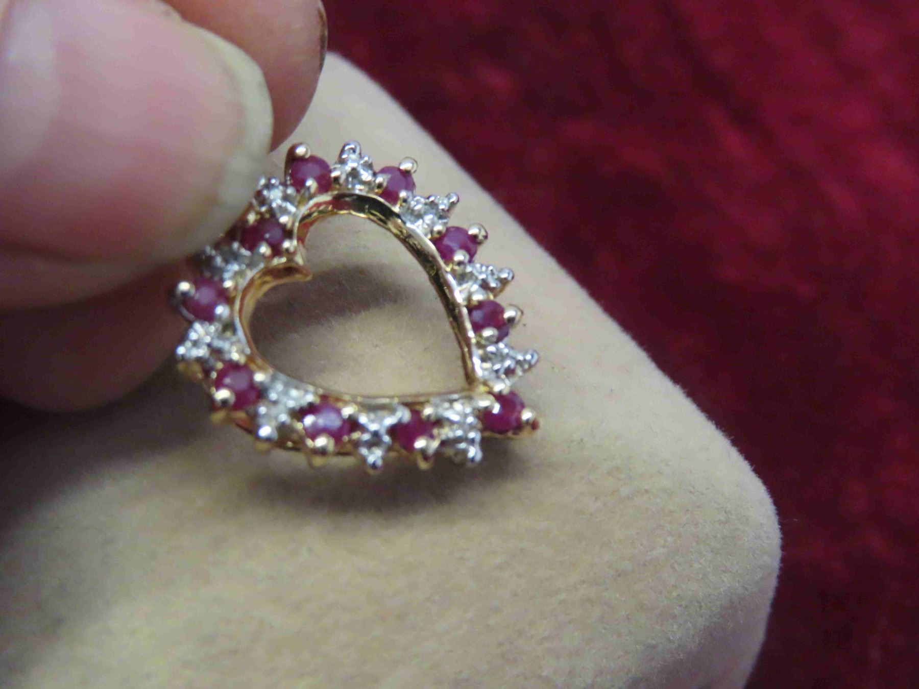 Vintage 10kt Yellow Gold Pendant with Natural 10 Rubies + 10 Diamonds with Appraisal