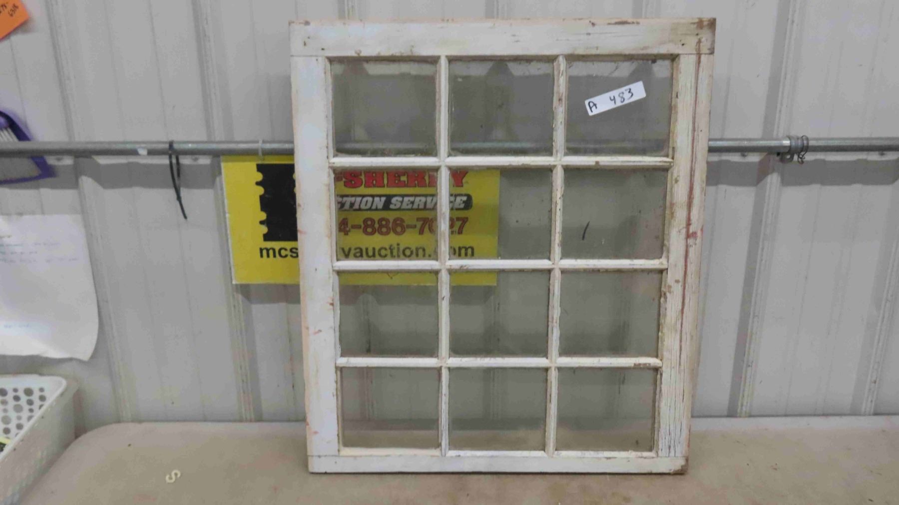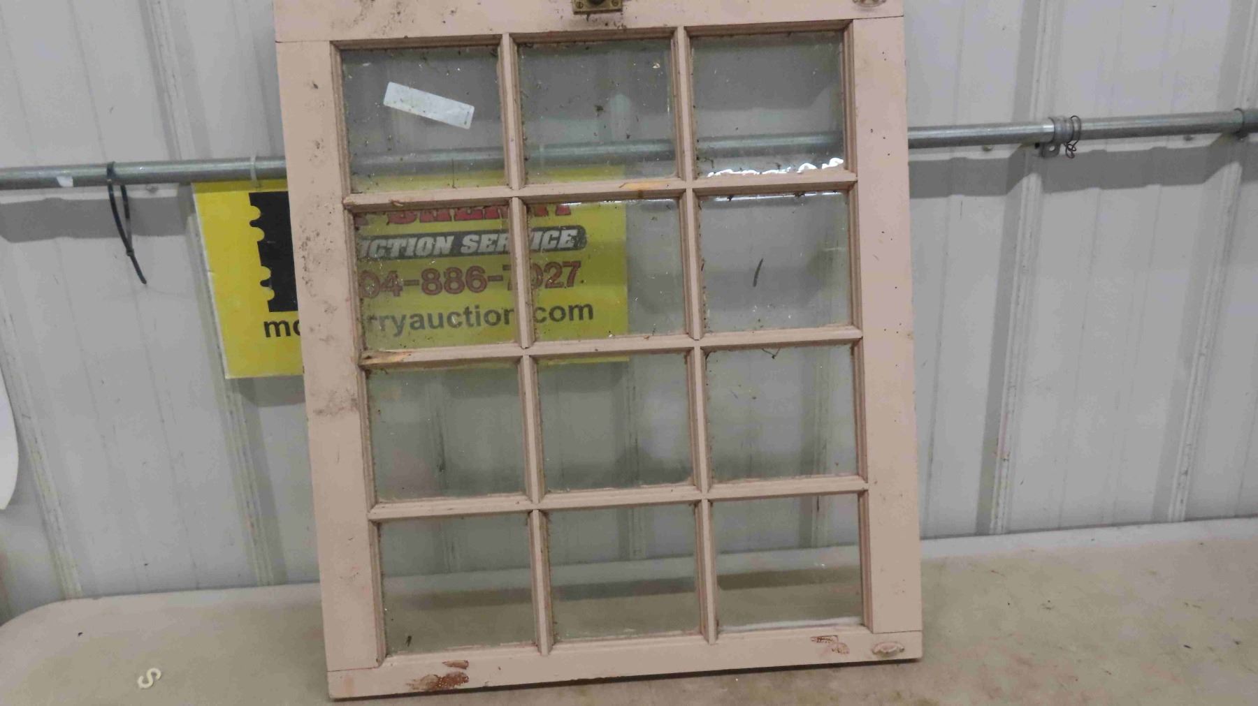 Vintage 12 Panel Window Pane with Painted Wood Frame 24'' x 28''