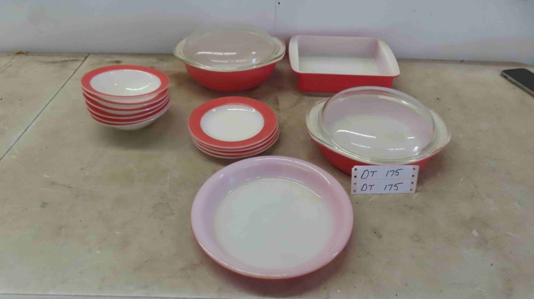 Vintage 16 Piece Pink Pyrex Dishes: Casserole, Bowls, Pie Platter & More