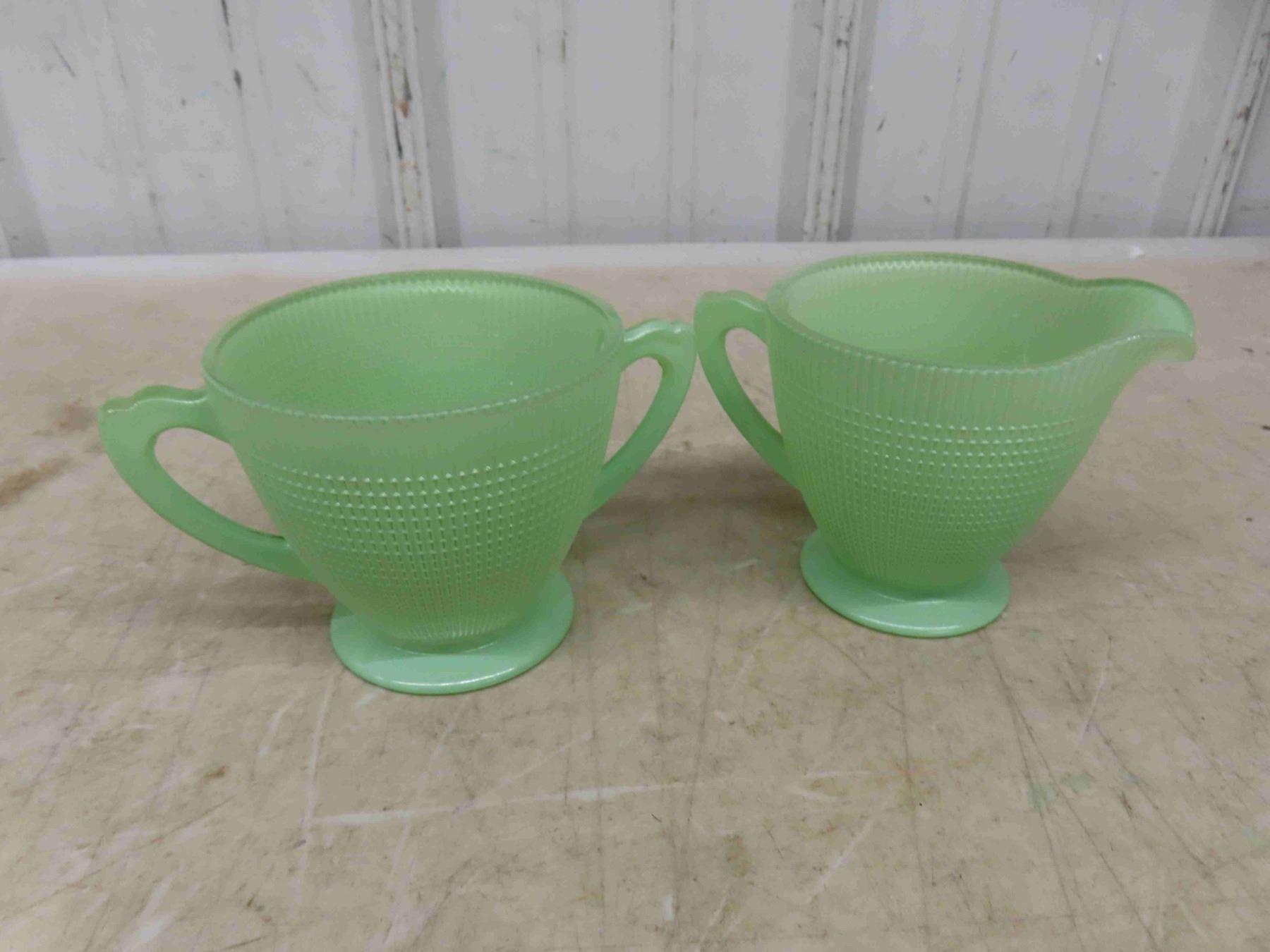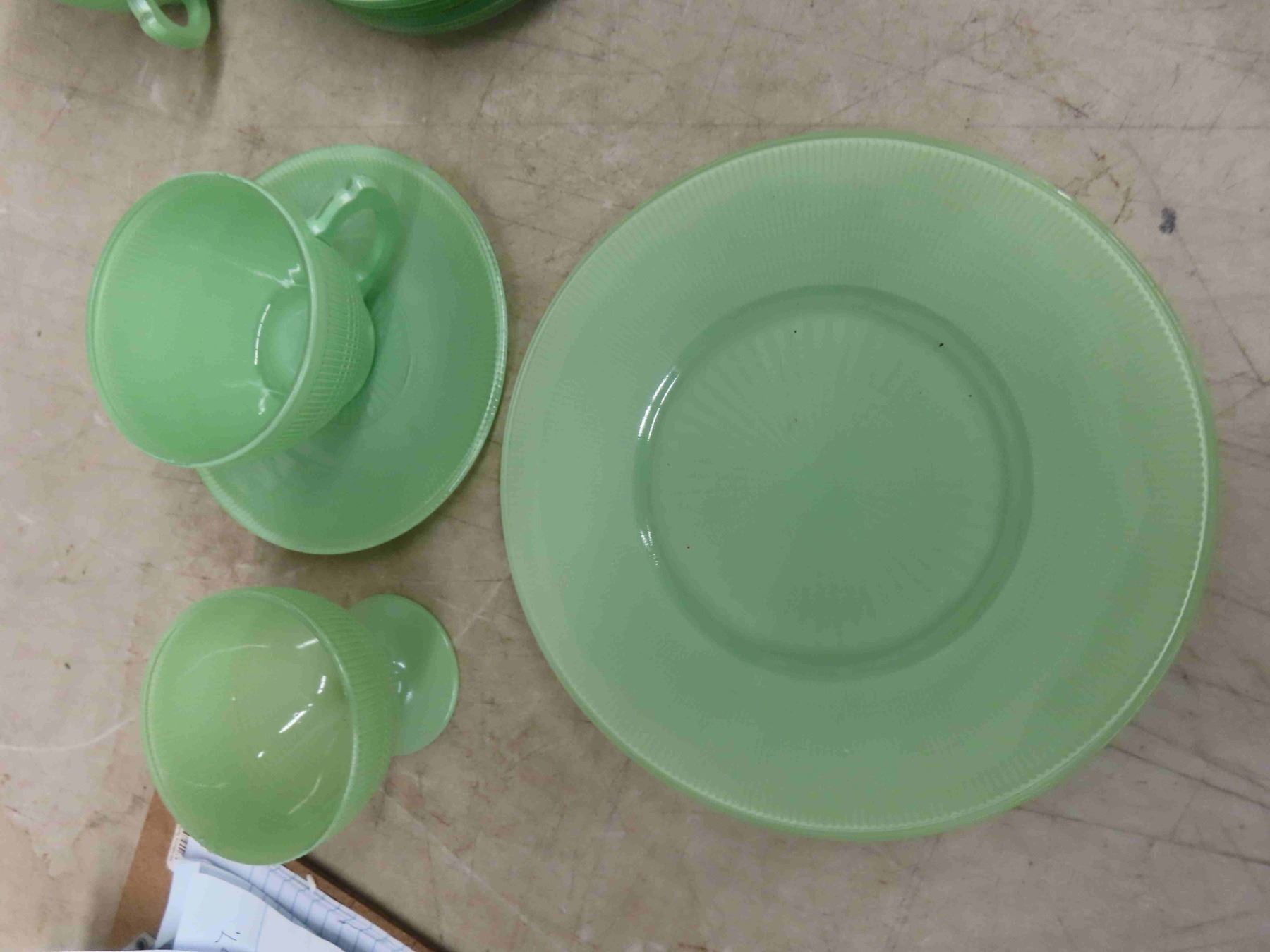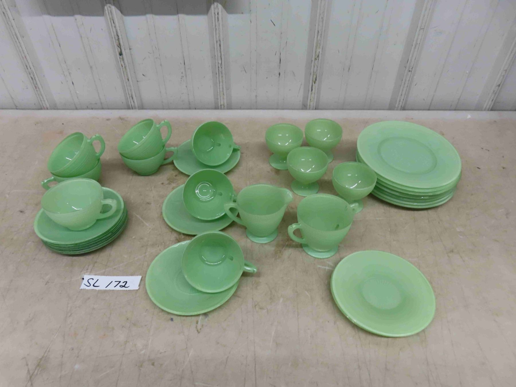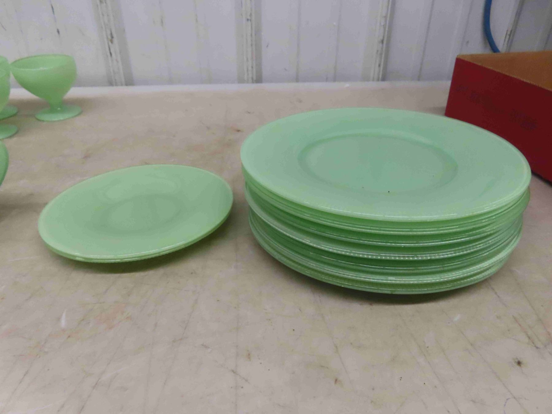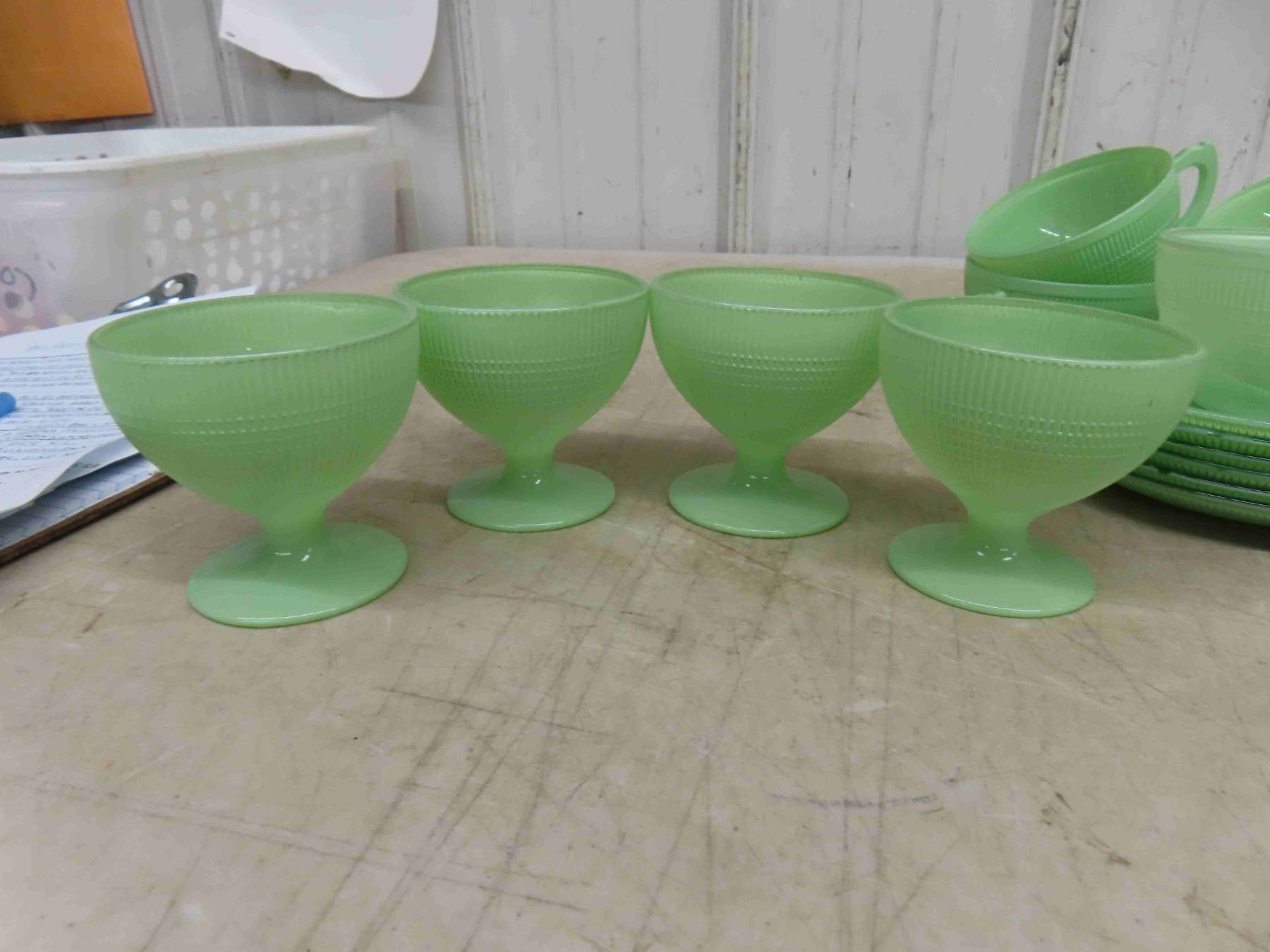 Vintage 1940-45 Saguenay Dish Set 35 Pieces by Dominion Glass Mint Green Set
