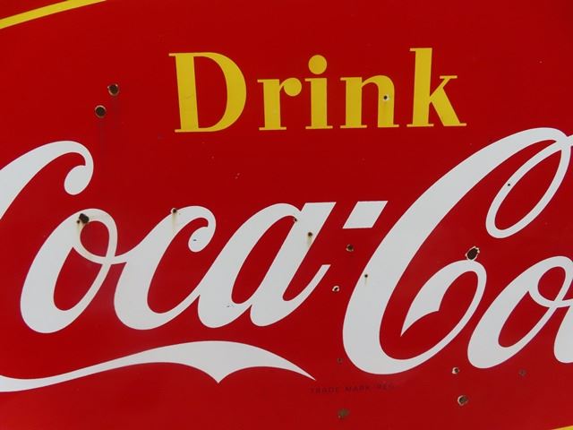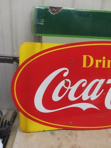 Vintage 1940's Coca-Cola Porcelain 2 Sided Sign 39"x60"