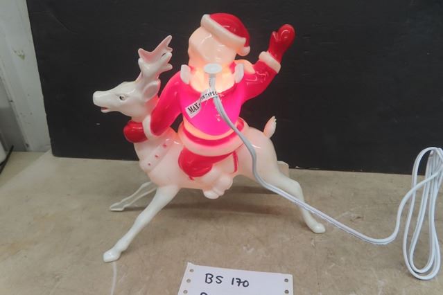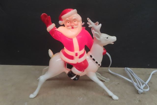 Vintage 1950's Noma Light Up Santa on Reindeer Newer Light + Plug