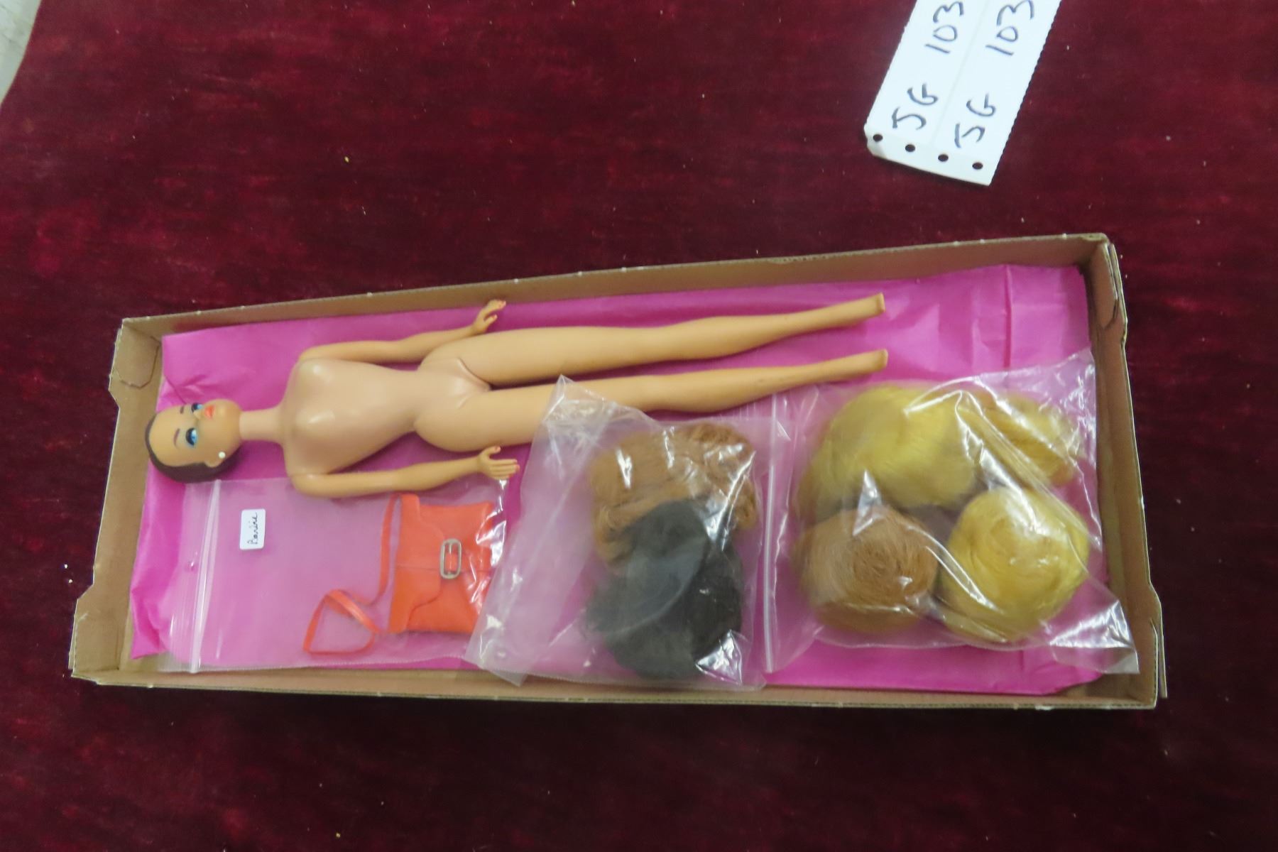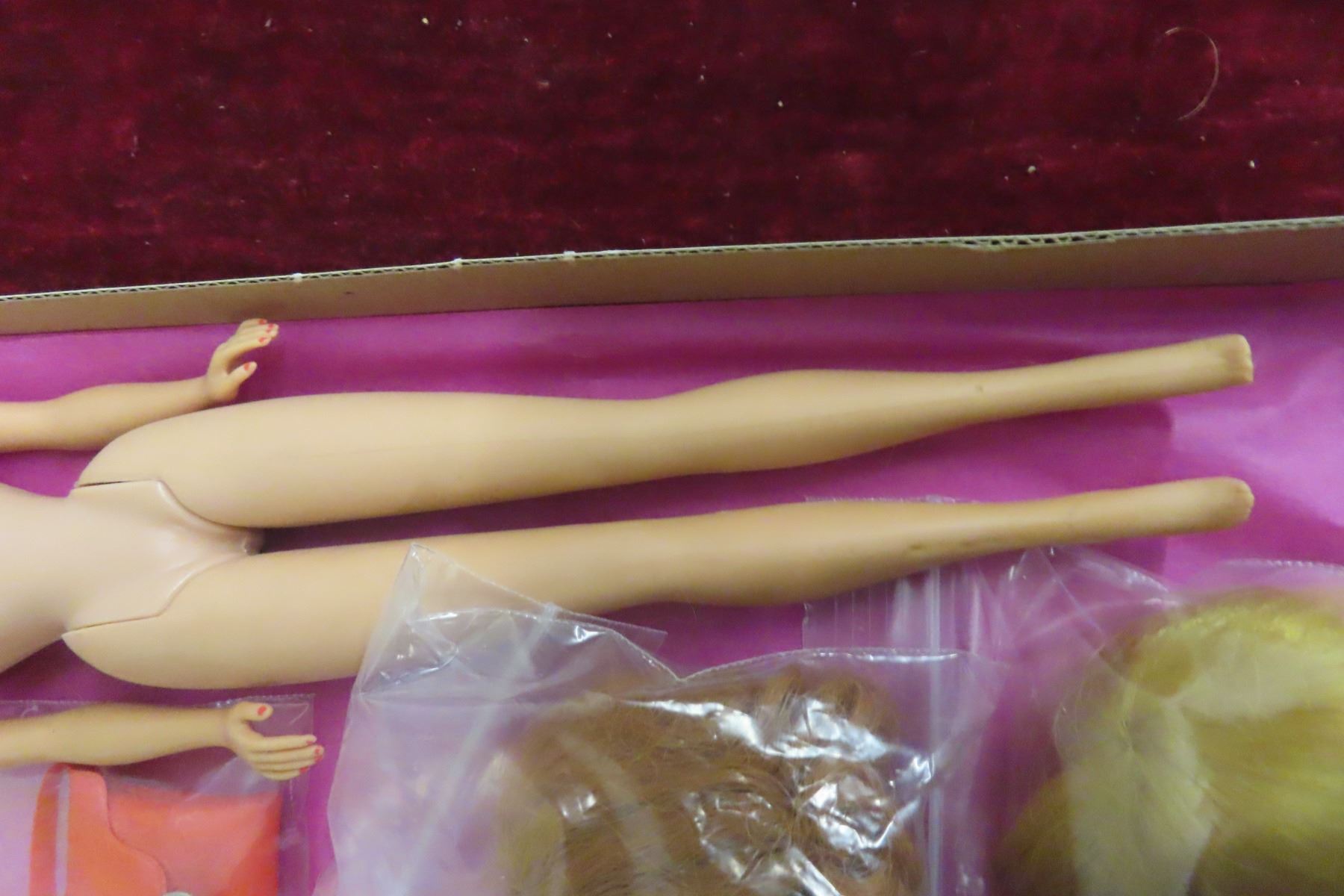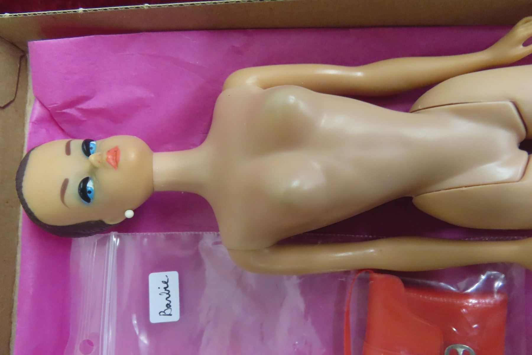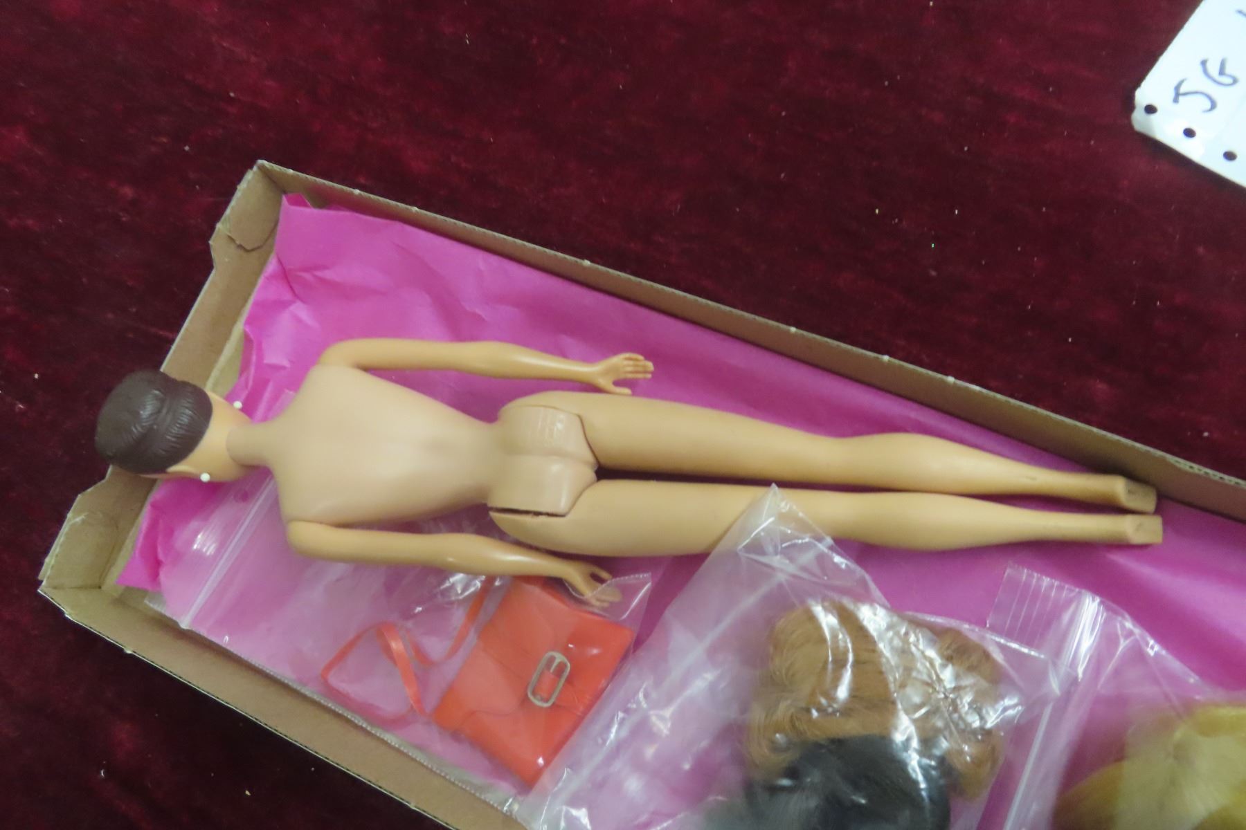 Vintage 1958 Mattel Barbie Doll, Made in Japan, With Five Wigs and a Purse.