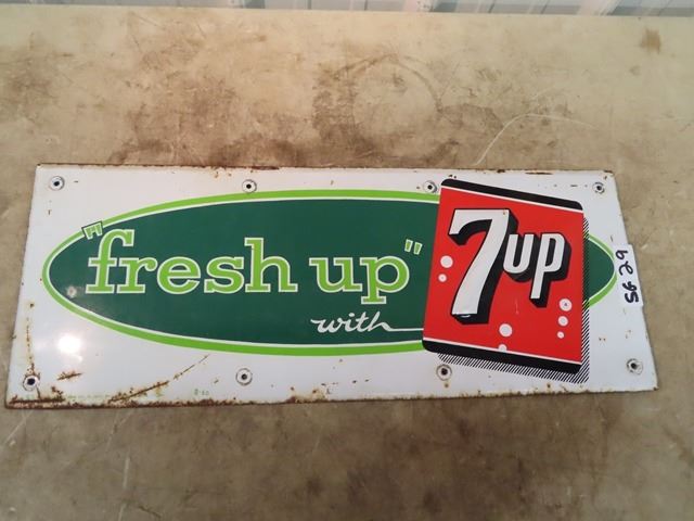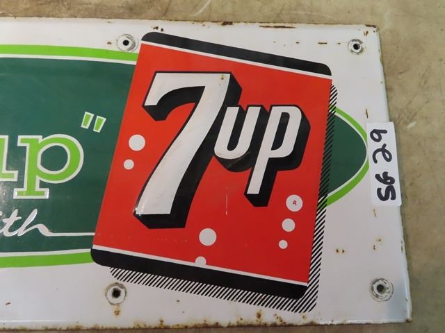 Vintage 1960's 7UP Sign- Metal Embossed 9.5" x 24"