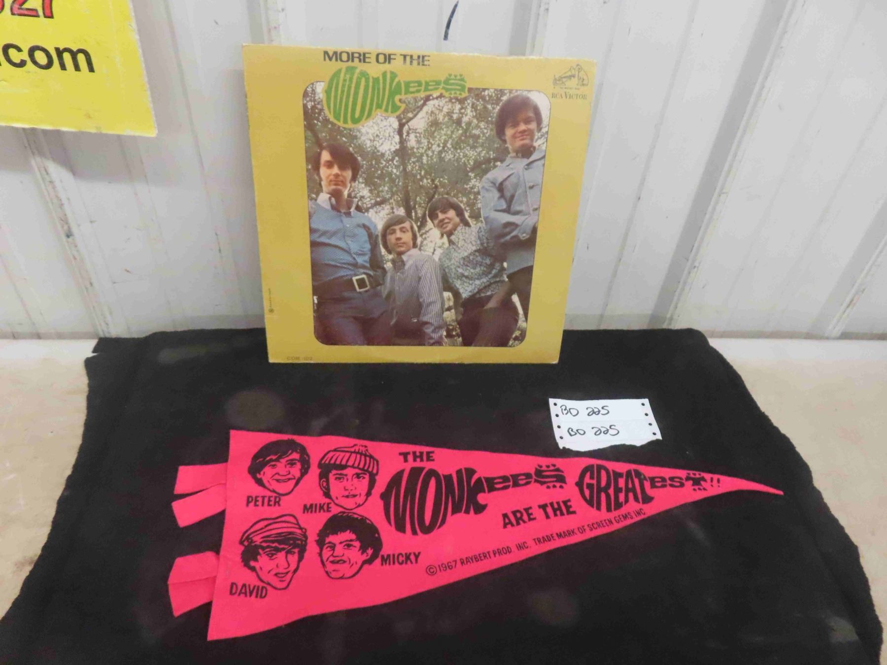 Vintage 1967 Monkees Felt Pennant (Rare!) Excellent Condition. & a Monkees LP