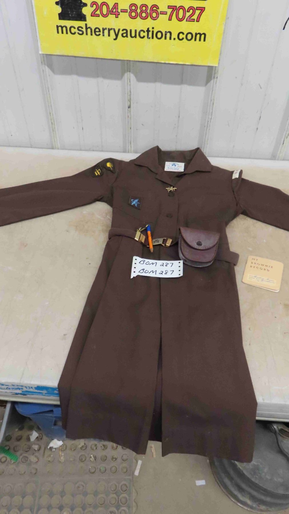 Vintage 1970s Brownie Uniform with Badges and Accessories
