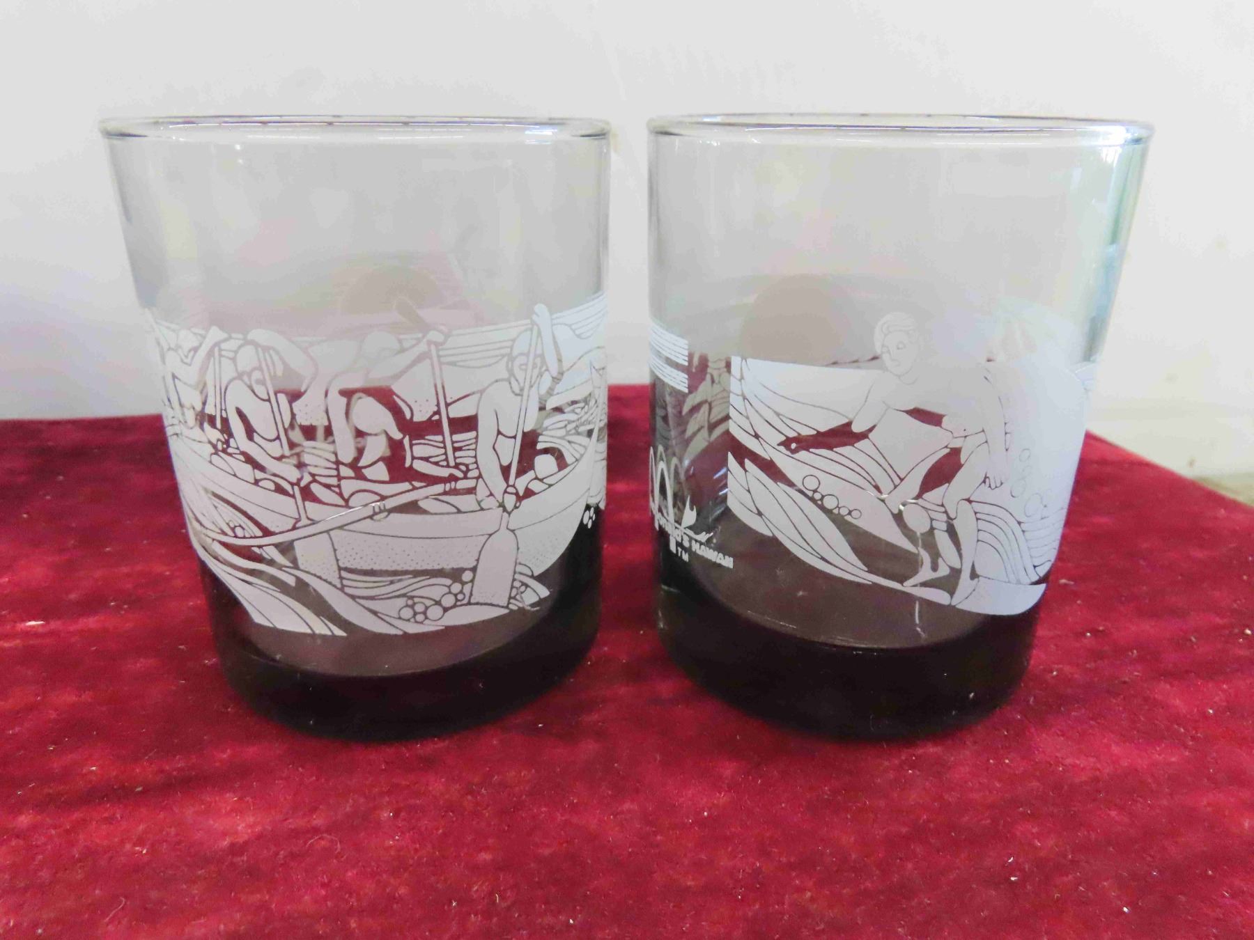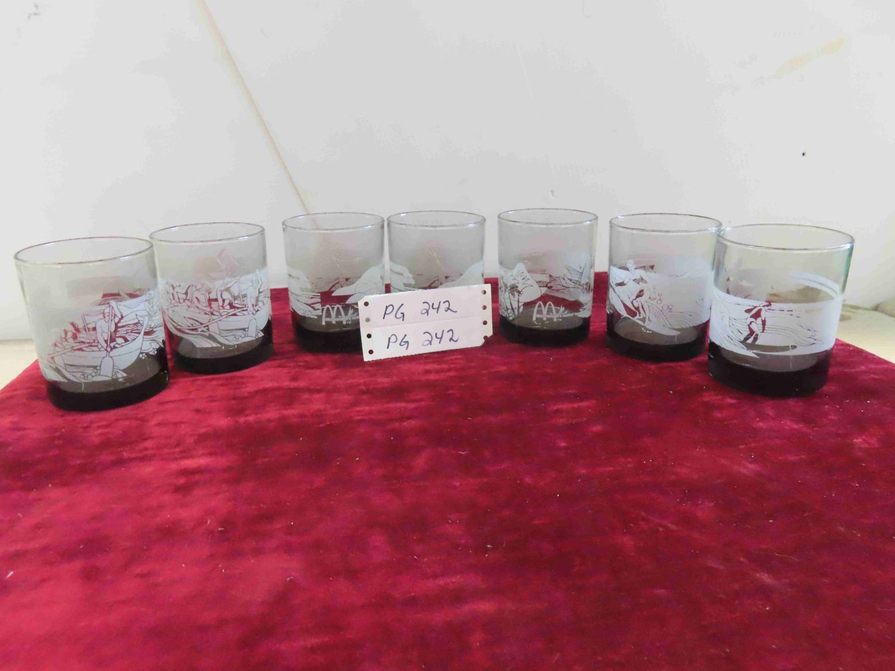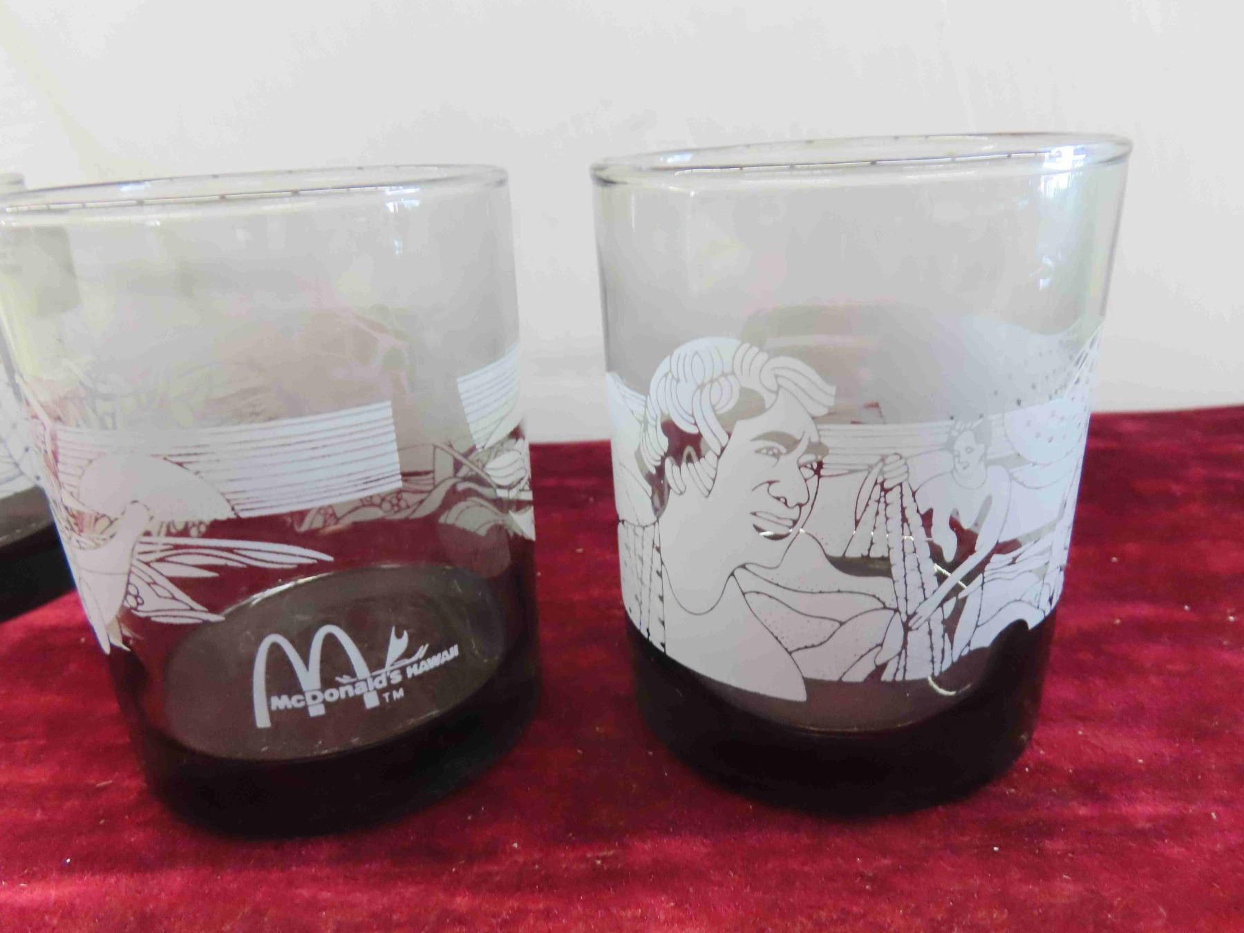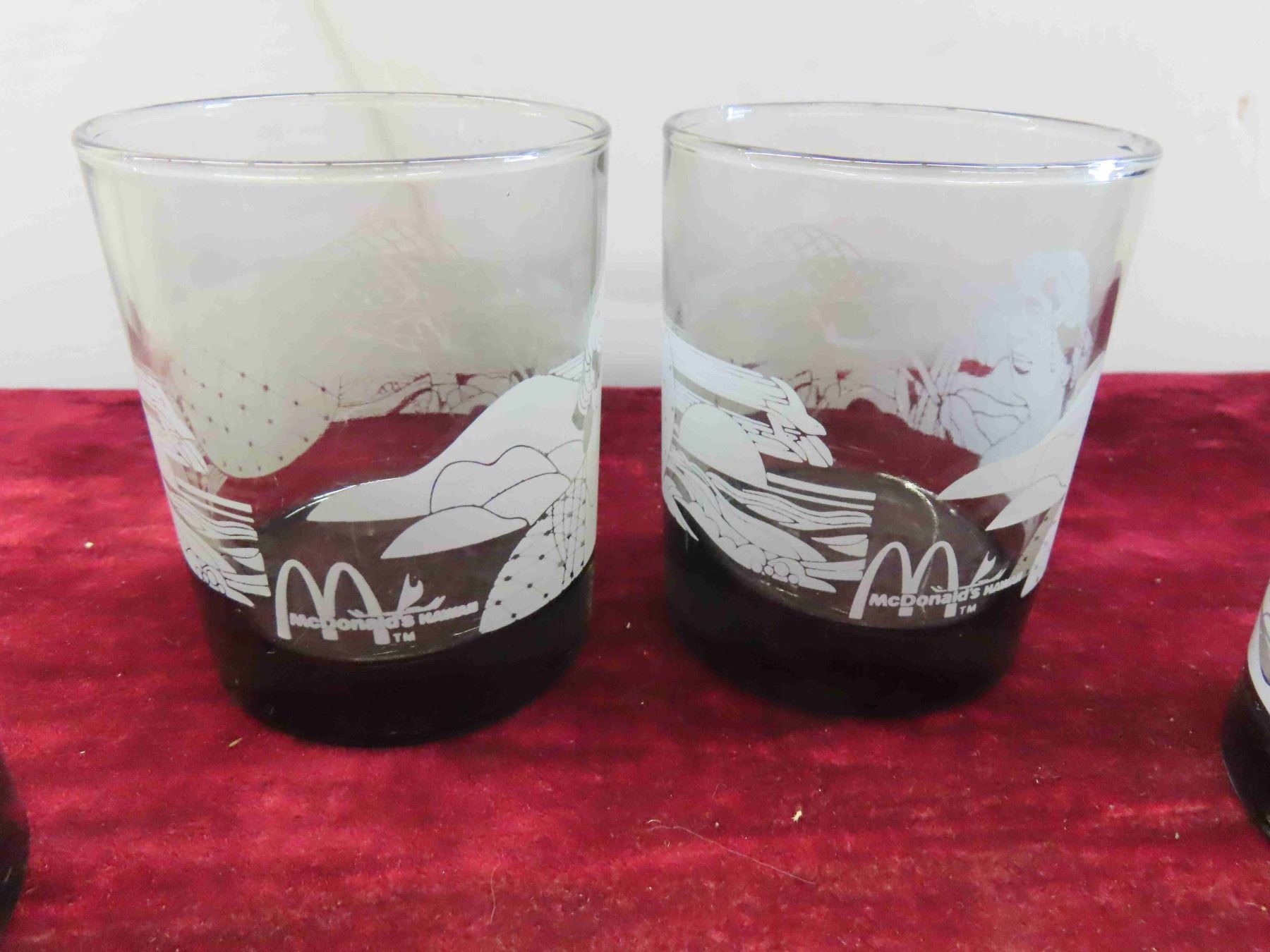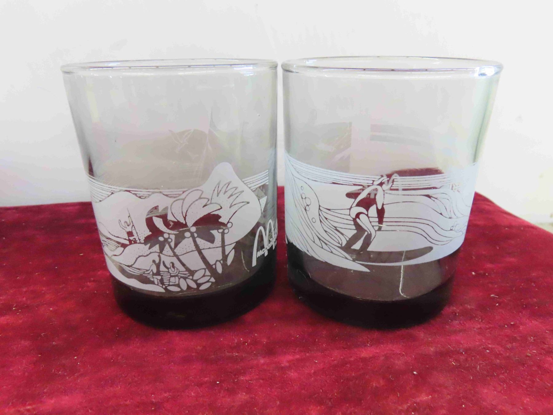 Vintage 1980s Libbey McDonalds Hawaii Promotional Souvenir Set of 7 Heavy Glasses