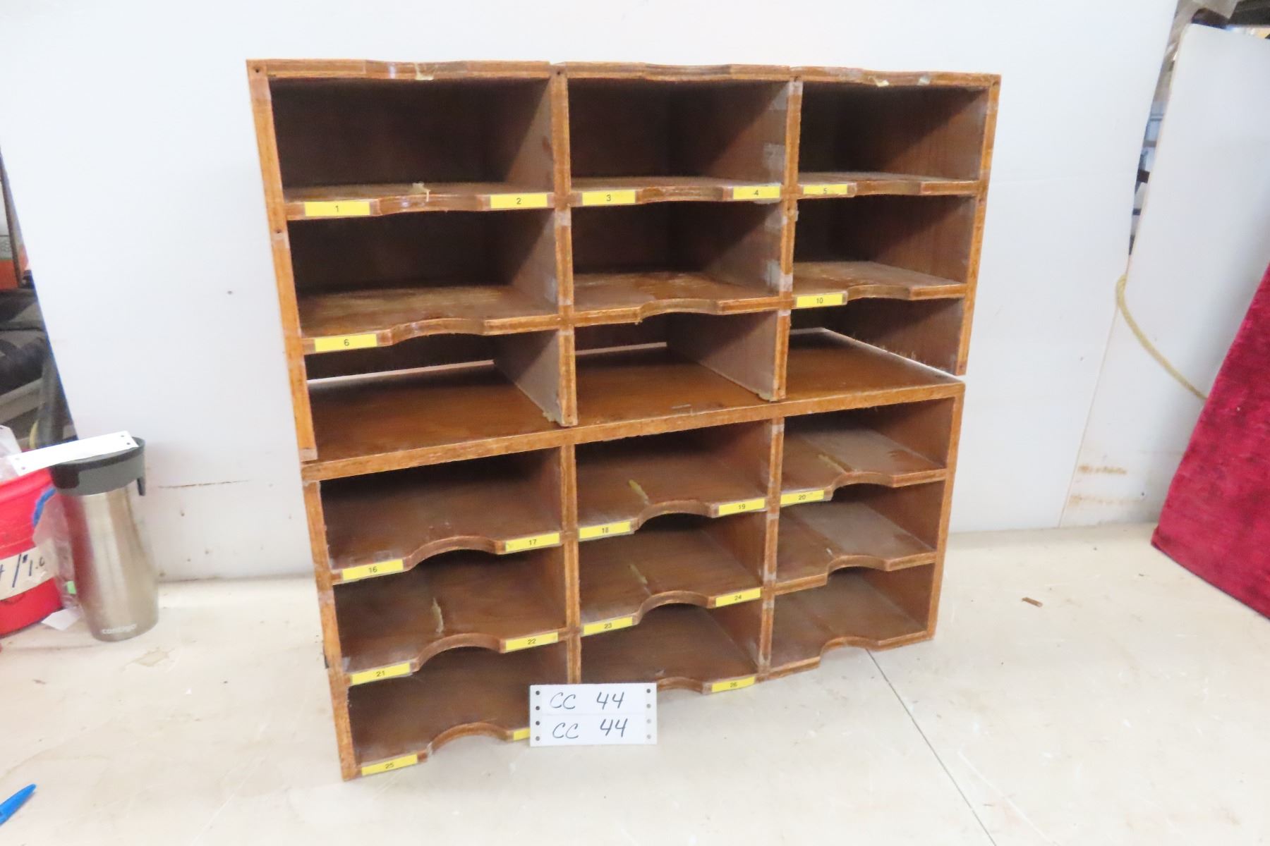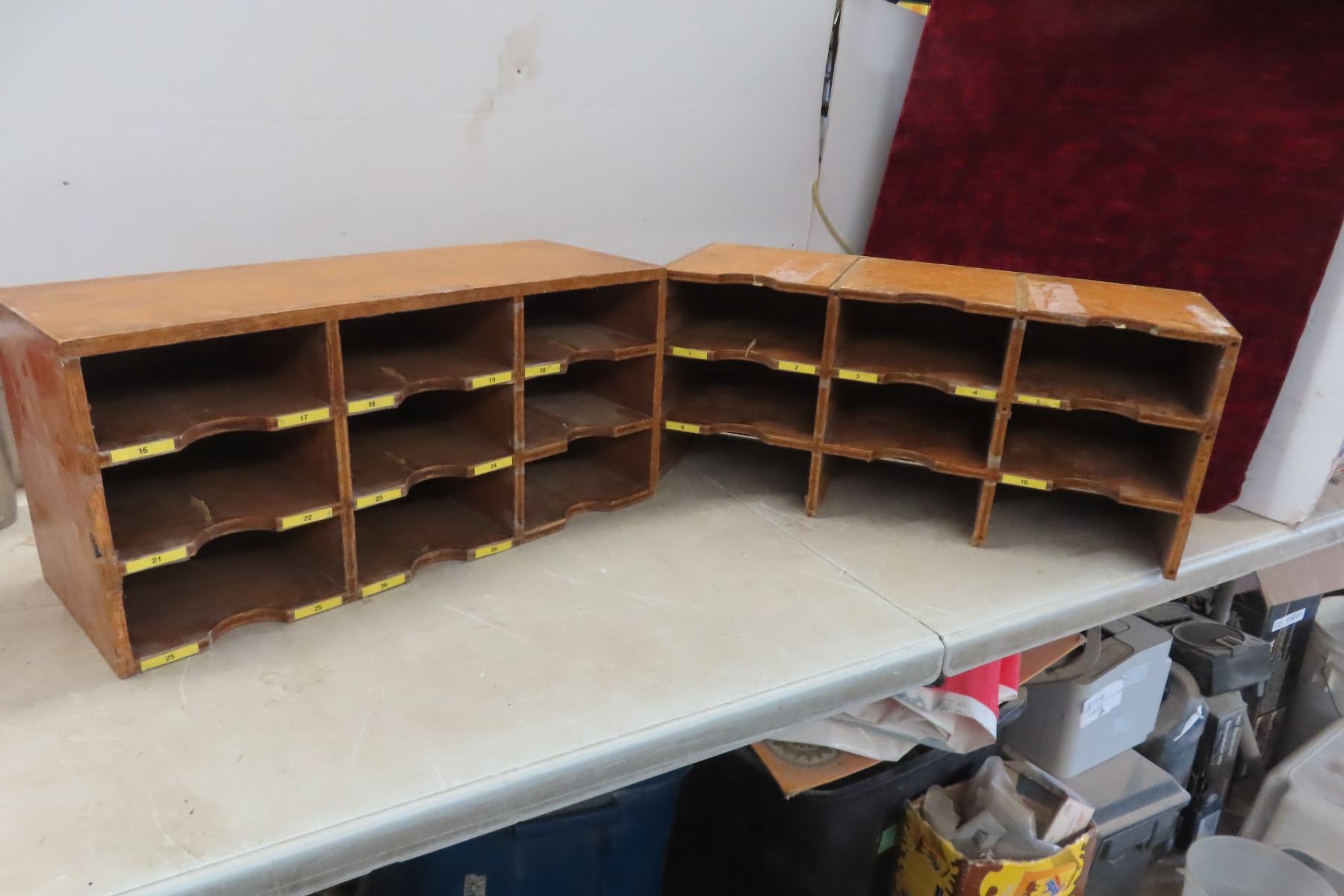 Vintage 2 PC Oak Pigeon Hole Cabinet 21x9x23
