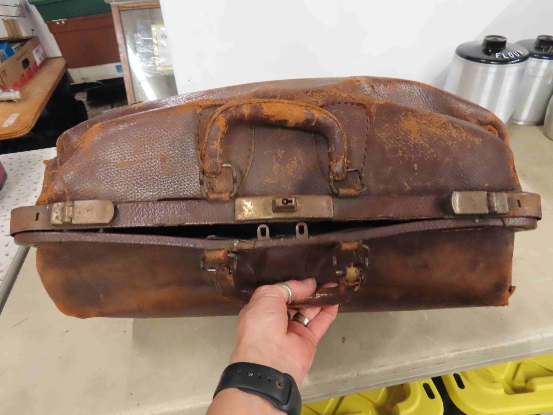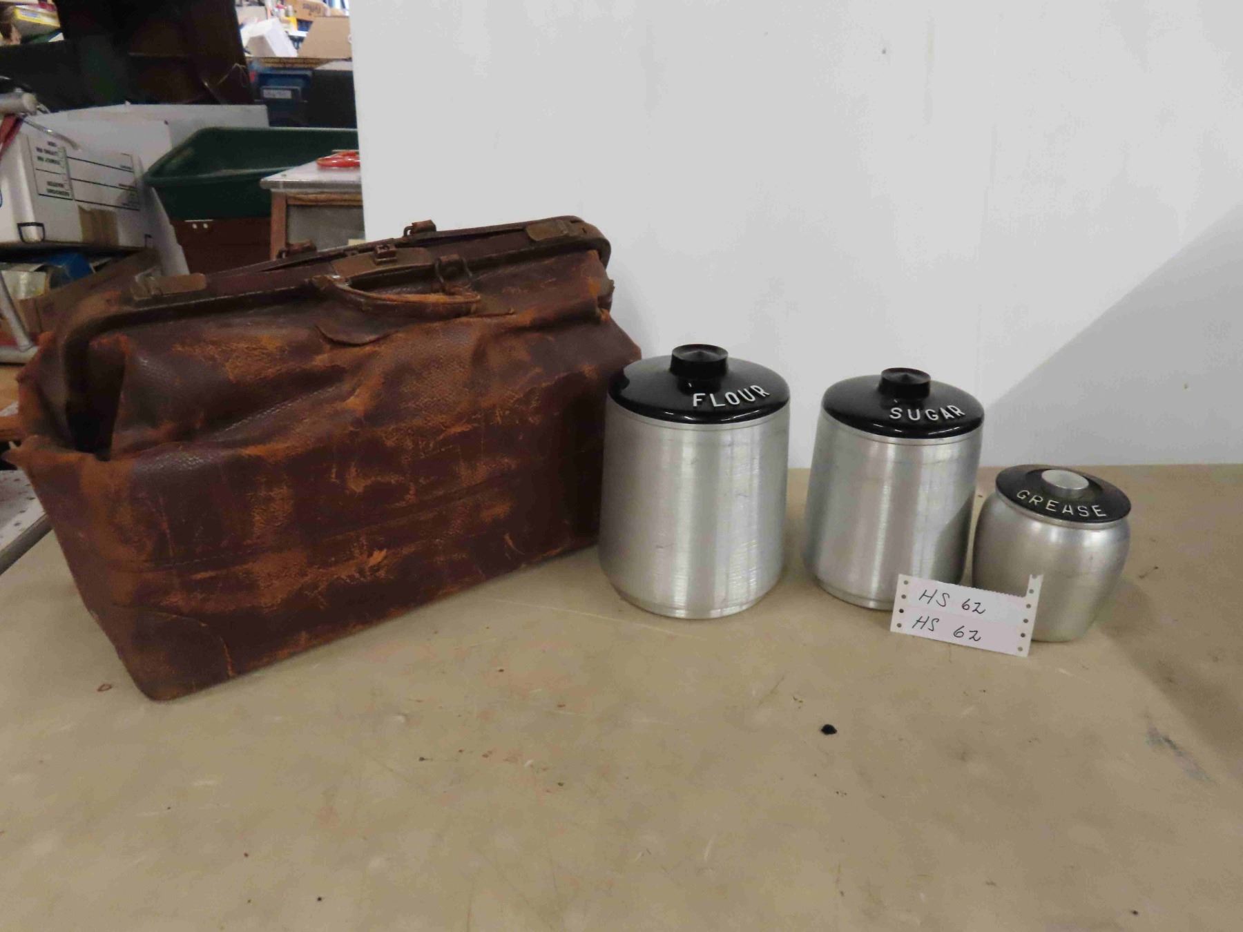 Vintage 3 Piece Canister Set , Leather Doctors Bag