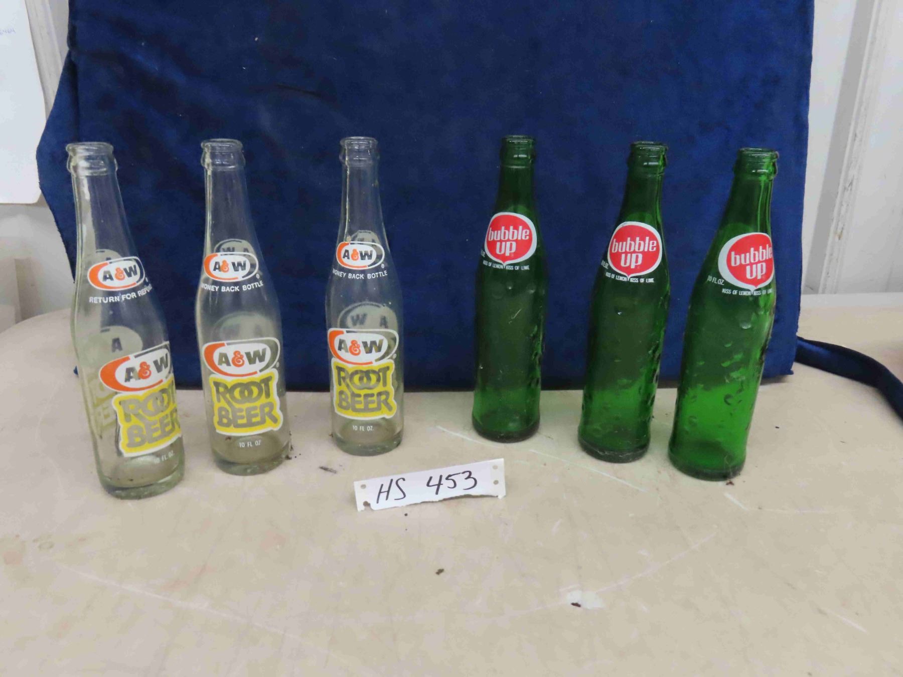 Vintage A&W Root Beer + Bubble Up 10 oz Soft Drink Bottles