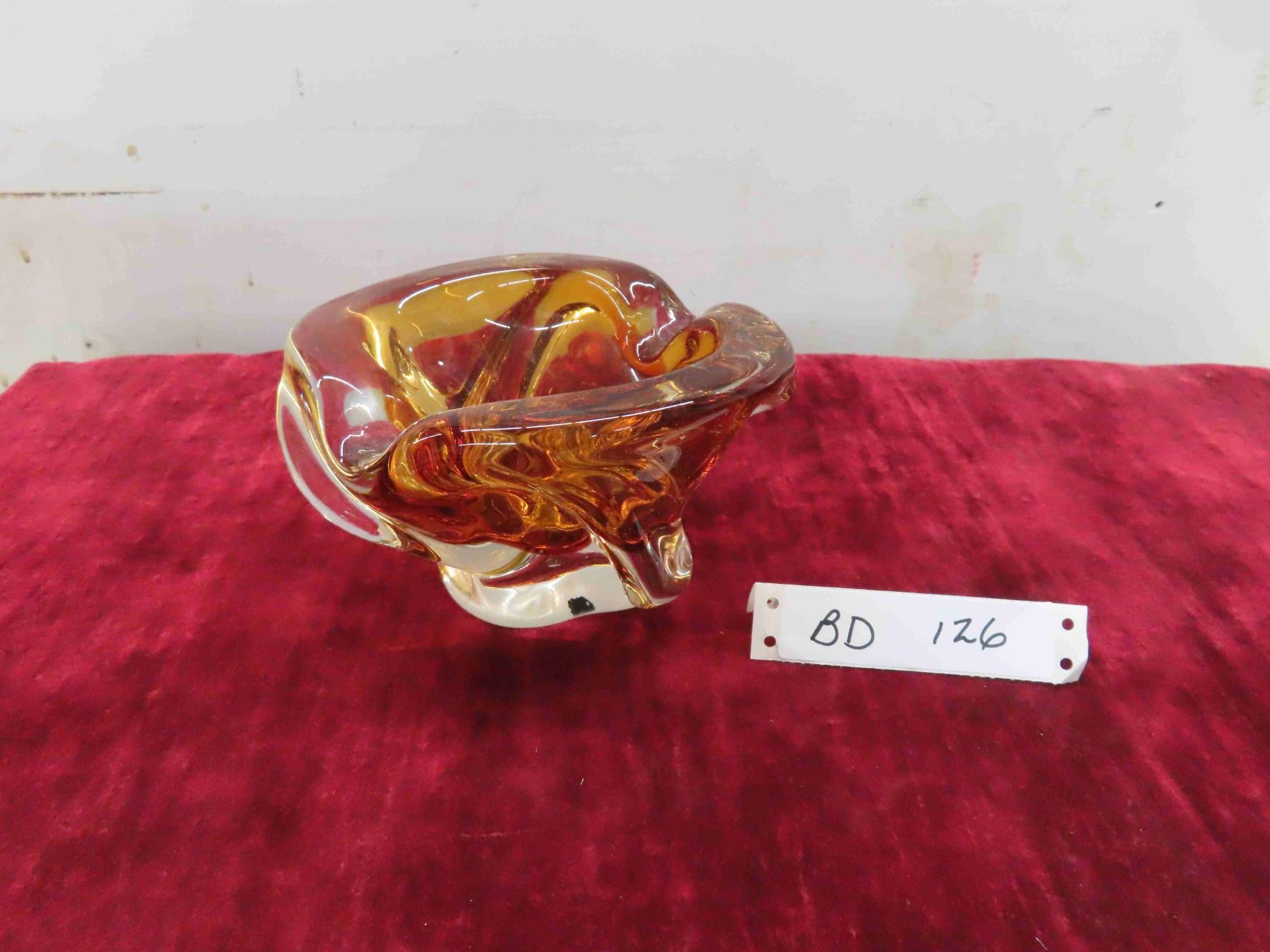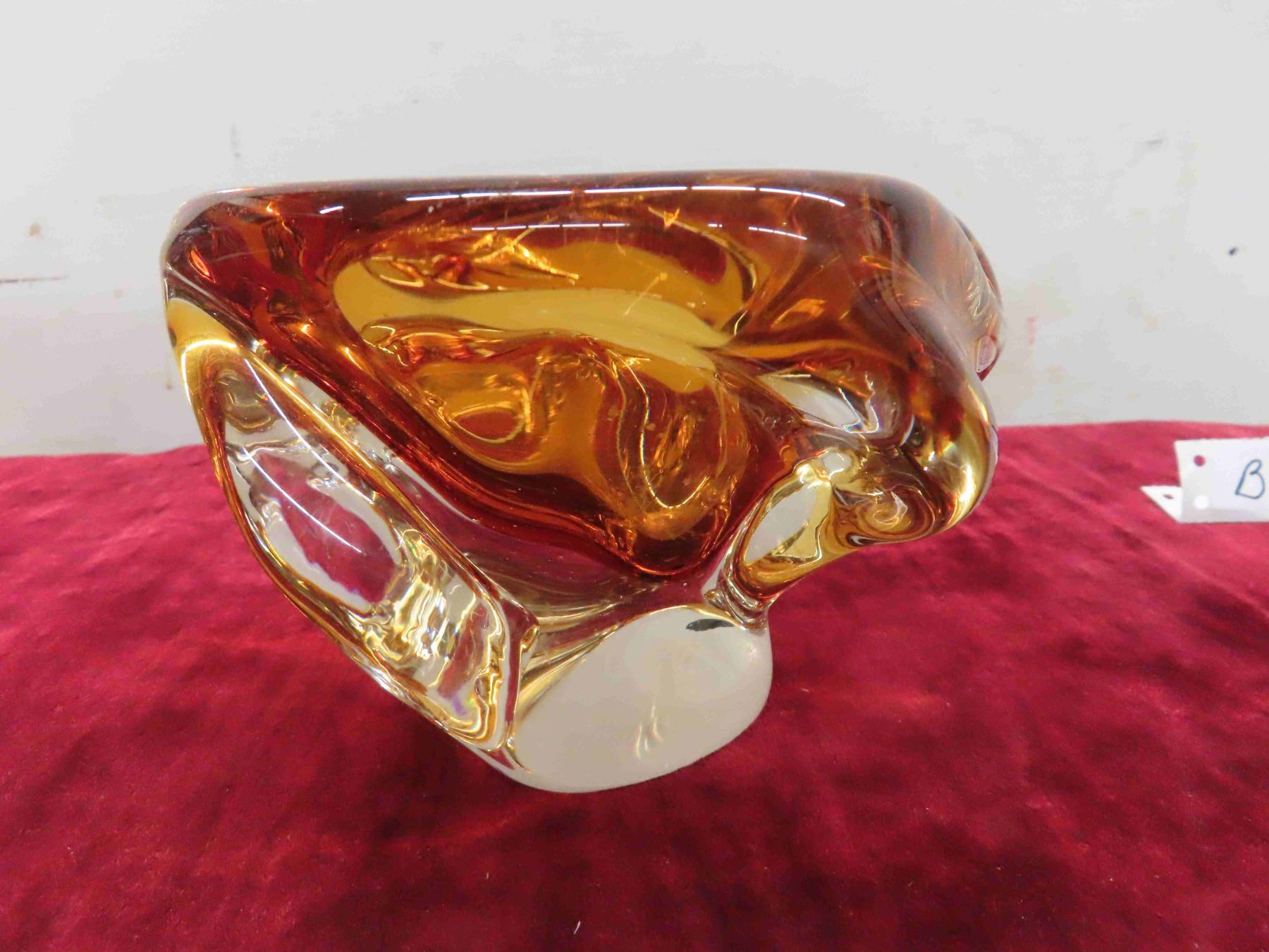 Vintage Amber Chalet Glass Centerpiece Bowl, Signed. 6'' Diam. X 4'' Tall, Excellent Condition