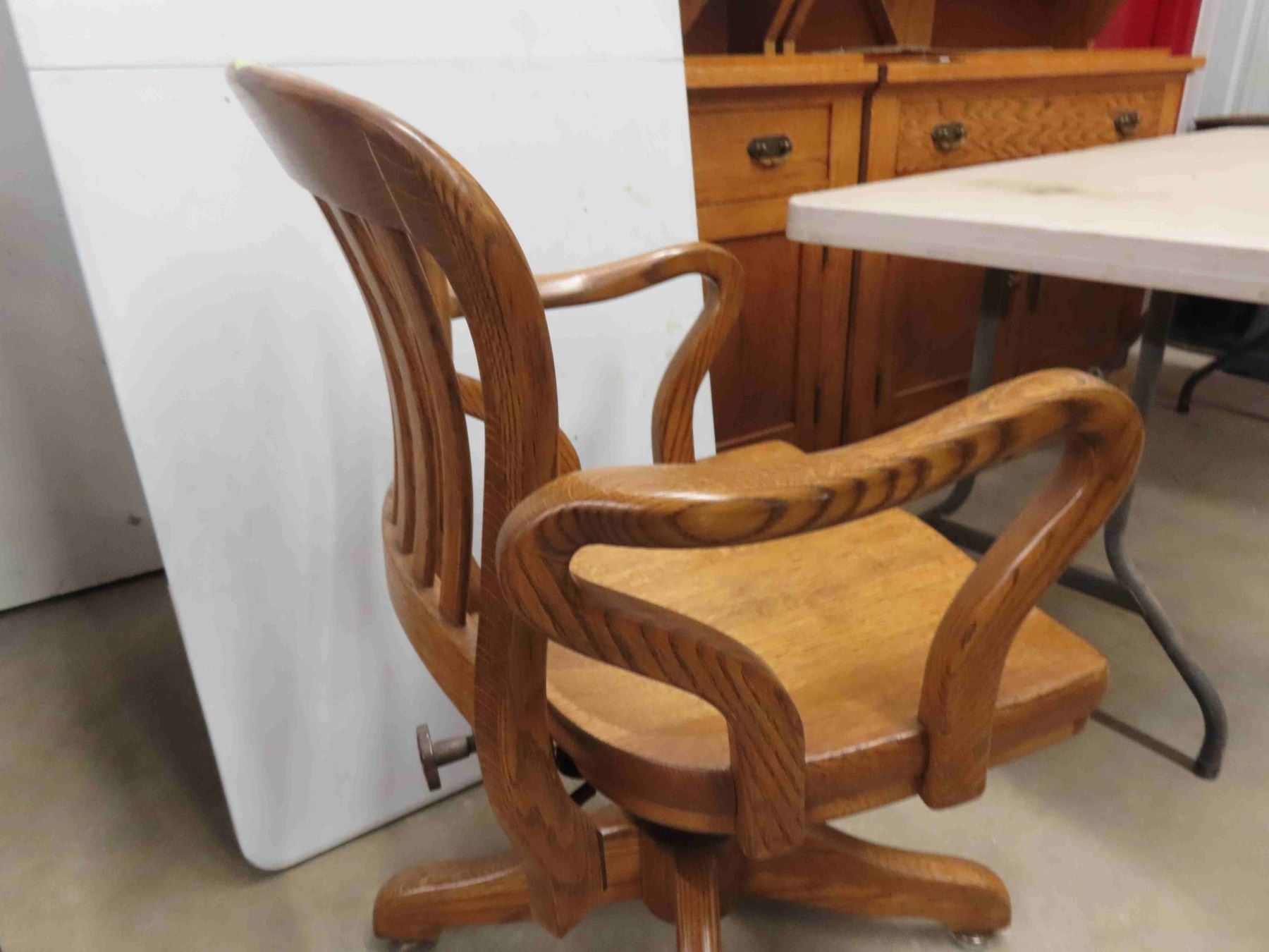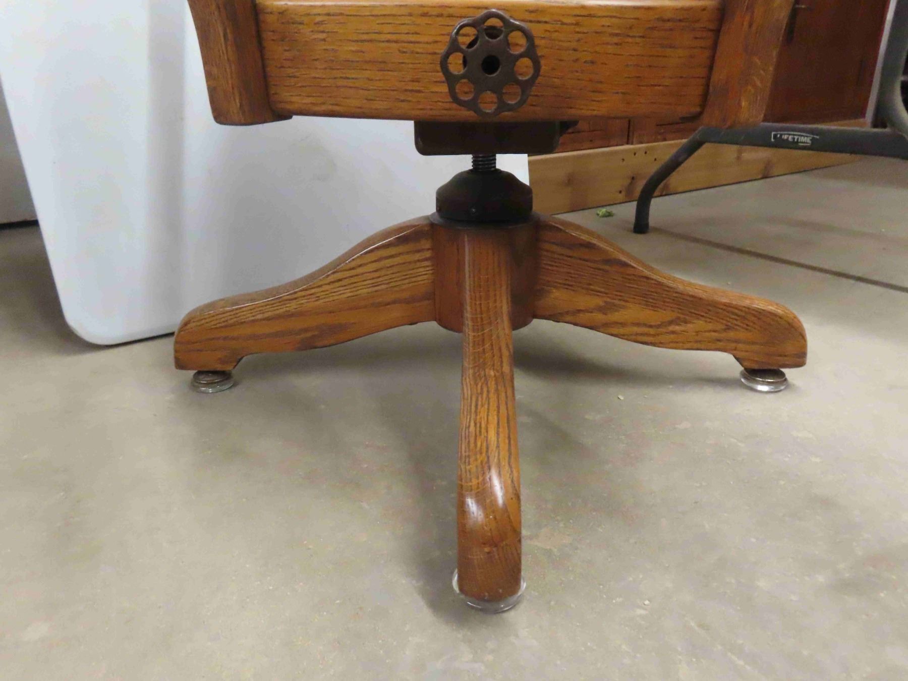 Vintage Antique Mission Oak Executive Office Chair. Refinished and would look beautiful behind your vintage desk. 4 legs for added stability.