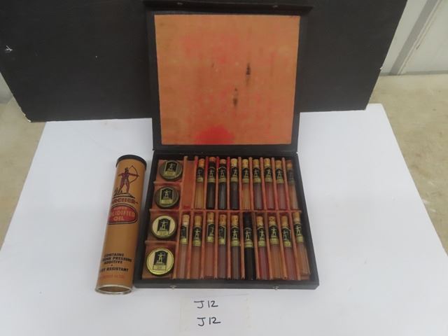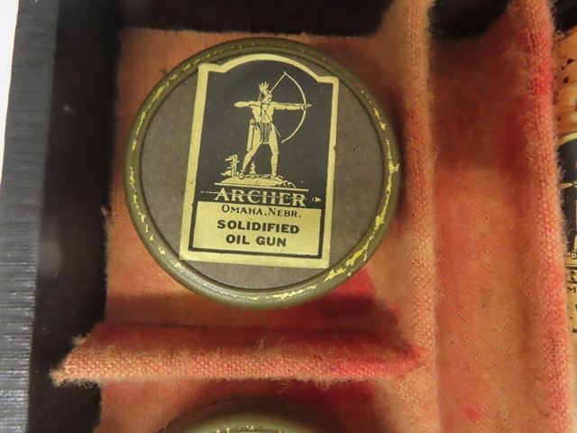 Vintage Archer Oil Sample Bottles in Case, Archer Solidified Oil Cardboard Container - Empty