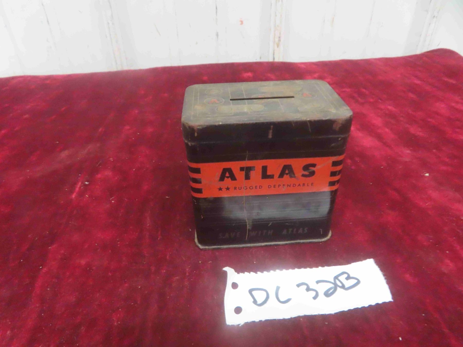 Vintage Atlas Tin Bank 3'' x 3'' x 2''