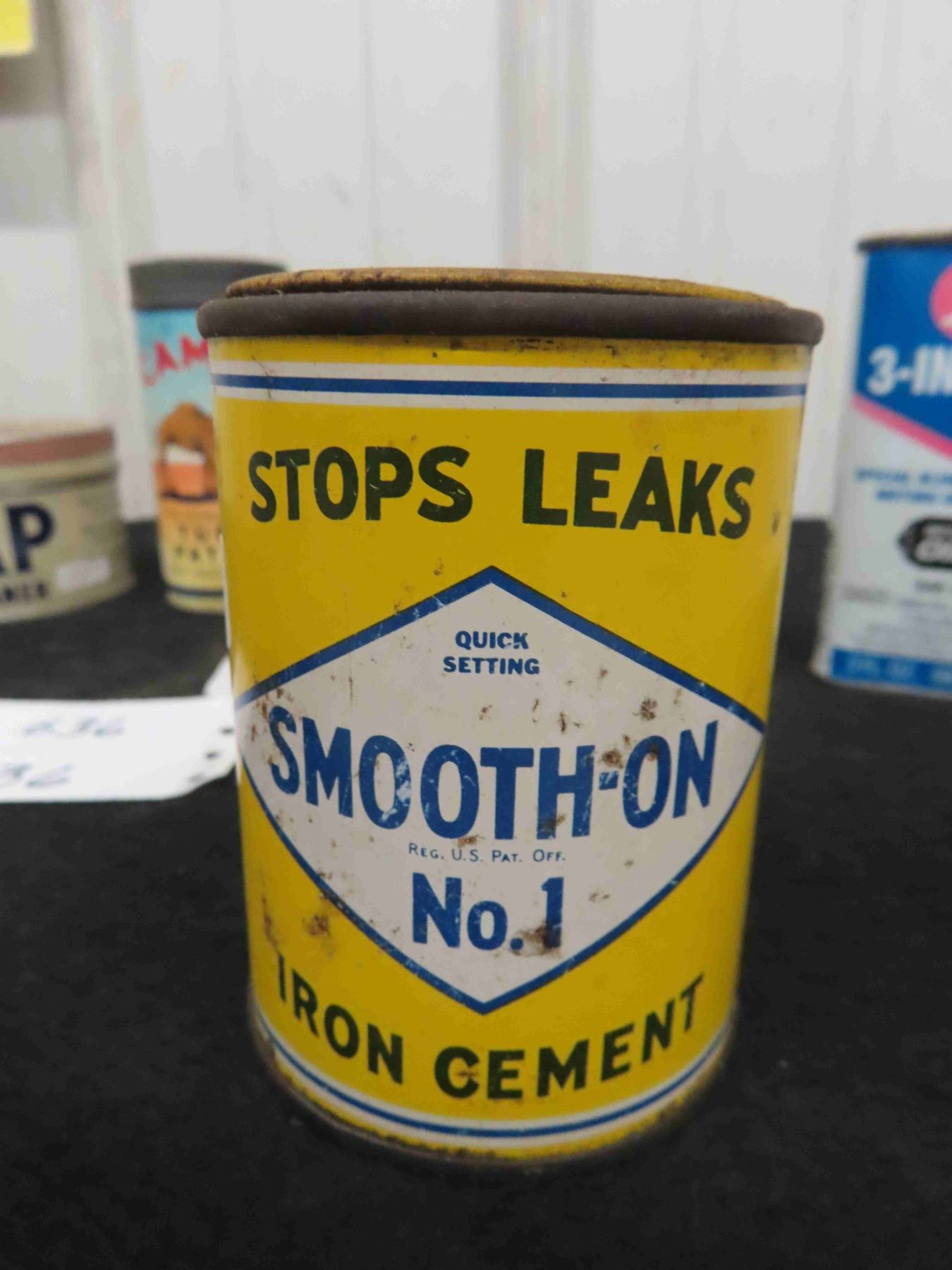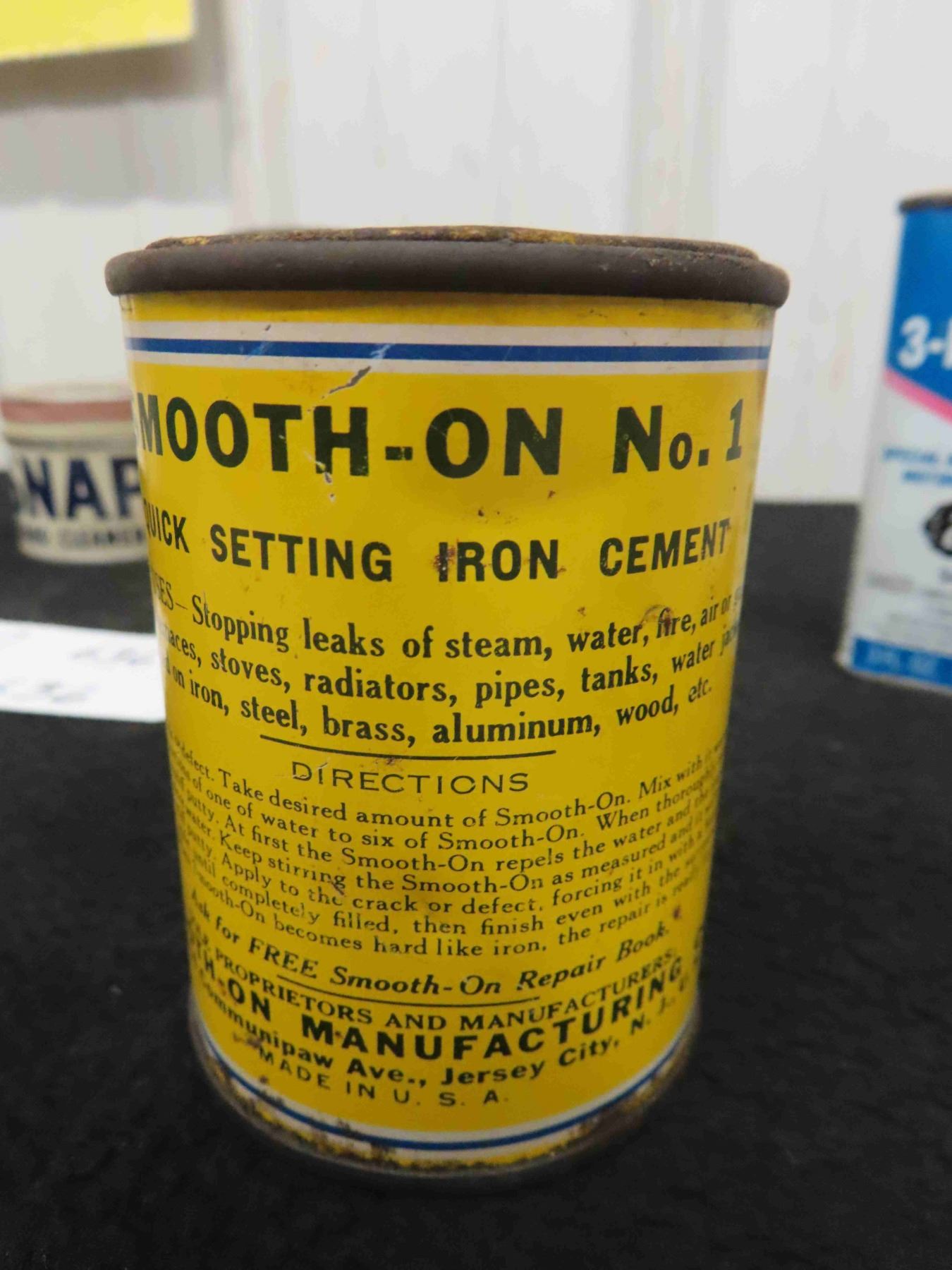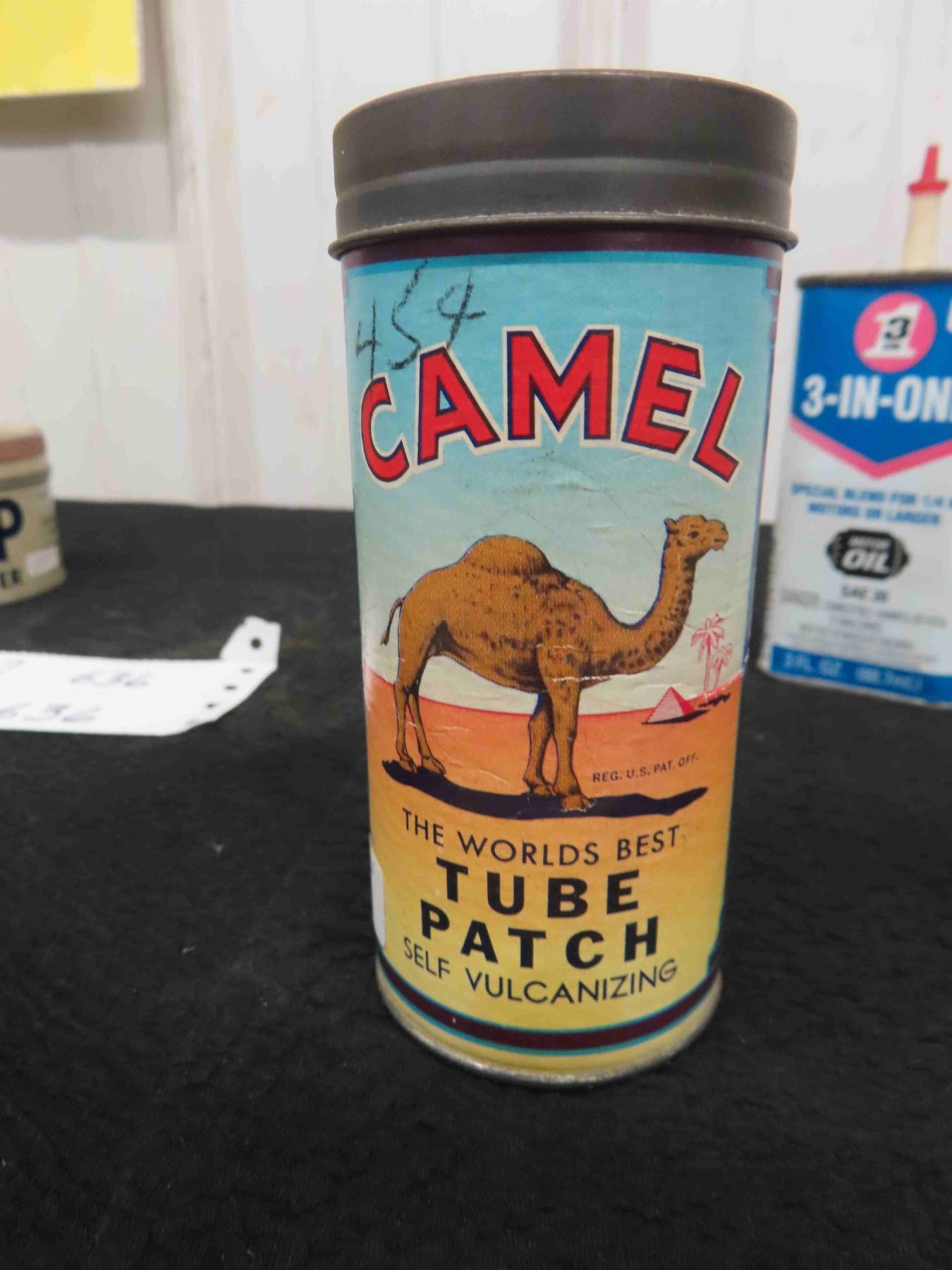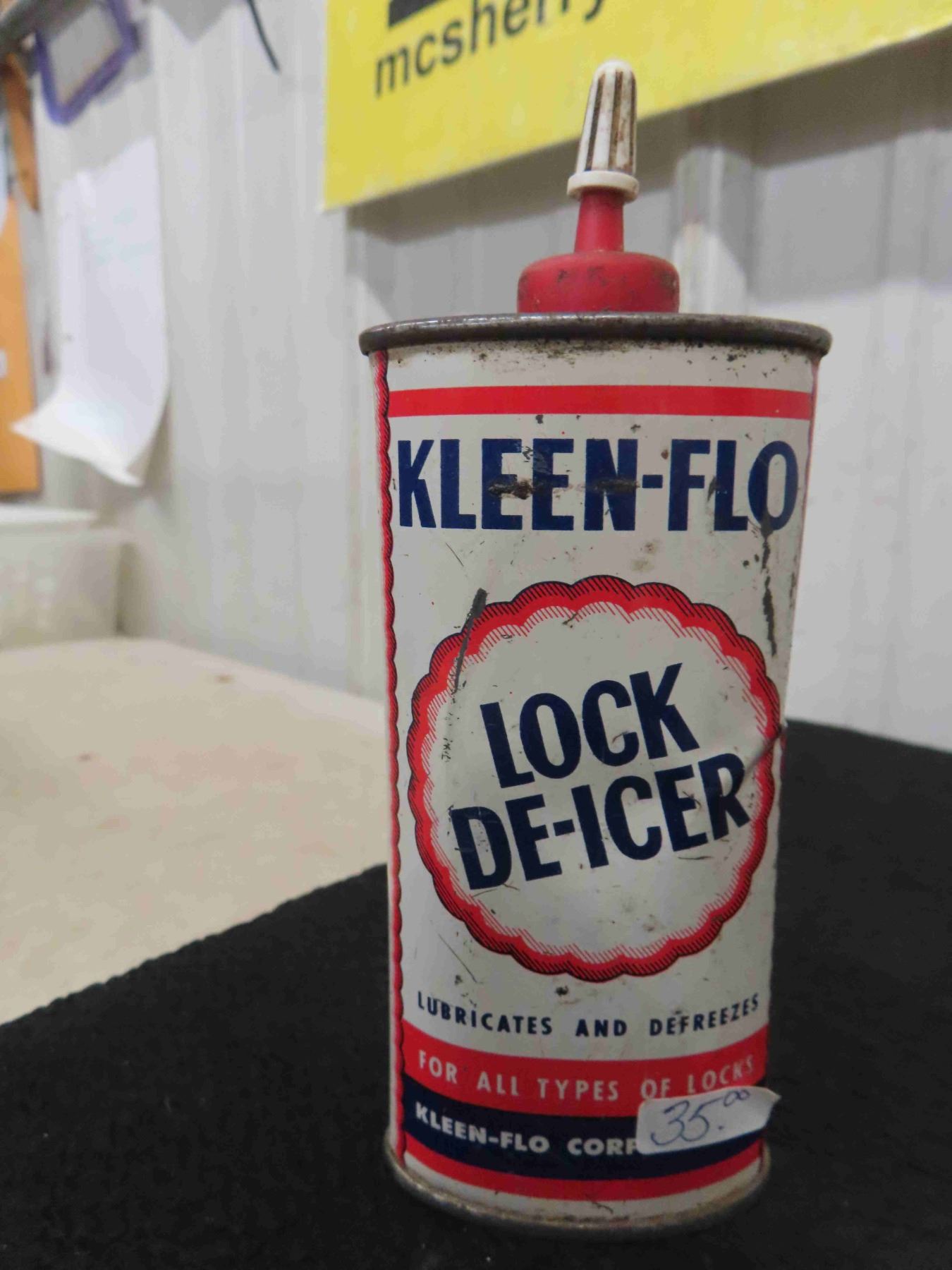 Vintage Auto and Household Tins : Kleenflo Lock Deicer, Snap Hand Cleaner, Camel Tube Patch, Plus