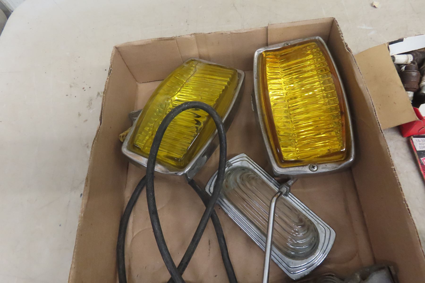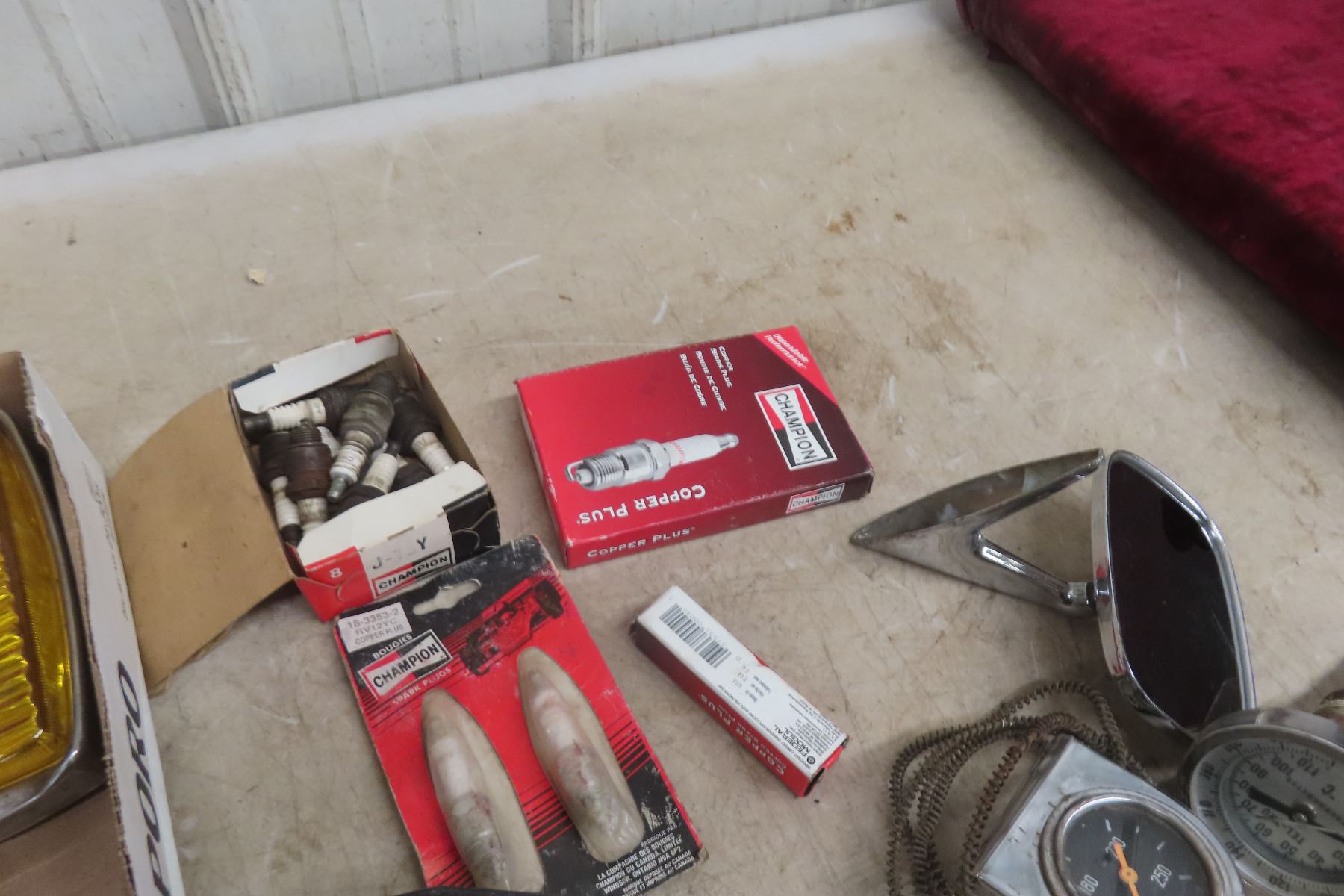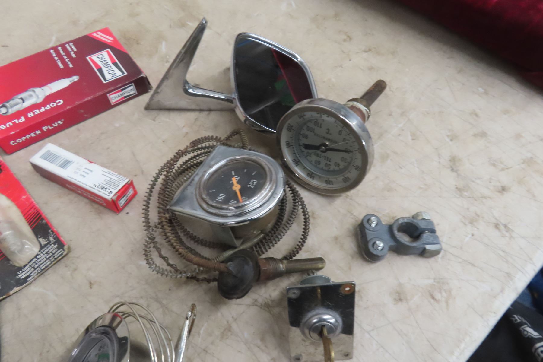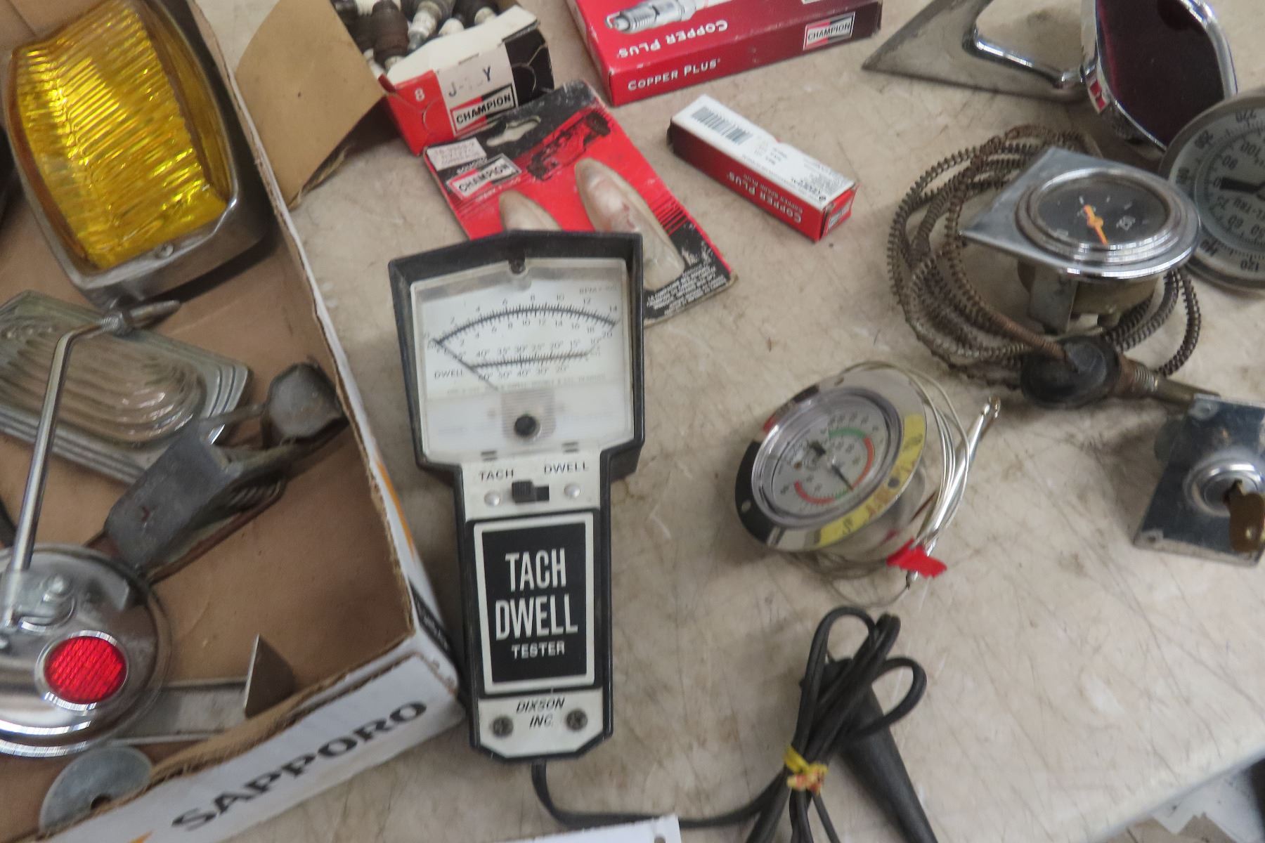 Vintage Auto lights, Spark Plugs, Mirrors, Gauges, Tach Tool Cartridge