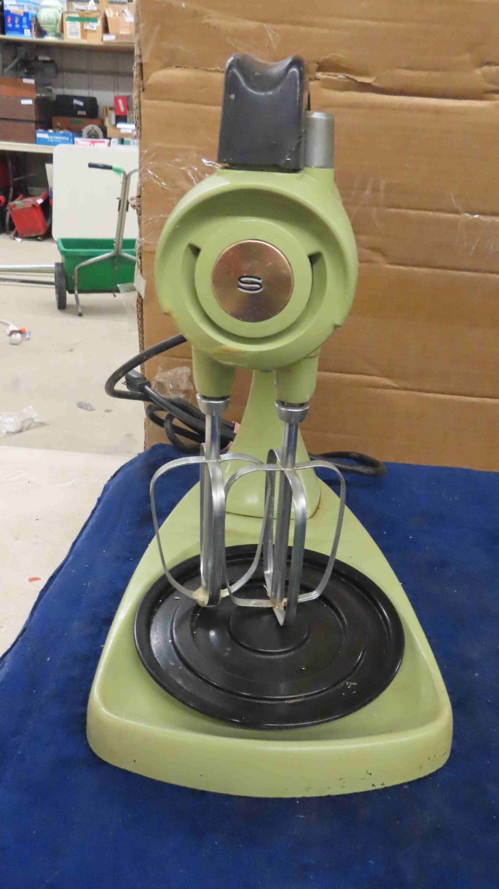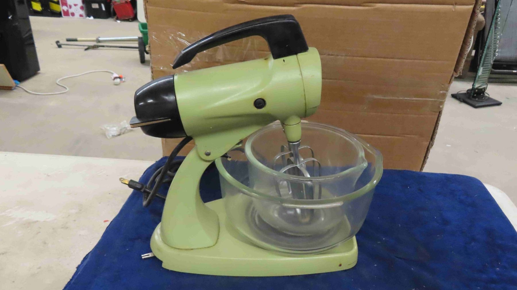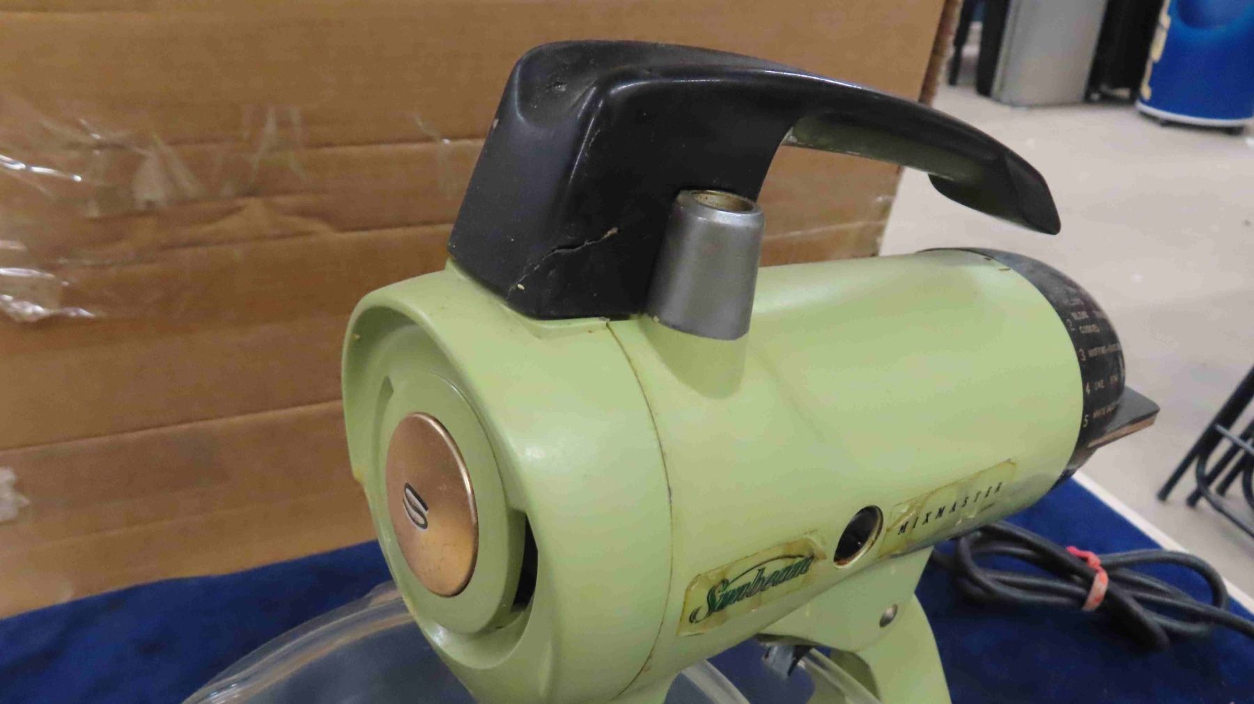 Vintage Avocado Green Sunbeam Mixmaster with 2 Glass Bowls