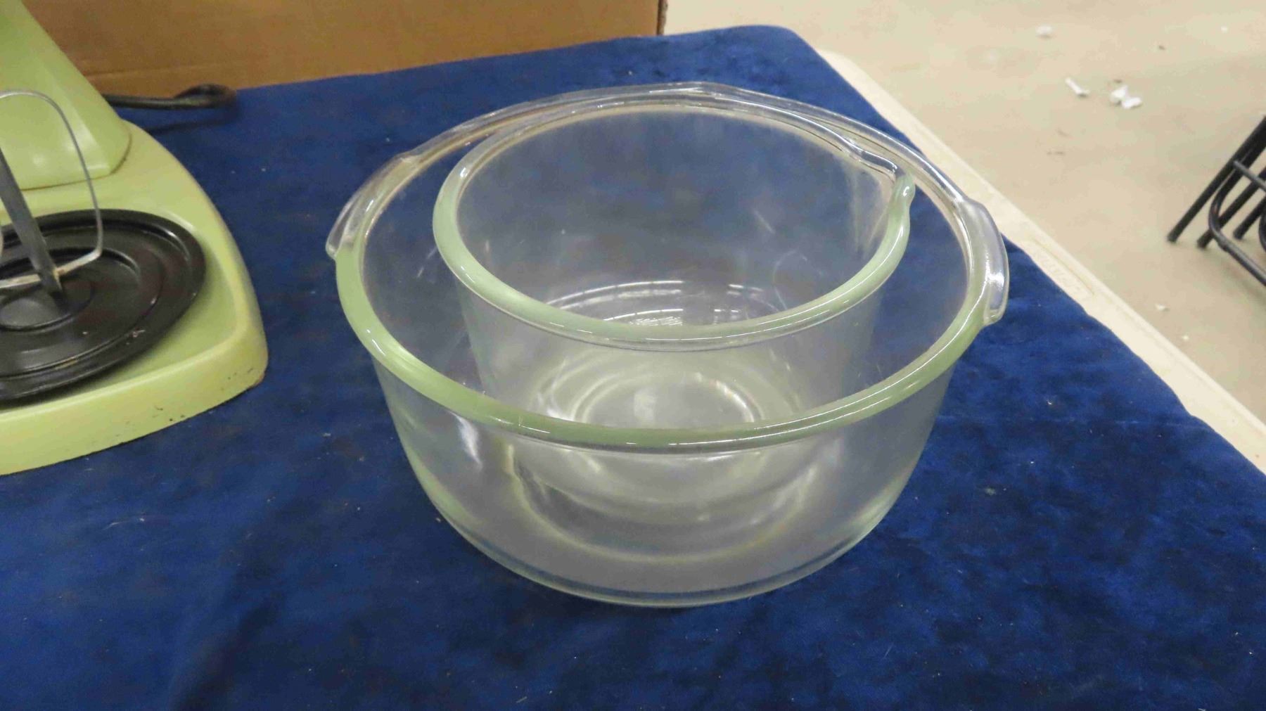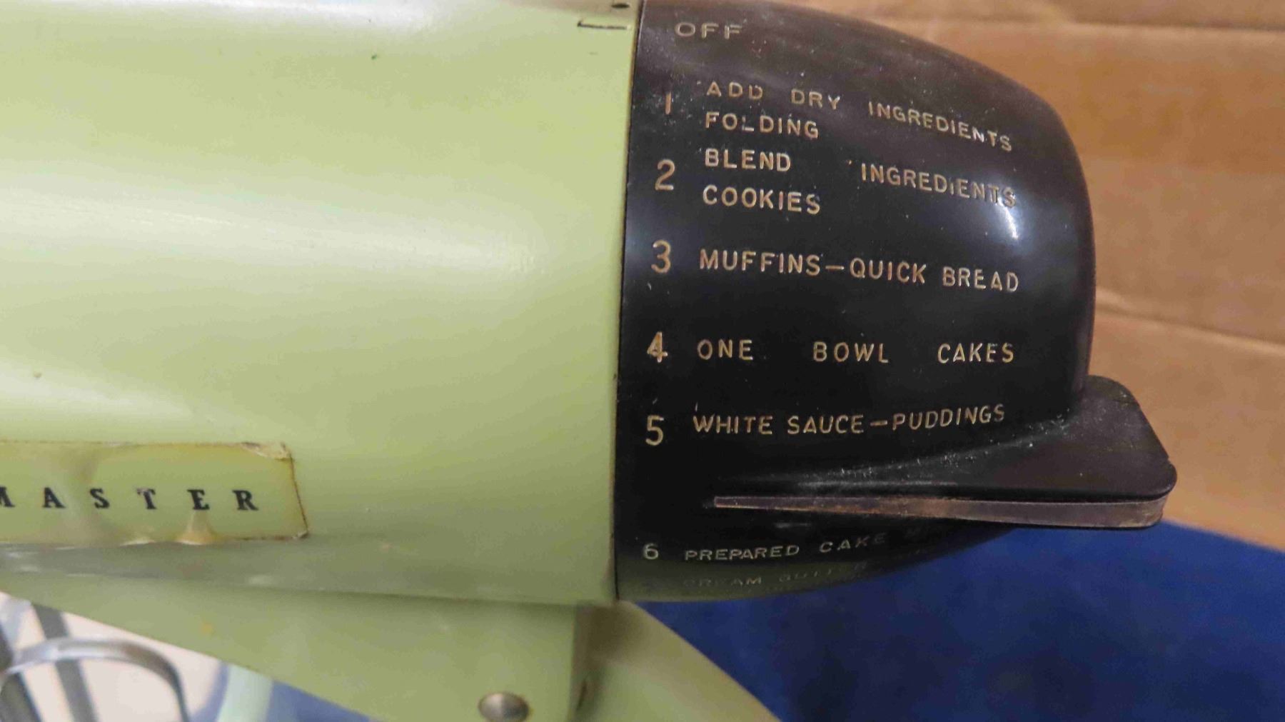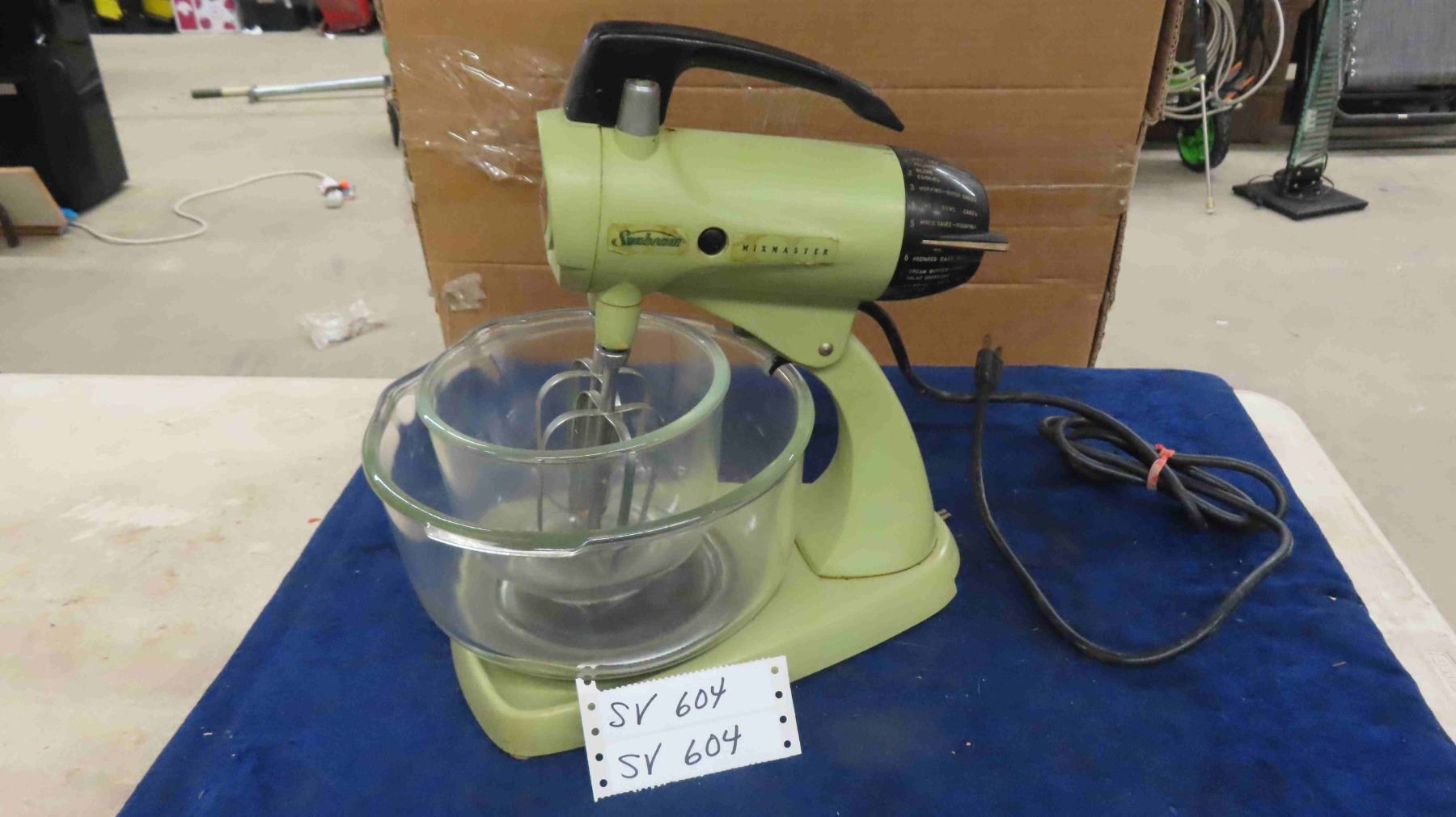 Vintage Avocado Green Sunbeam Mixmaster with 2 Glass Bowls