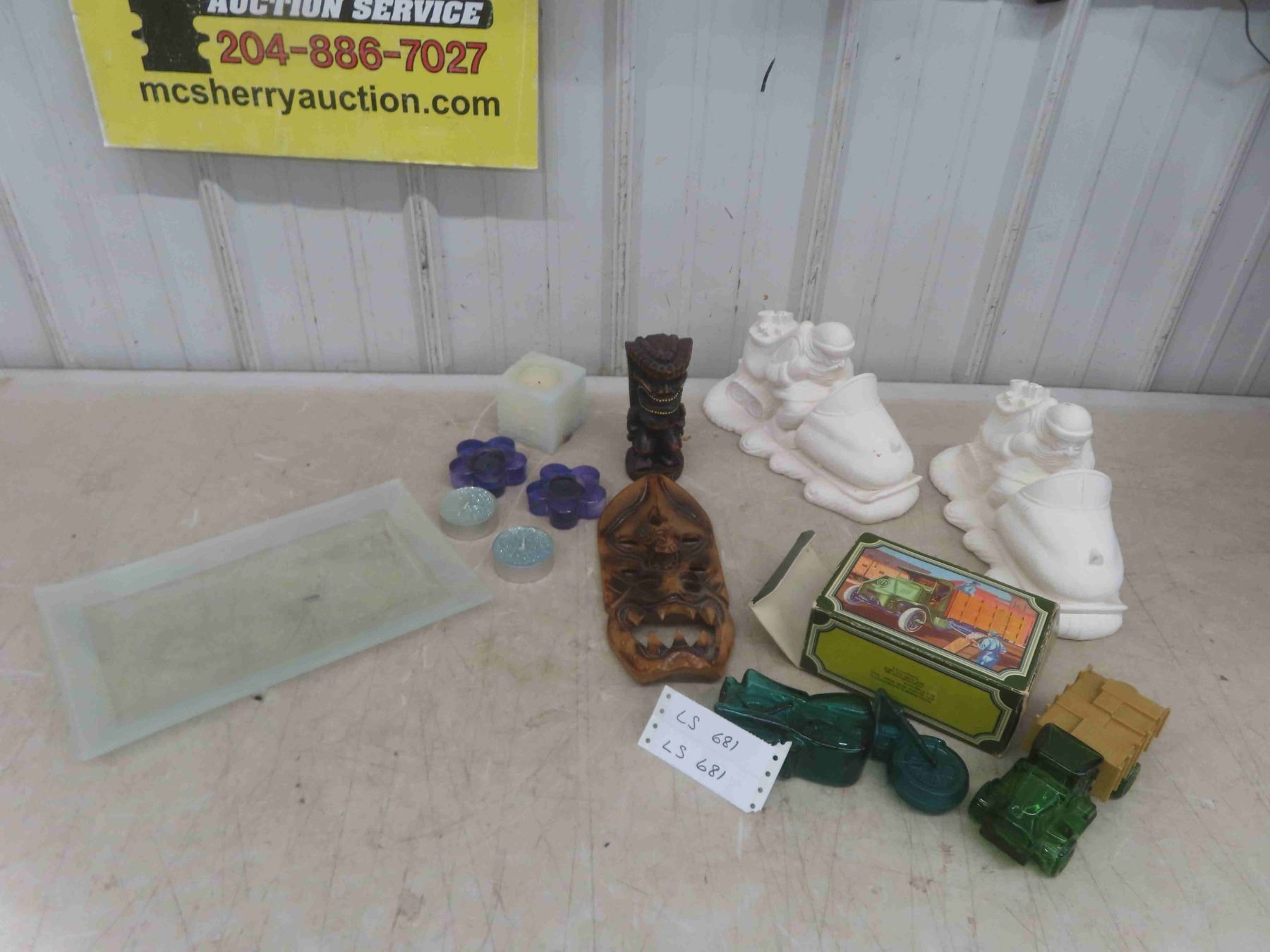 Vintage Avon, Santa on a Snowmobile, Chalkware Candles, Wood Mask & More