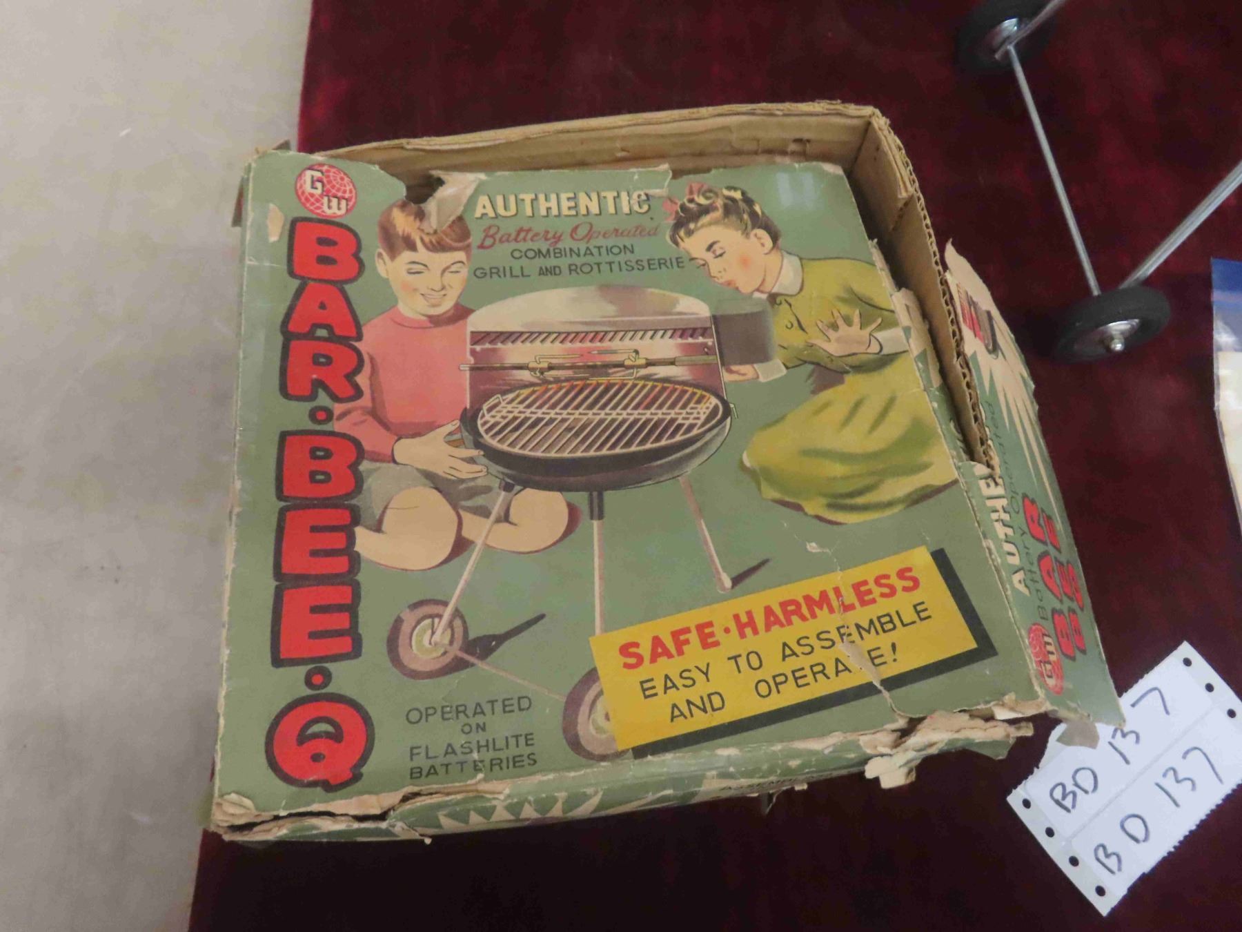 Vintage Bar-Bee-Q Grill, Japan Toy BBQ by GW Toys in Box. c1950s
