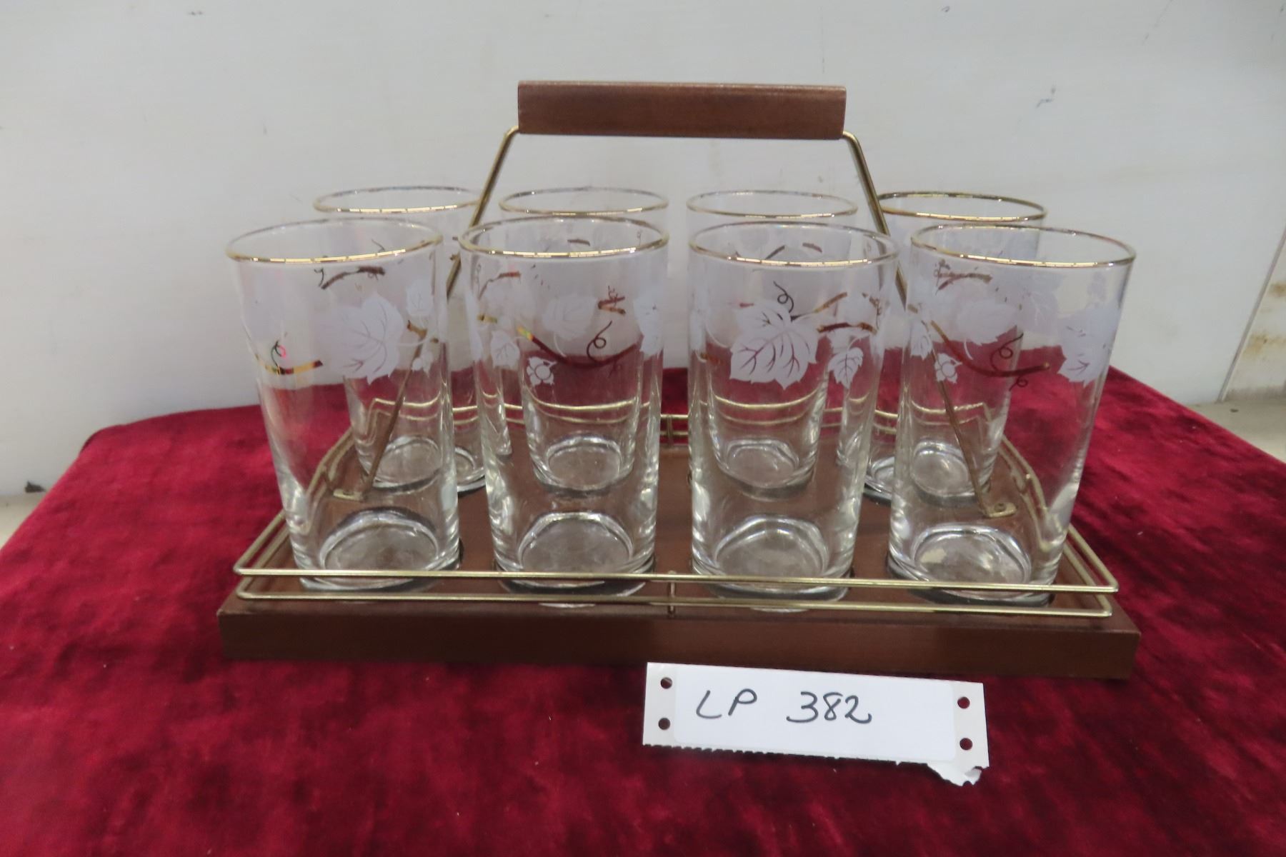 Vintage Bar Serving Set with 8 Leaf Pattern Tumbler Glasses, Mint