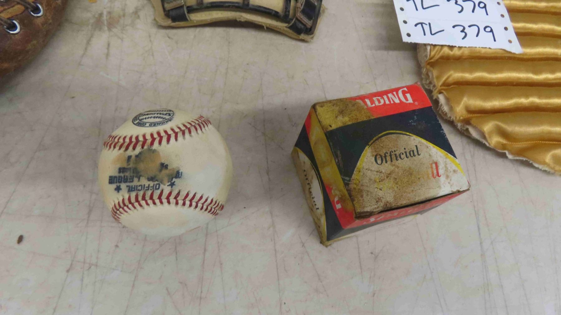 Vintage Baseball Catchers Mask, Glove, Pad and Ball
