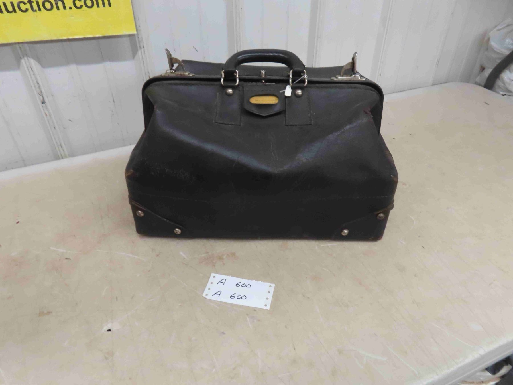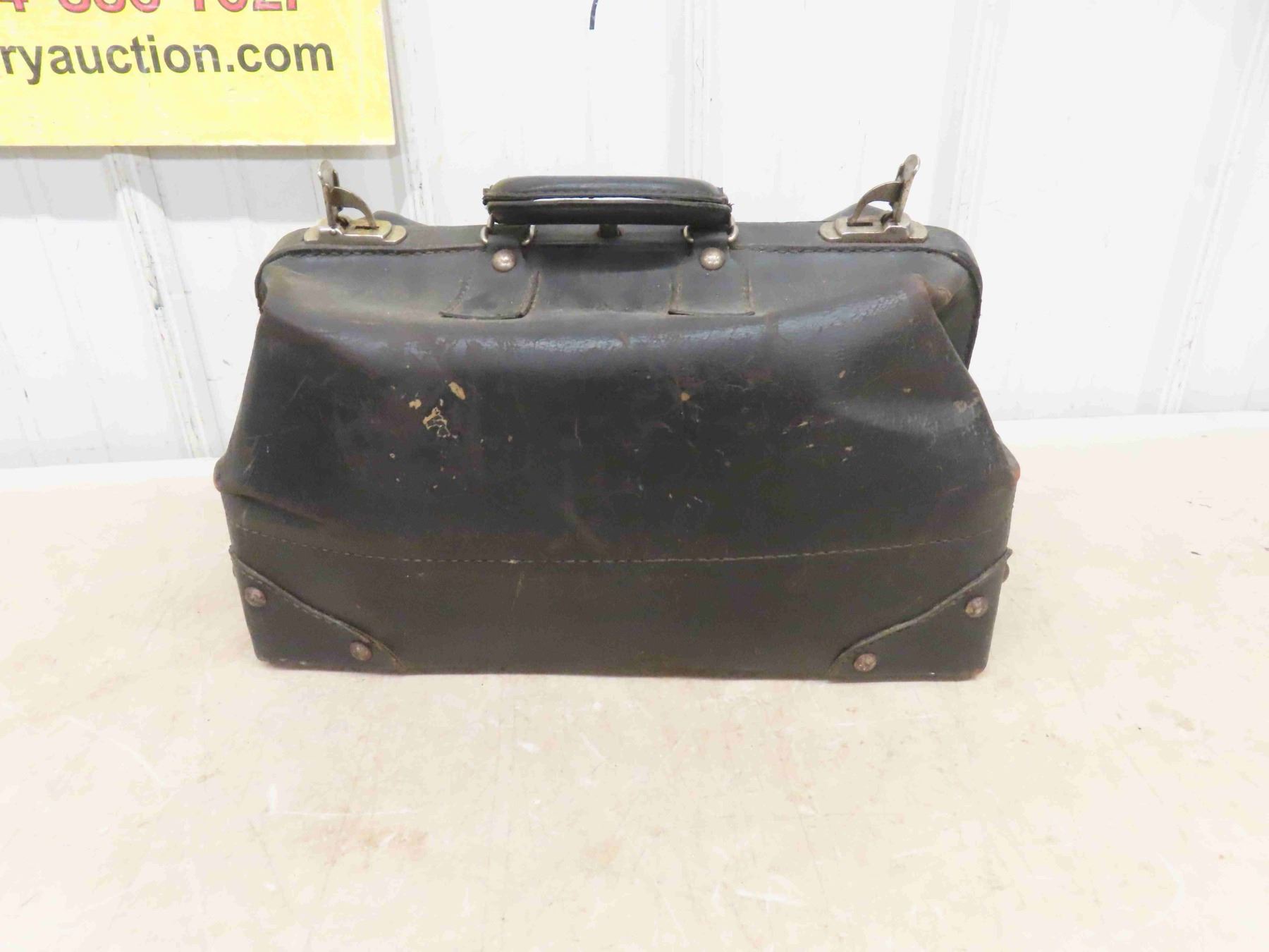 Vintage Black Leather Doctors Bag 18'' x 10'' x 10''