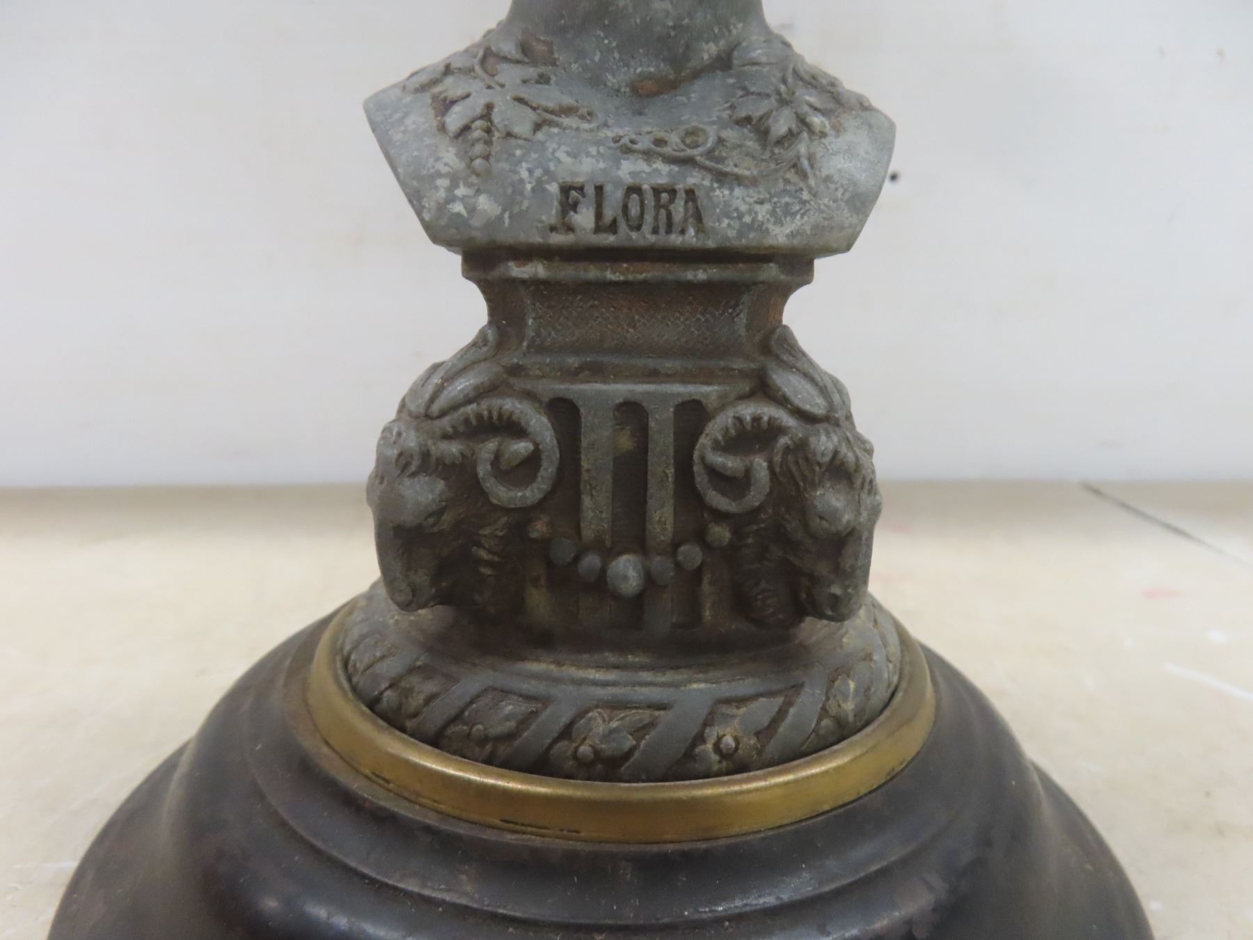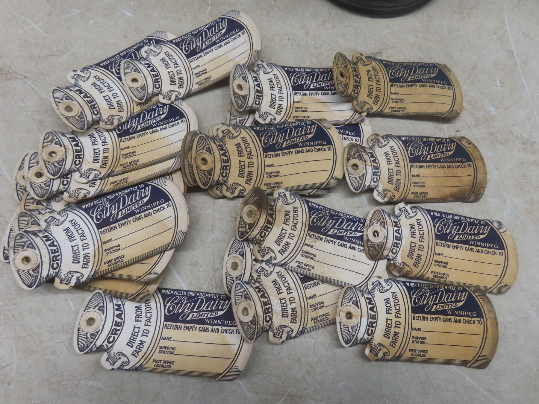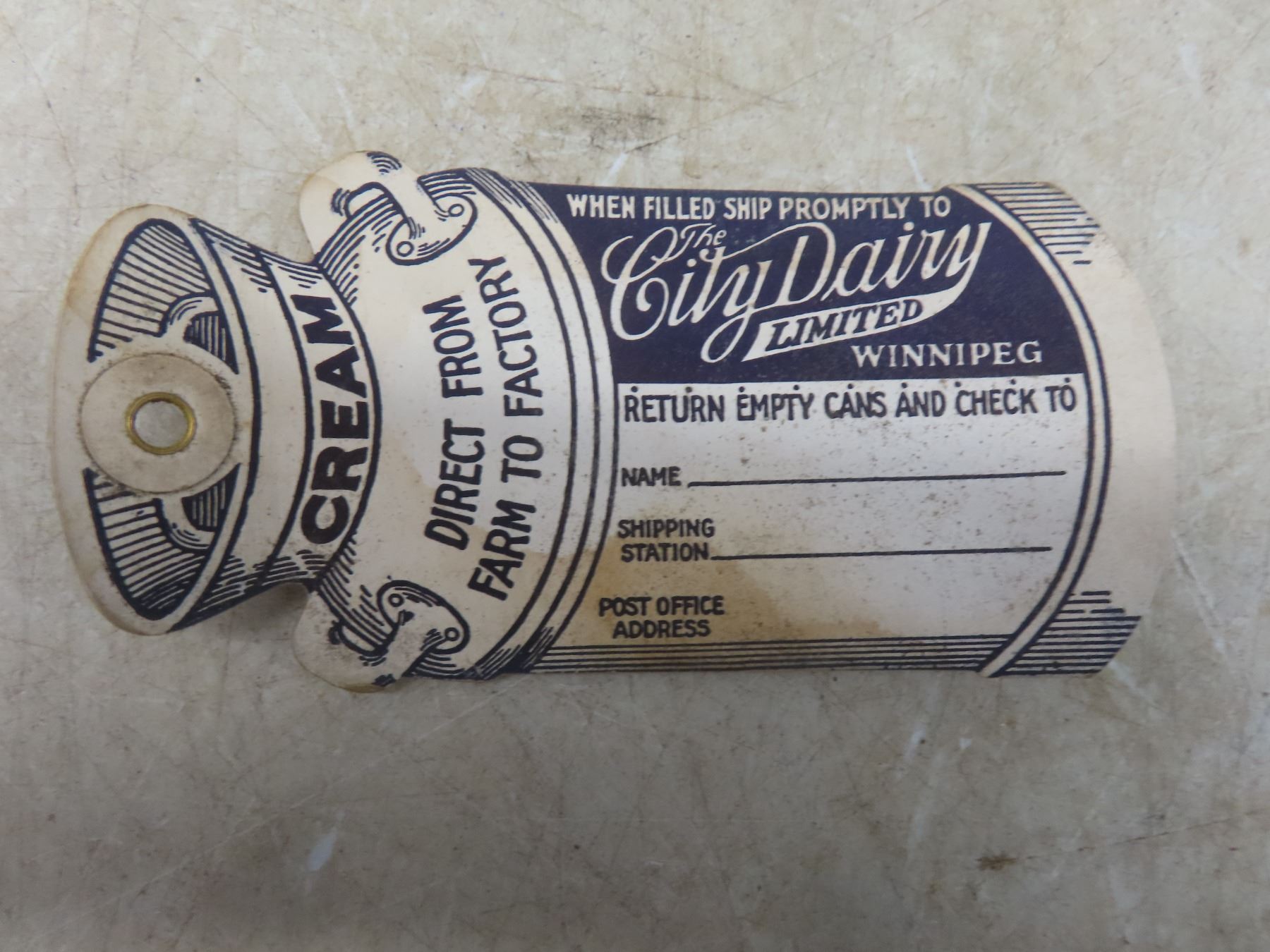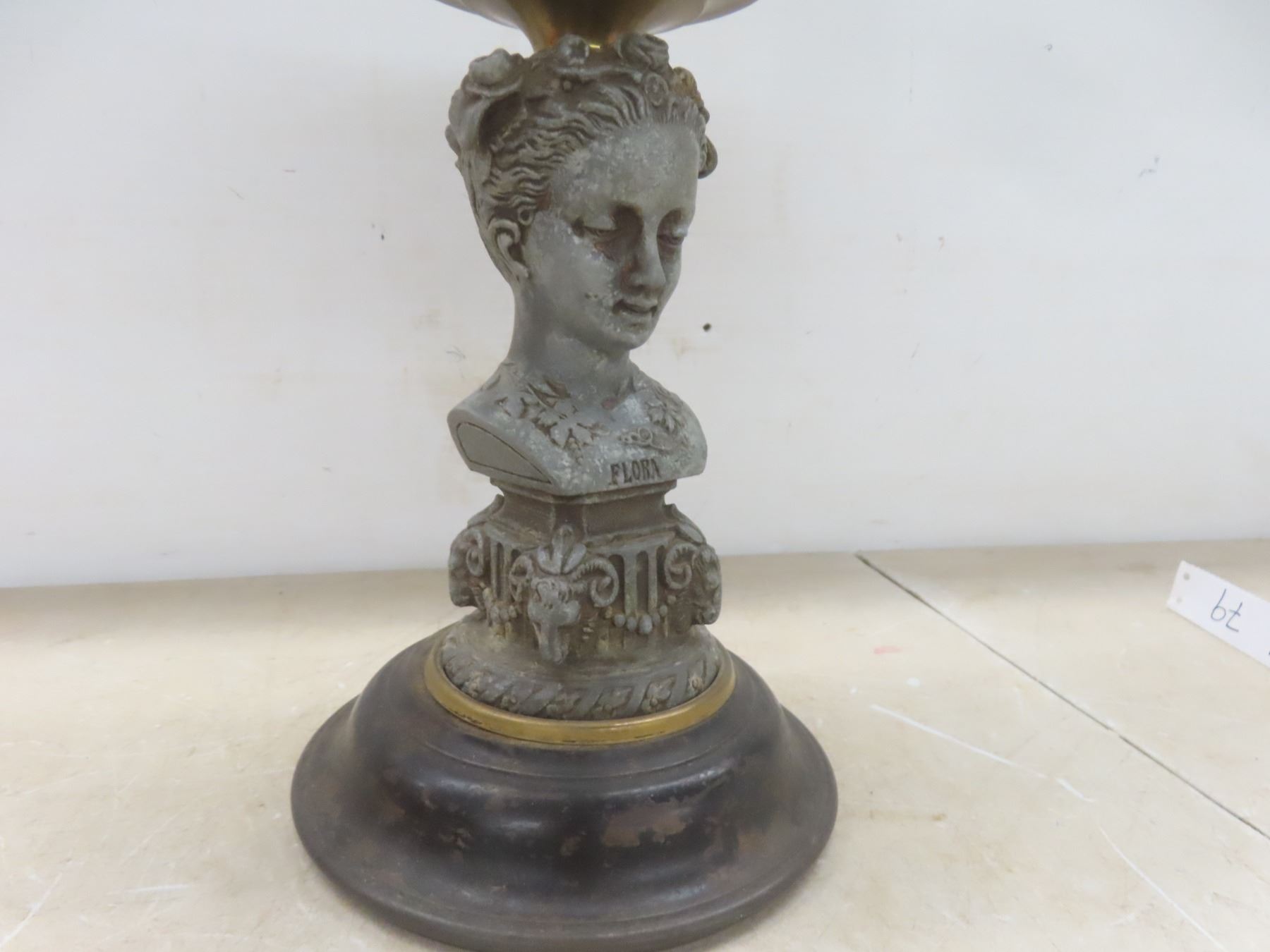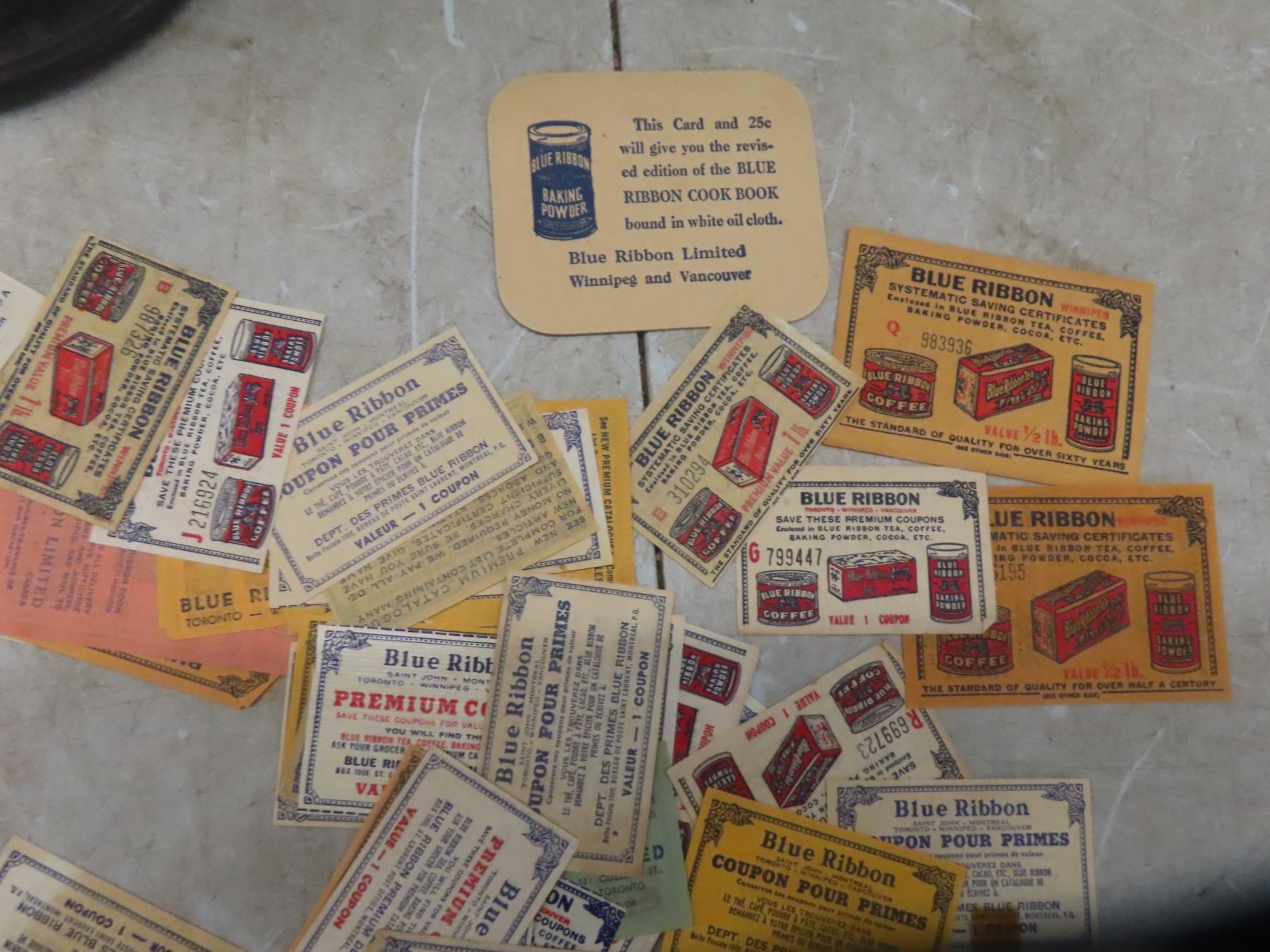 Vintage Blue ribbon Coupons, Milk Can Tags + Coal Oil Lamp Base, Metal Statue by Woman Flora McDonals 13" High - No Chimney