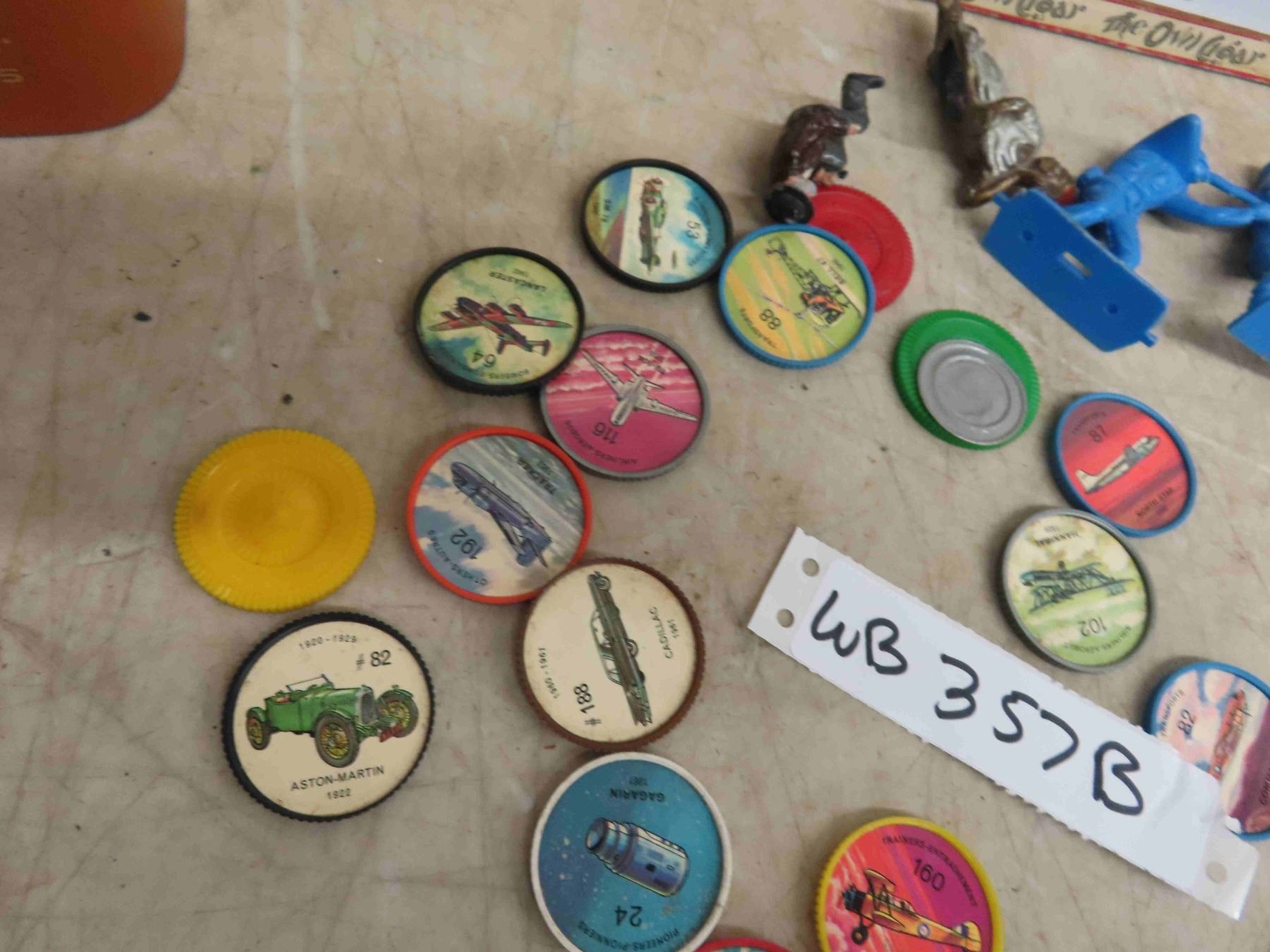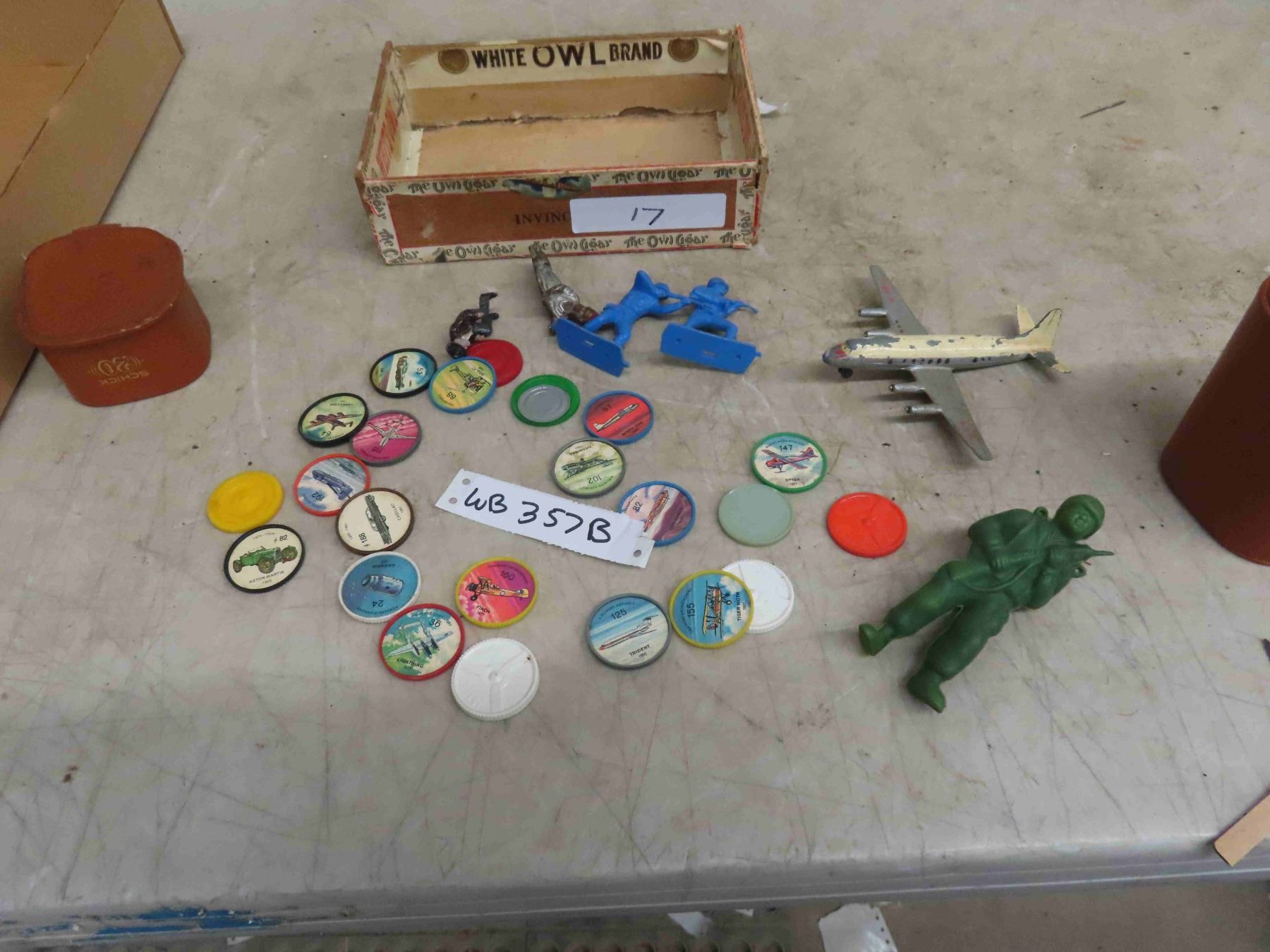Vintage Box of Arcade Toys & 24 Jello Token Coins