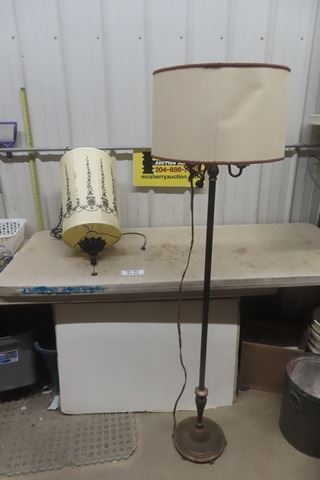 Vintage Brass Floor Lamp with Shade, Hanging Lamp with Shade