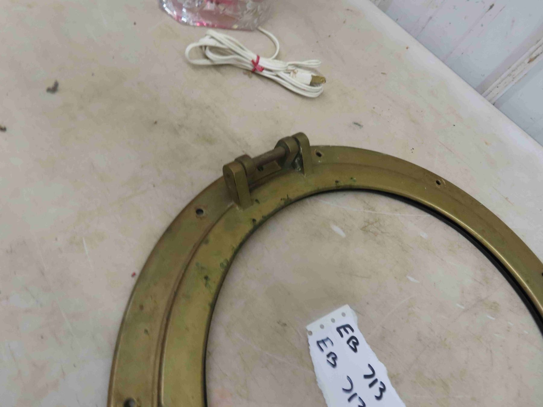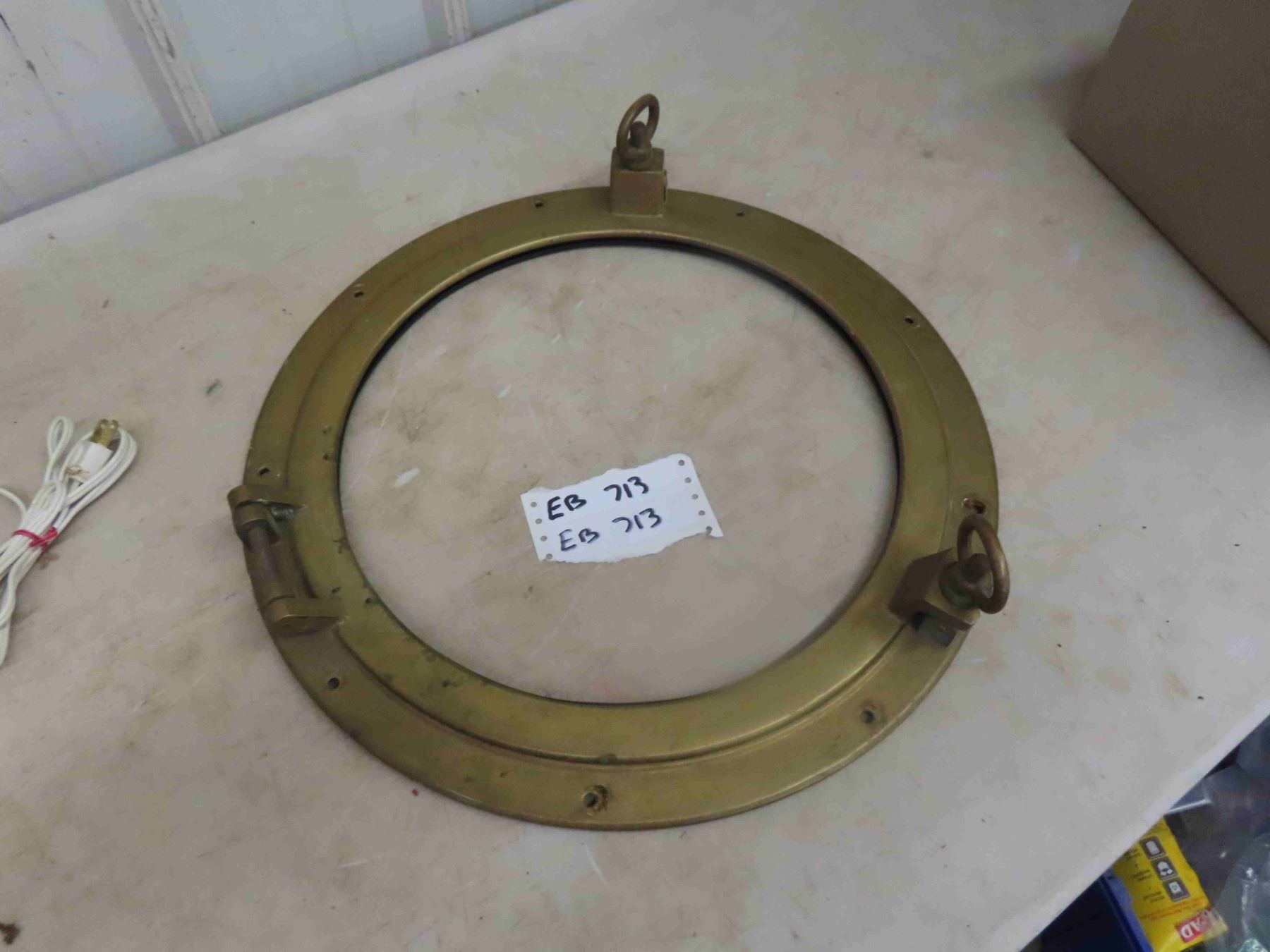 Vintage Brass Port Hole Frame - No Glass - Repurpose to Cottage Mirror! 18" Wide