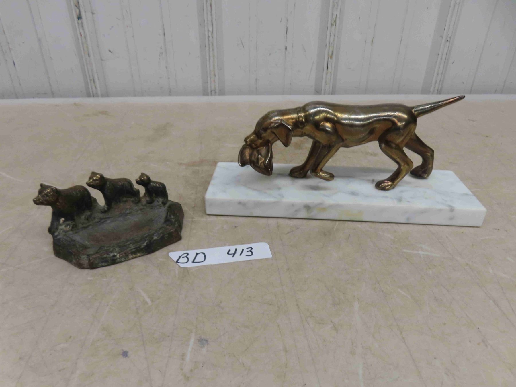 Vintage Brass Sculpture of Hunting Dog on Marble Base 11'' x 5'' , Spelter Sculpture of Bear Family