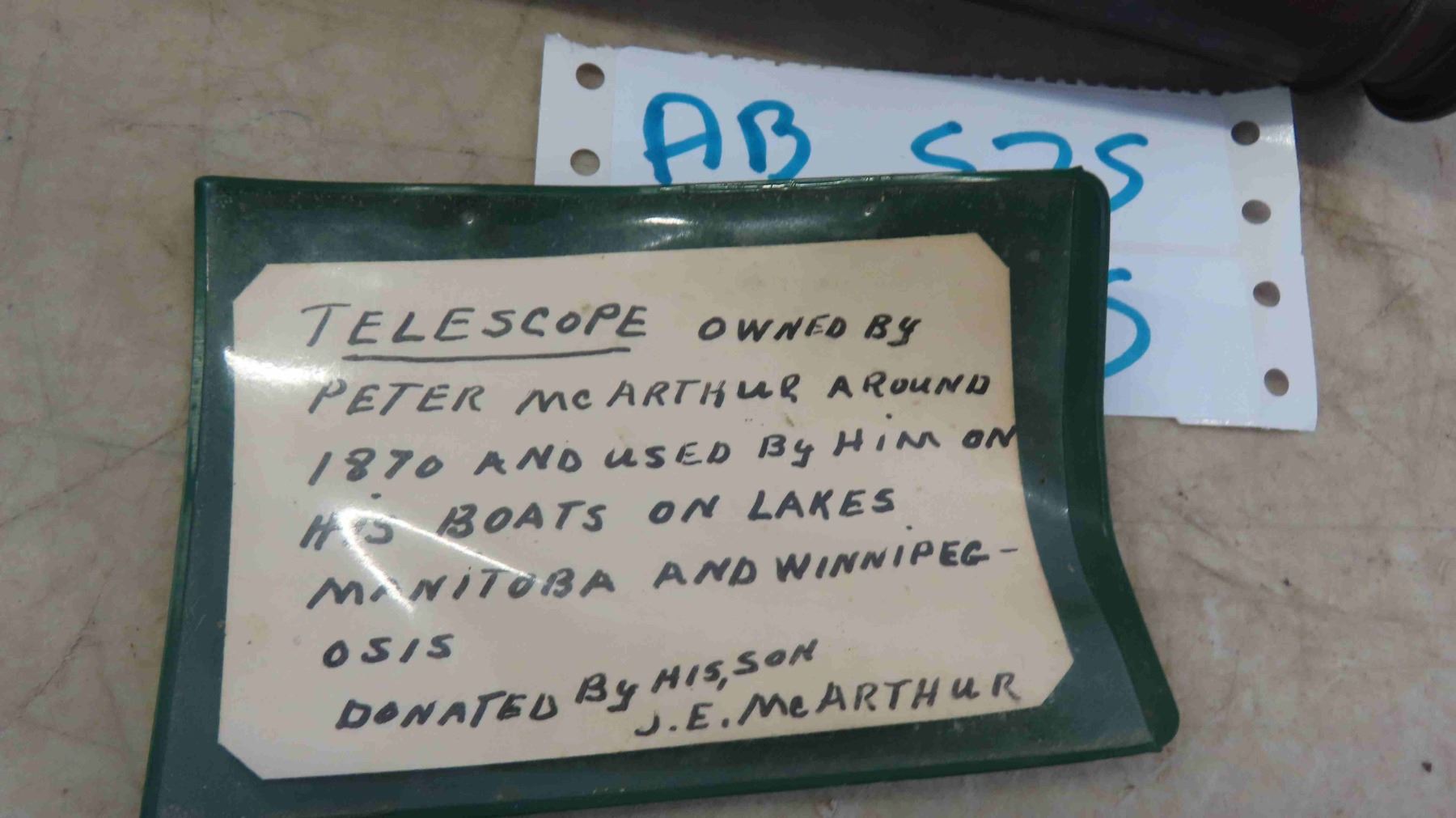Vintage Brass Telescope Owned by Peter McArthur Around 1870 and Used by Him on His Boats on Lakes Manitoba and Winnipegosis