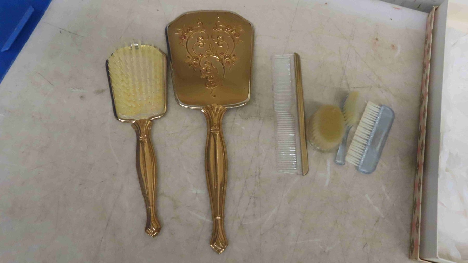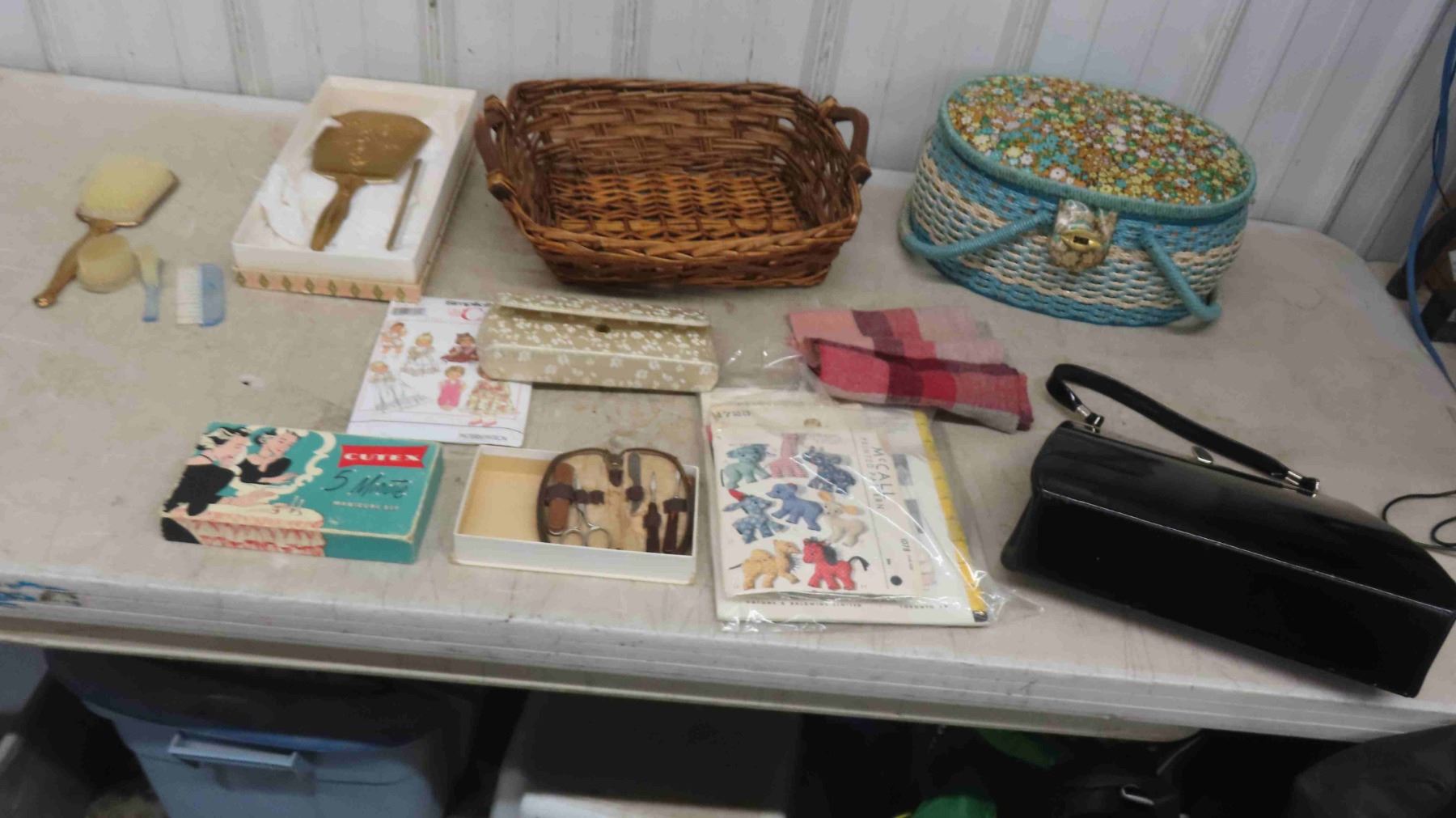 Vintage Brush, Mirror and Comb Set , 3 Piece Baby Set, Sewing Basket (Has Broken Hinge), Purses, Patterns, Manicure Set, Plus