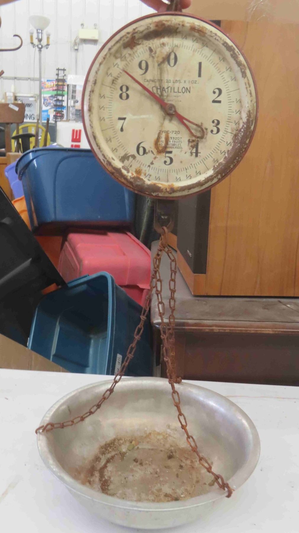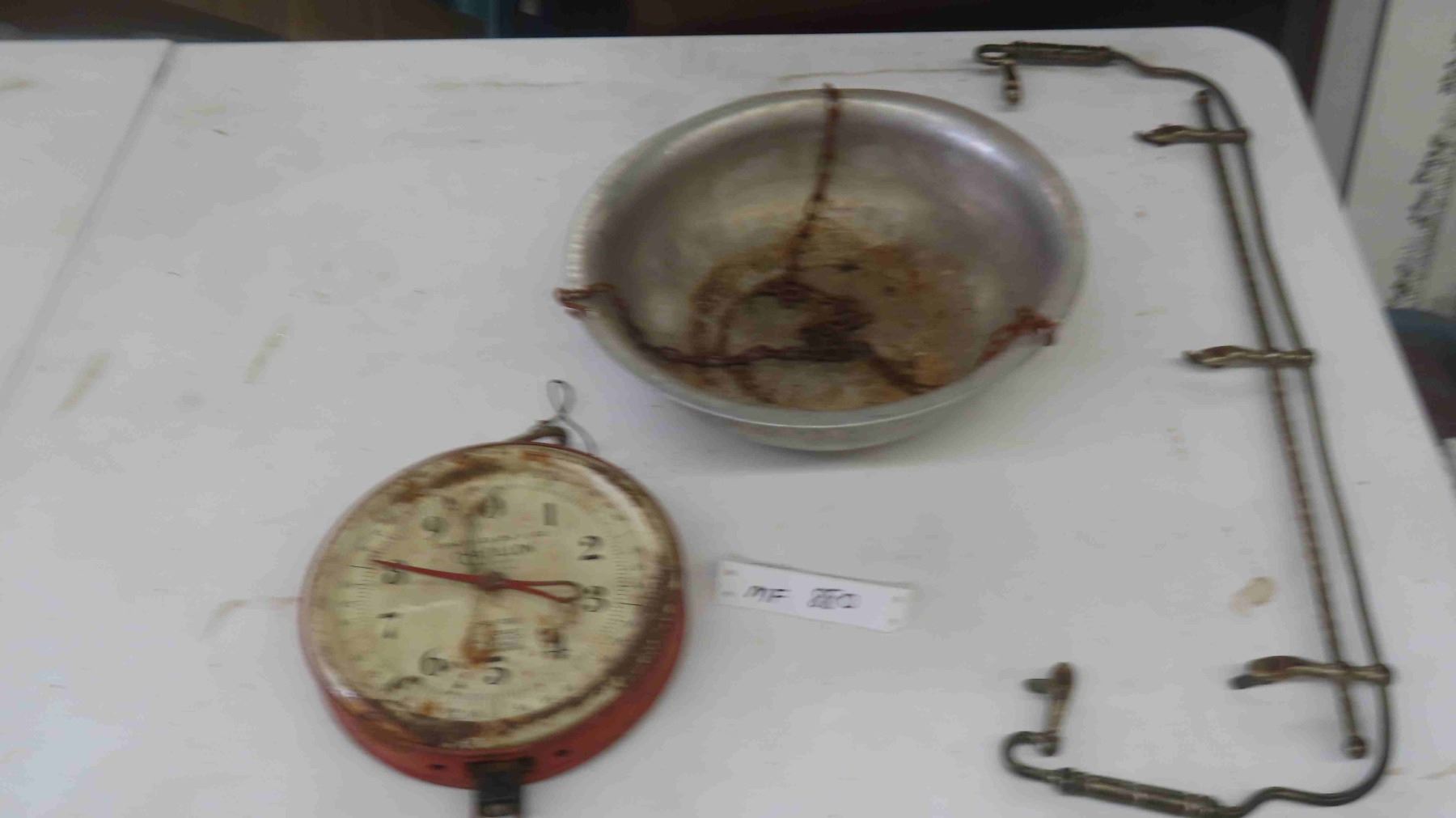 Vintage Buggy Rein Tie Off , Store Counter Hanging Scale with Galvanized Container