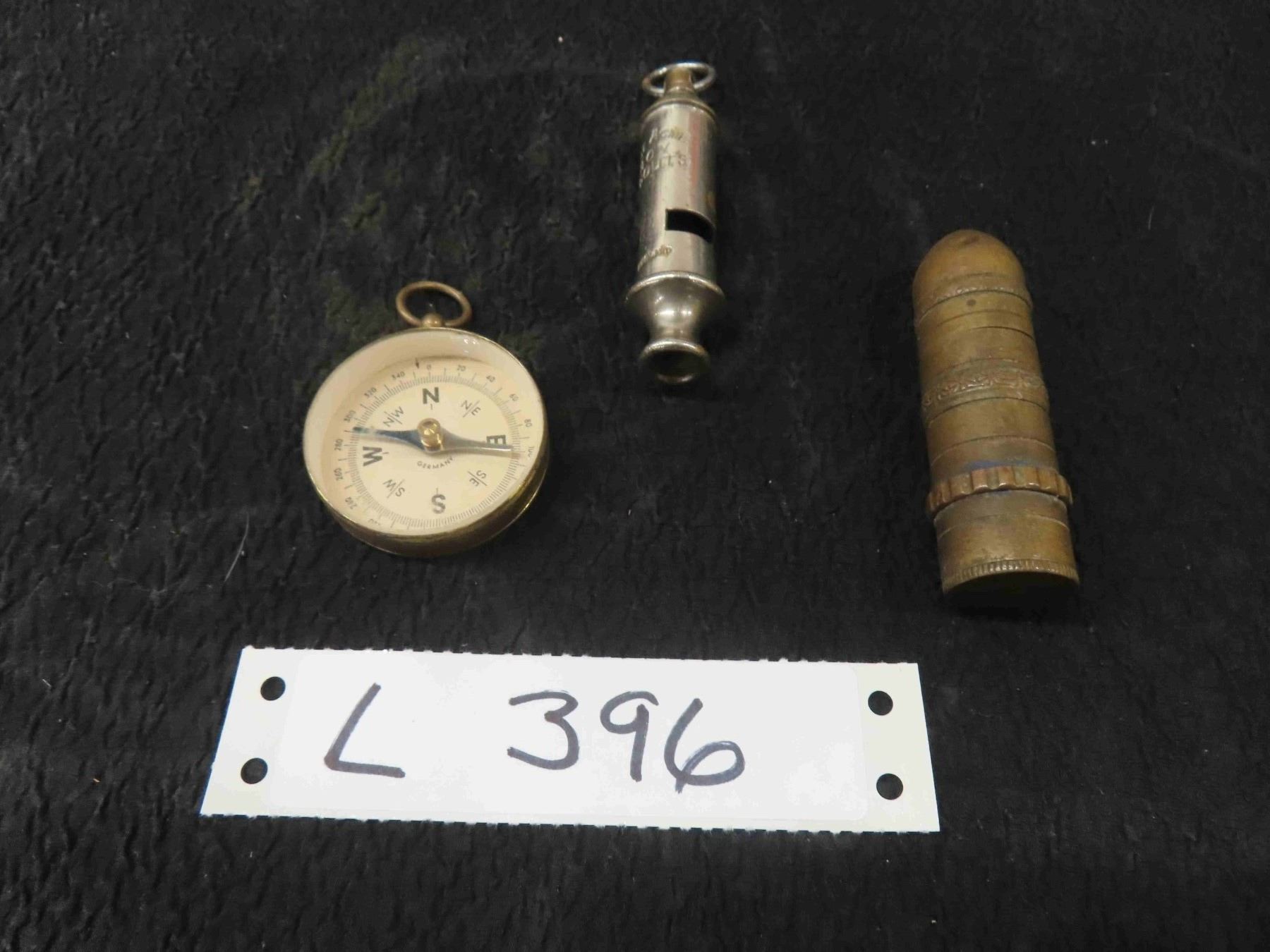 Vintage Bullet Lighter, Boy Scout Whistle, Compass