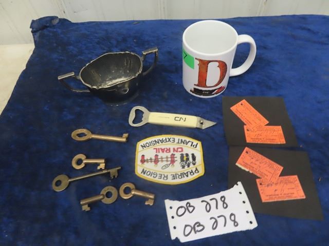 Vintage CNR Switch Keys & Caboose Keys, Ticket Stubs, Sugar Bowl & Mug