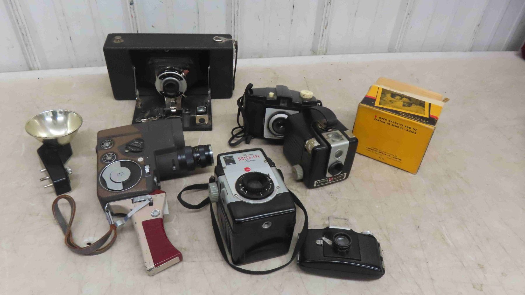 Vintage Cameras : Kodak, Brownie Hawk Eye, Cresta 2, Bulls Eye, Arco Eight Movie Camera Flash