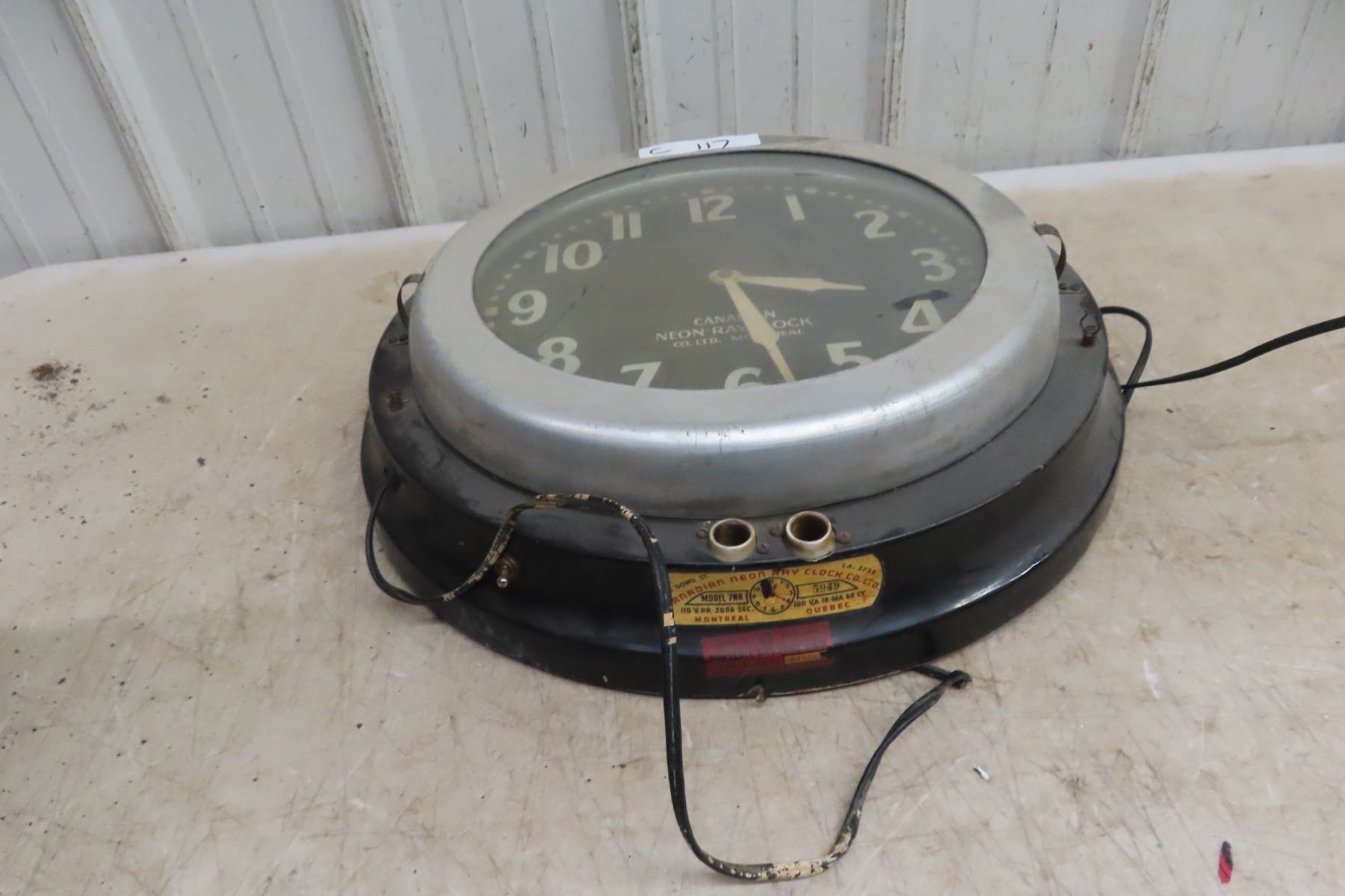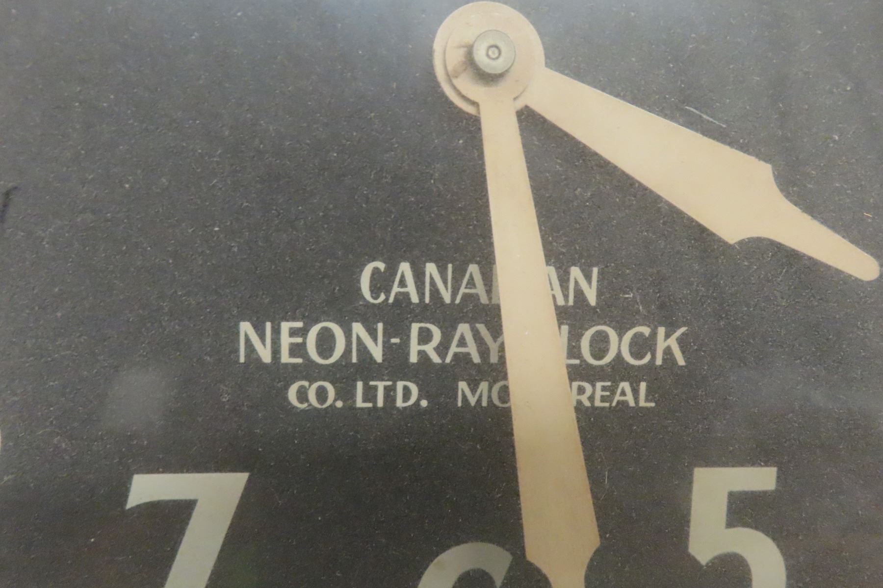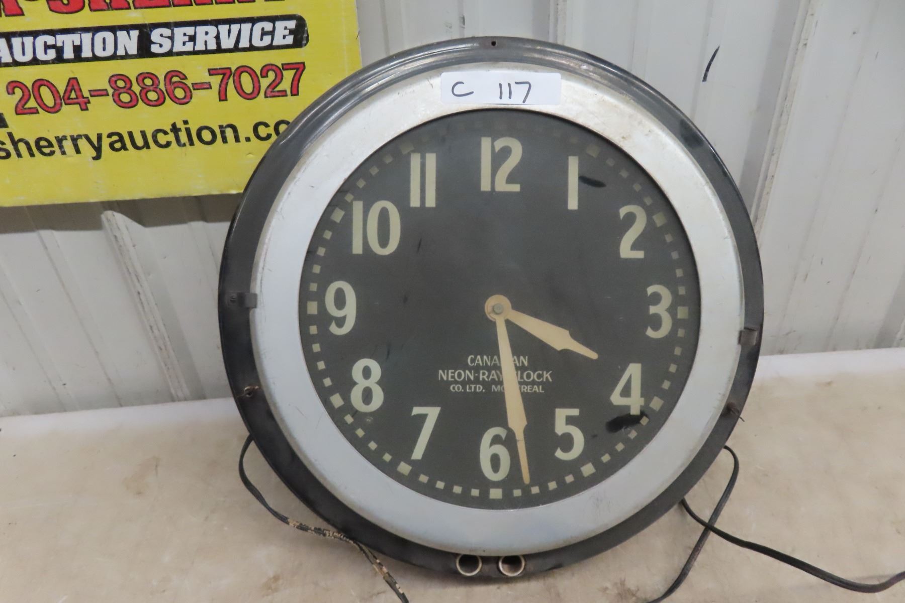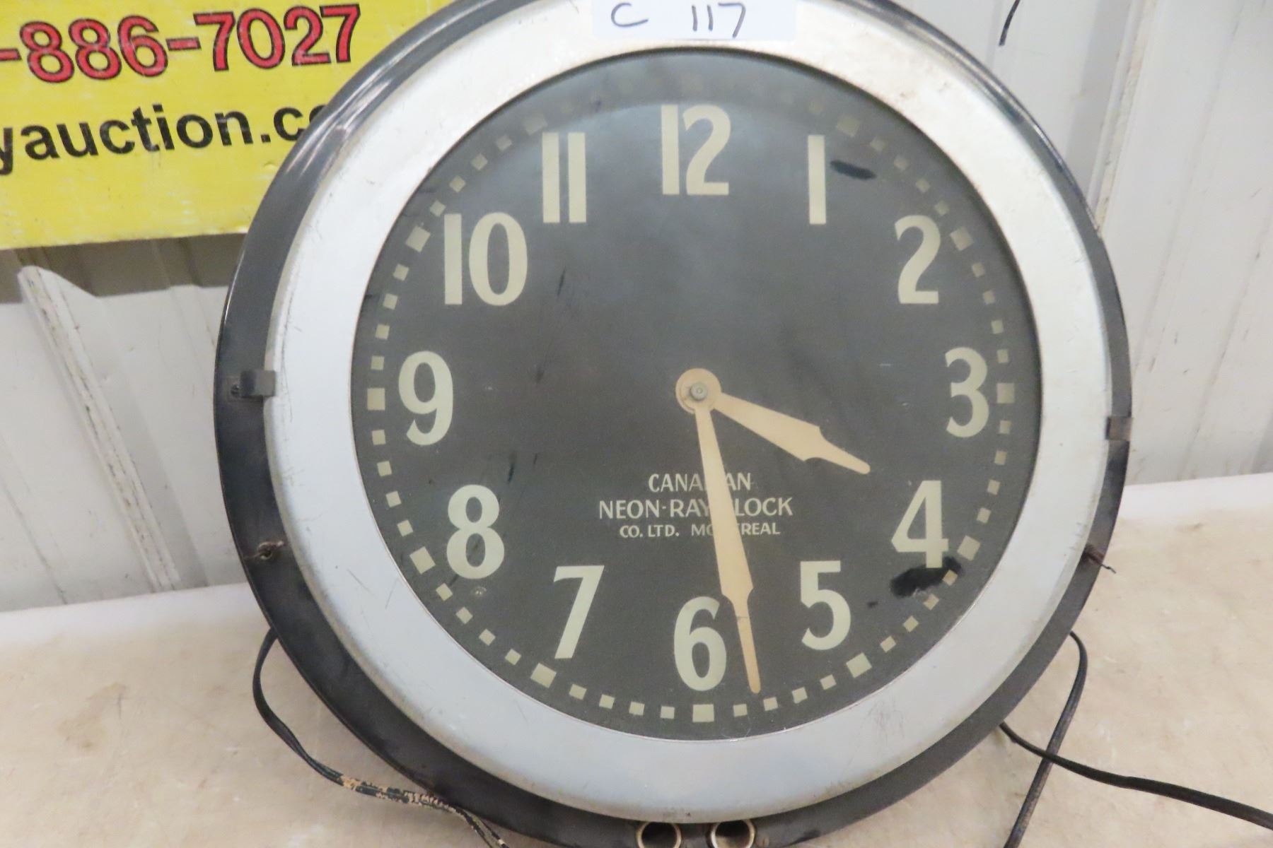 Vintage Canadian Neon Ray Clock Co. 18'' Diam. Working Condition But Some Should Be Brighter, Very Cool!