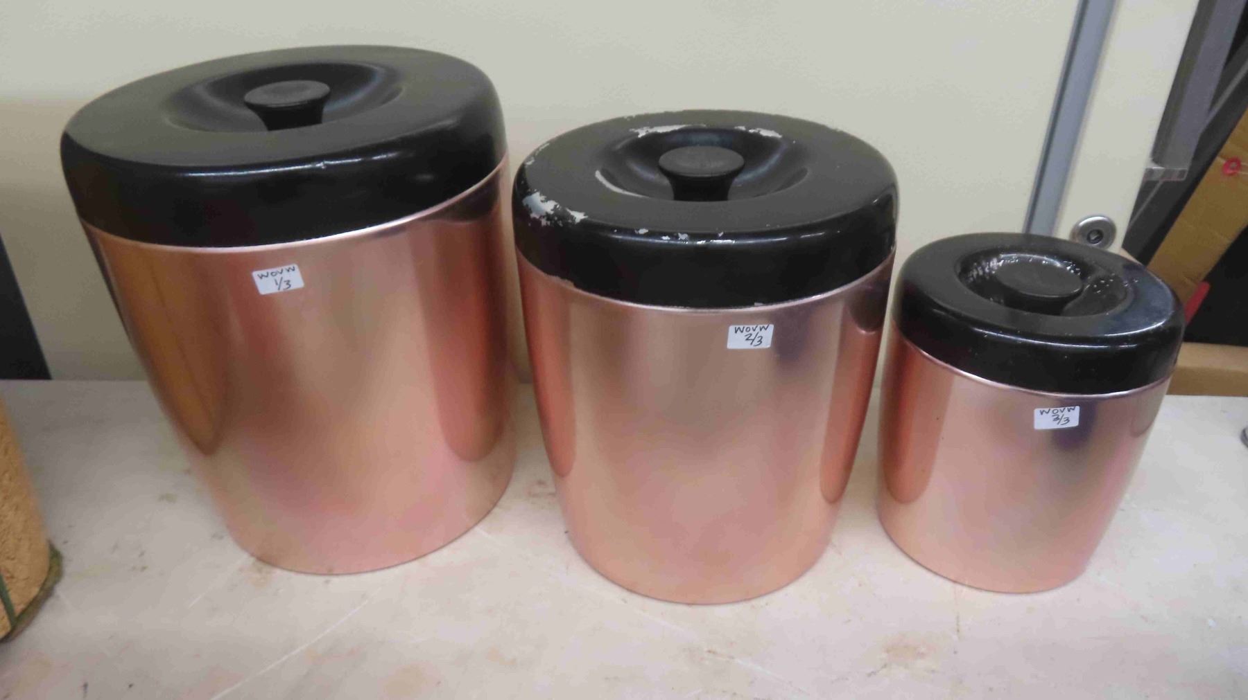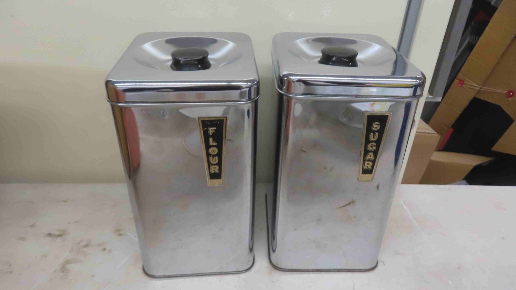 Vintage Canister Sets 2pce & 3pce , 2 Crystal Covered Candy Dishes, Footed Cake Plate , Vase , Metal Coffee Pot