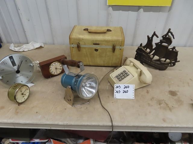 Vintage Carry On"Samsonite", Clocks, Lantern, Door Stop & Phone