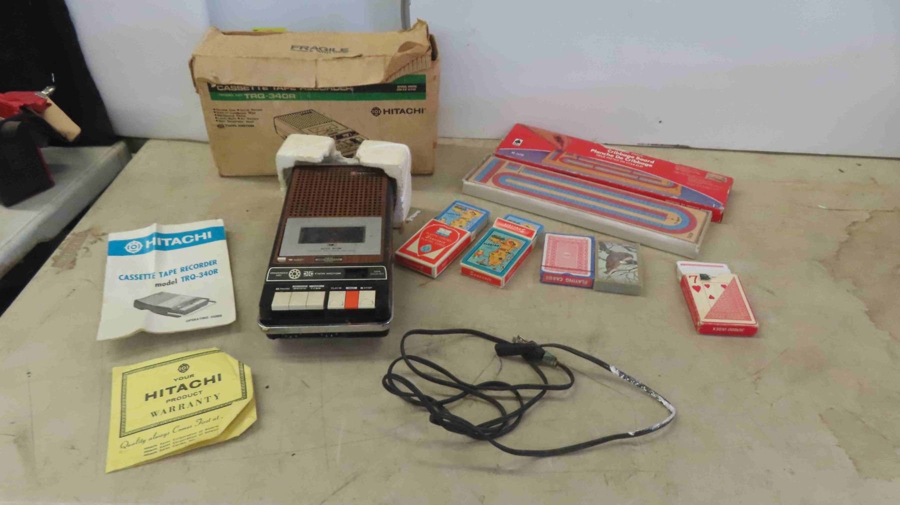 Vintage Cassette Player with Guide and Box , New Crib Board, 4 Decks of Cards