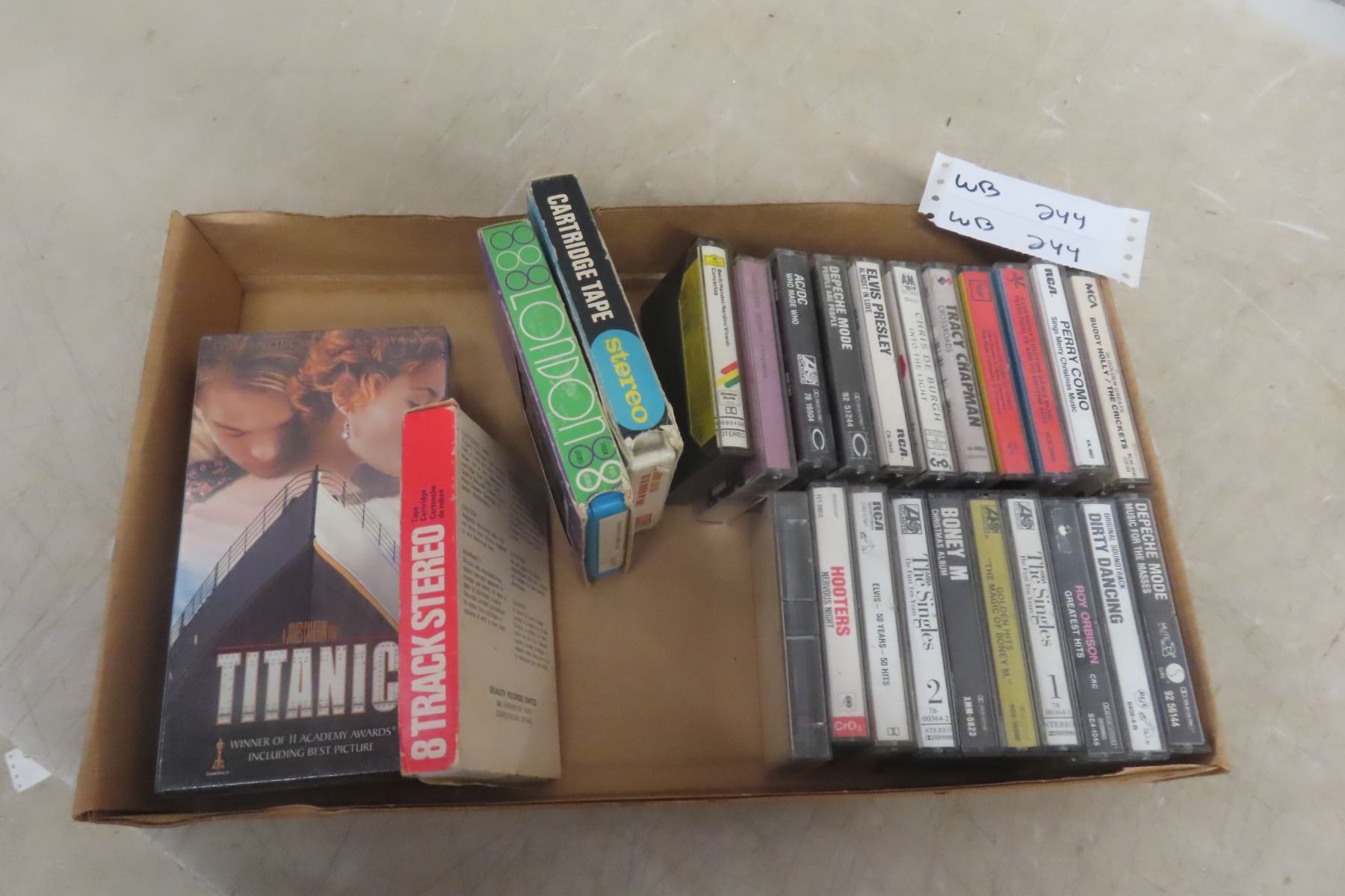 Vintage Cassette Tape Lot with Sealed Titanic VHS and Artists Including AC/DC, Hooters, Elvis, Roy